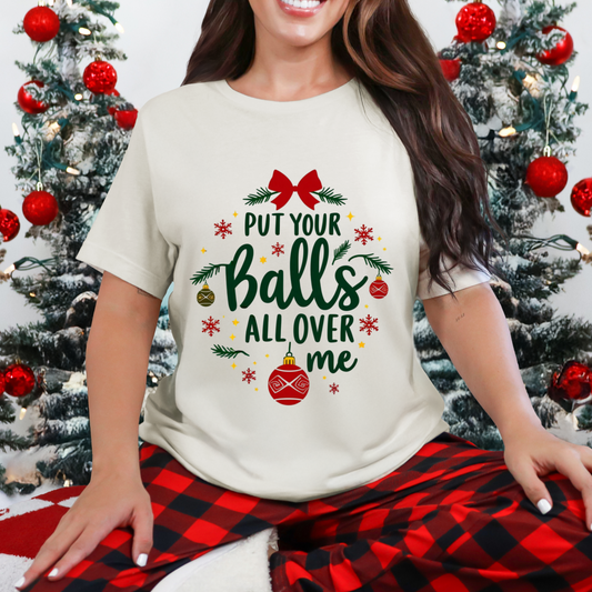 Funny "Put Your Balls All Over Me" Christmas Tee