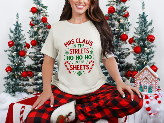 Festive "Mrs Claus in the Streets, Ho Ho Ho In the Sheets" Funny Tee