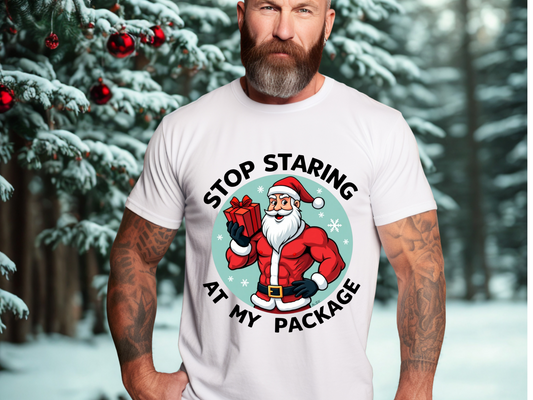 Sarcastic "Stop Staring At My Package" Christmas Tee