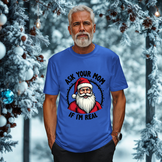 Sarcastic "Ask Your Mom If I'm Real" Santa Tee