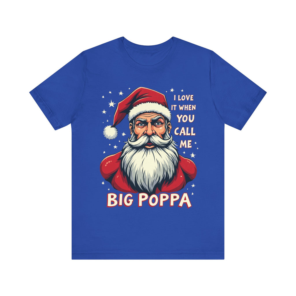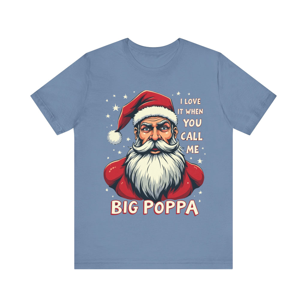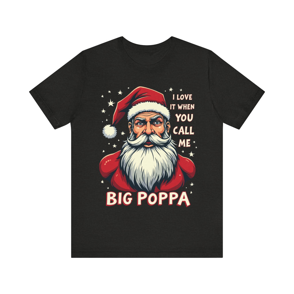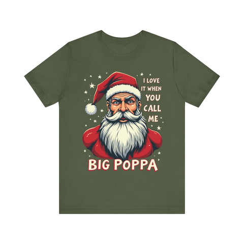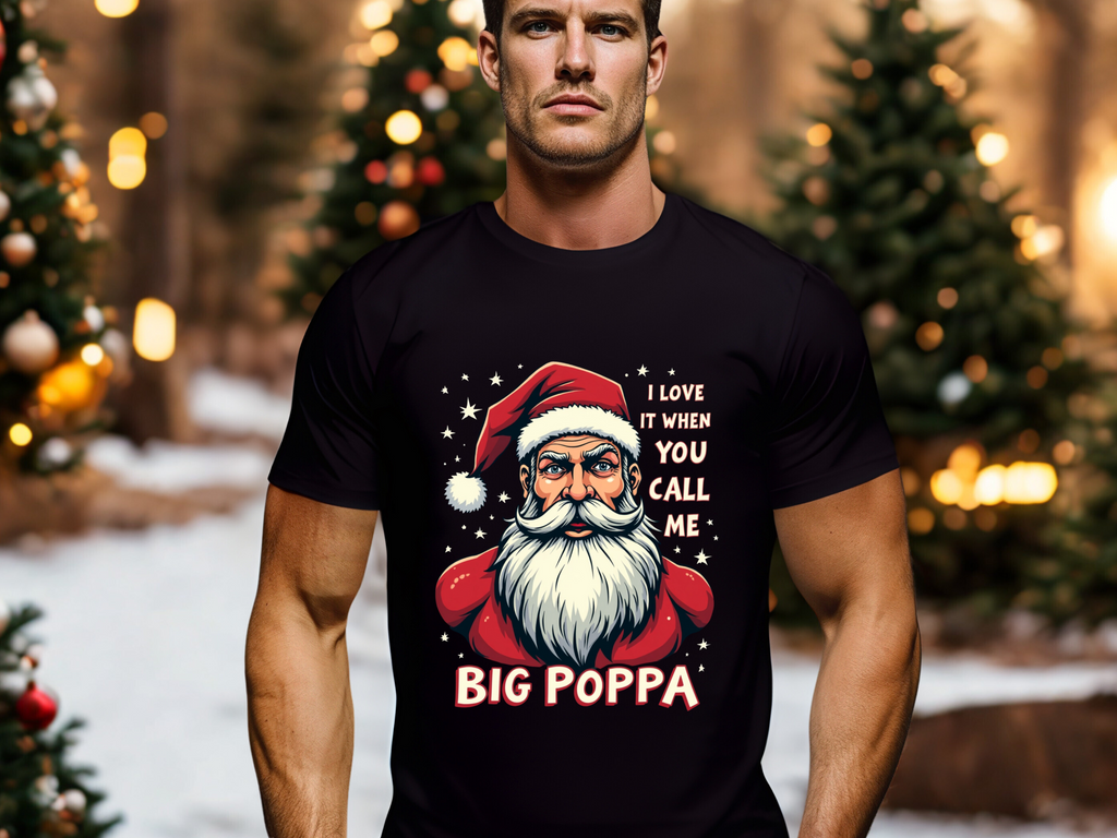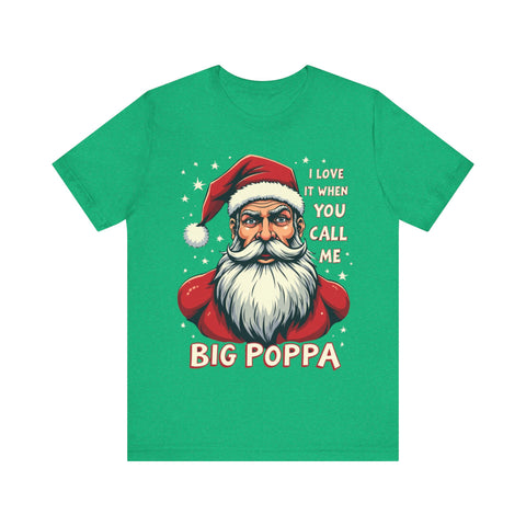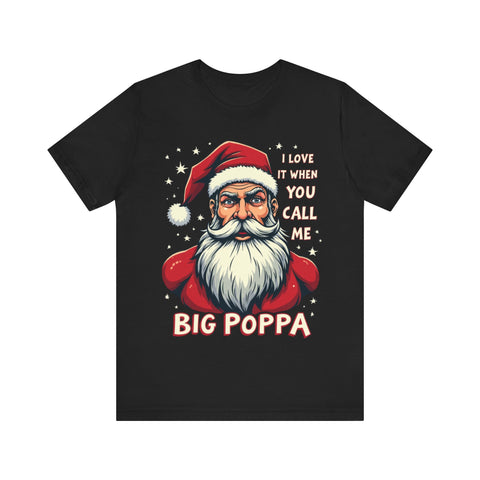 Oh, darling, this "I Love It When You Call Me Big Poppa" Christmas T-Shirt is serving sizzling holiday heat with a side of sassy swagger! Featuring a sexy Santa who’s turning the North Pole into a naughty pole, this tee is your must-have for strutting through festive parties with a flirty wink. Crafted from buttery-soft airlume cotton that hugs your dad bod (ahem, I mean Abs) just right, it’s perfect for sipping spiked cider, stealing the spotlight, or leaving everyone hot under the tinsel. Get ready to sleigh the season with some serious Big Poppa energy! The perfect gift for your favorite festive heartbreaker. Snag this tee and let Santa know you’re calling him Big Poppa this festive season, while stealing the holiday show!