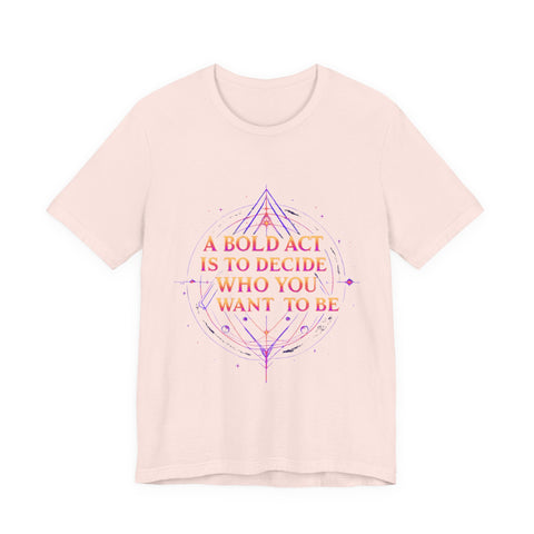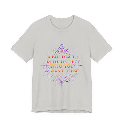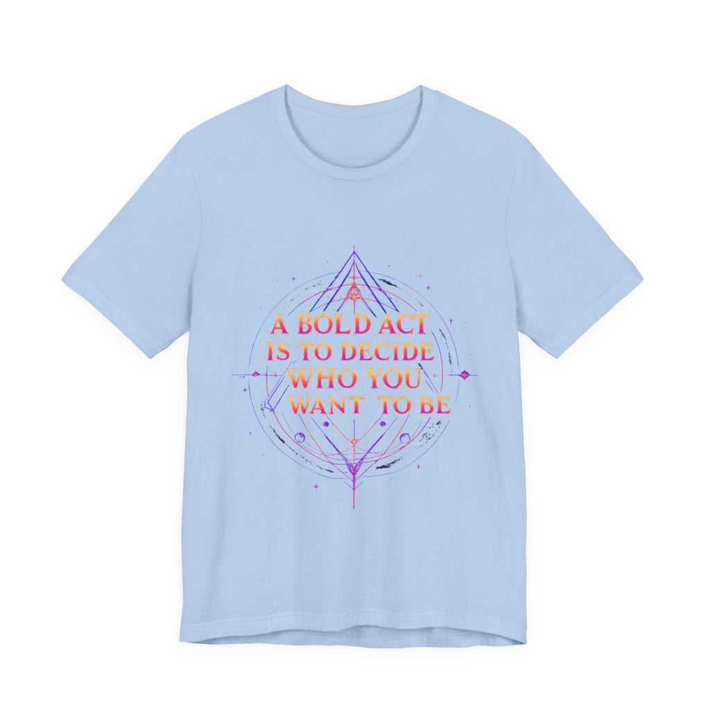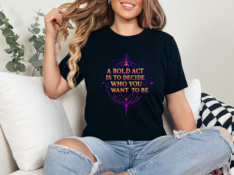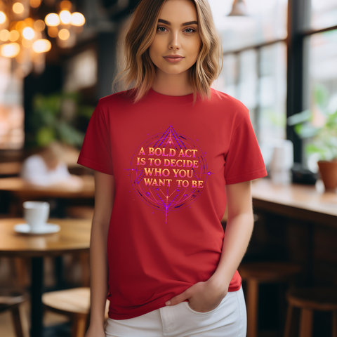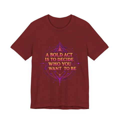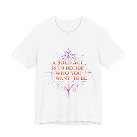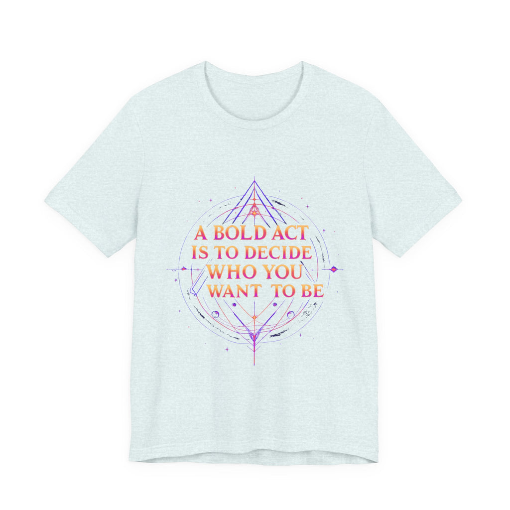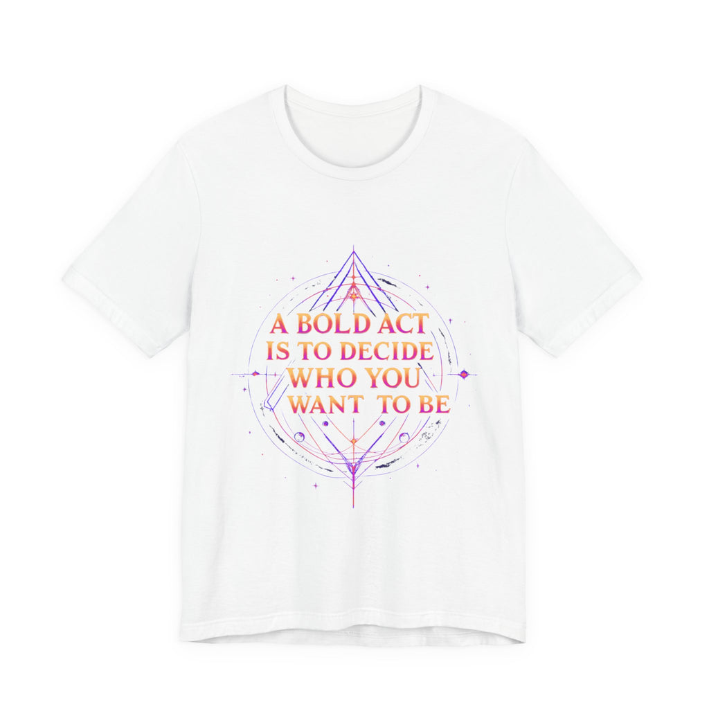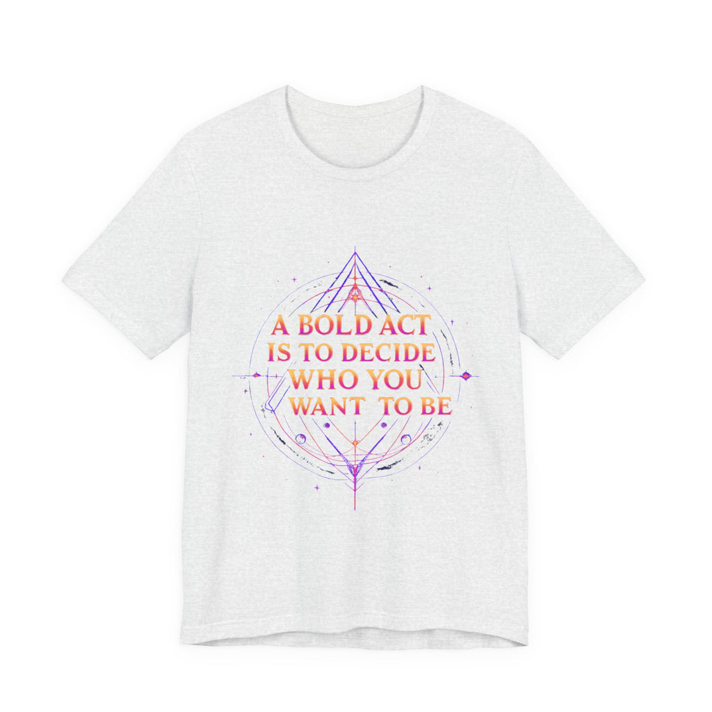 Unleash your inner dreamer with our "A Bold Act Is to Decide Who You Want to Be" T-Shirt! This magical tee is your canvas for self-discovery, woven with whimsical fantasy elements. Its ultra-soft, airy fabric feels like a gentle breeze from a faraway realm, perfect for embracing your unique sparkle. Whether you’re chasing adventures, sipping tea under the stars, or boldly becoming your truest self, this tee’s uplifting message and ethereal design will inspire you to shine. Crafted with a touch of magic, it’s the must-have for anyone ready to write their own epic story! ✨ Start crafting the you you’ve always dreamed of! 🌿