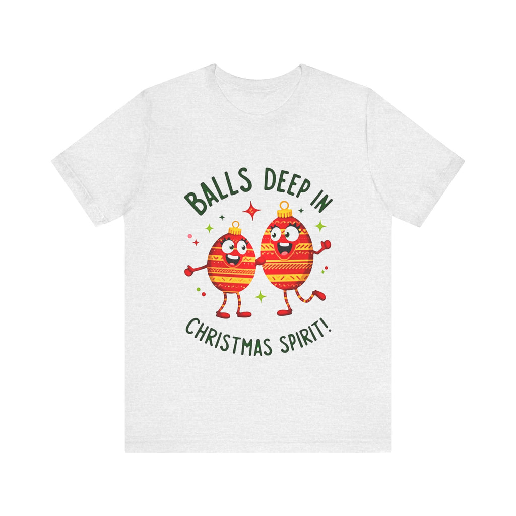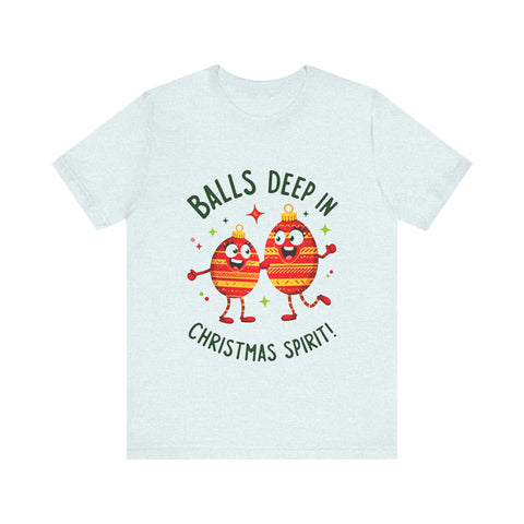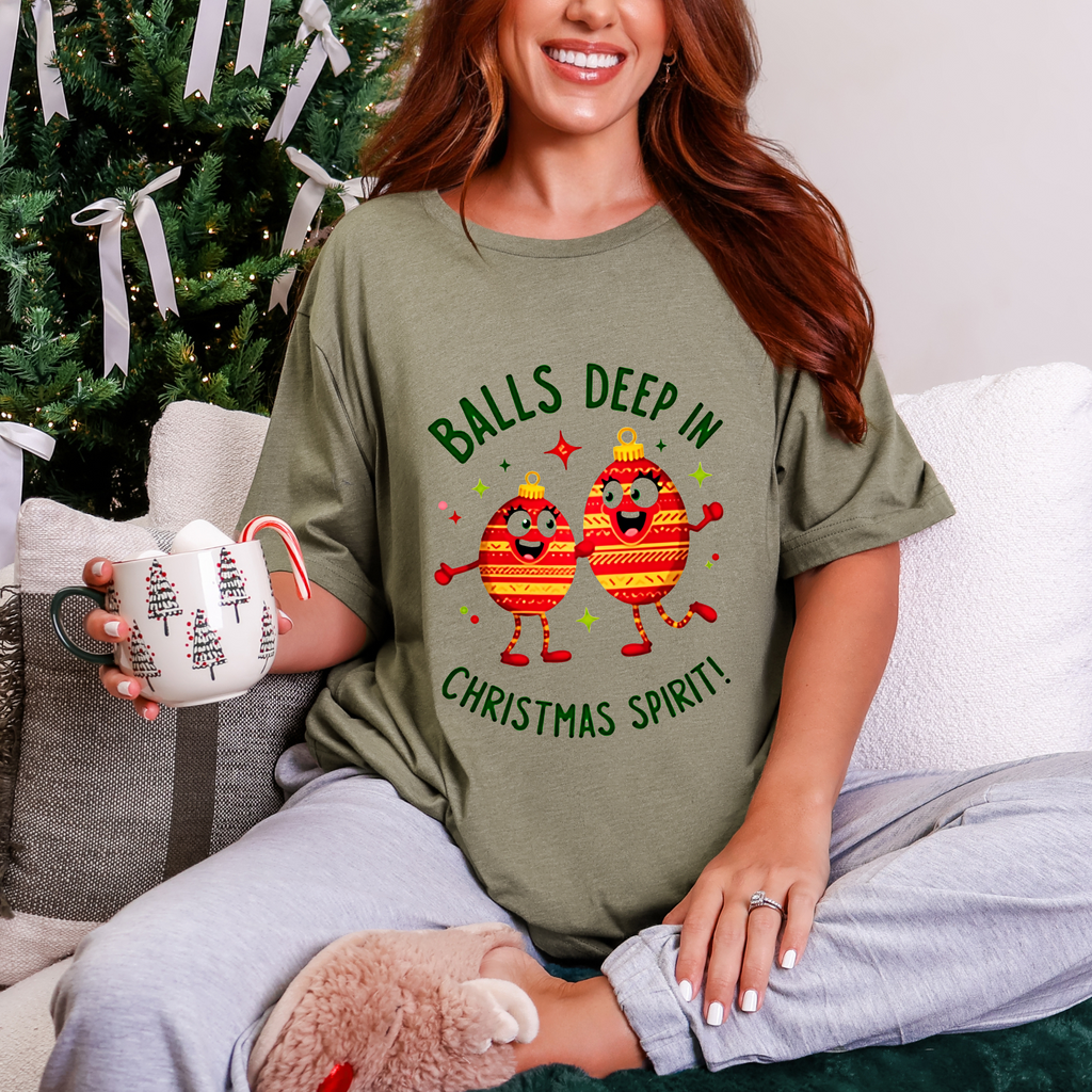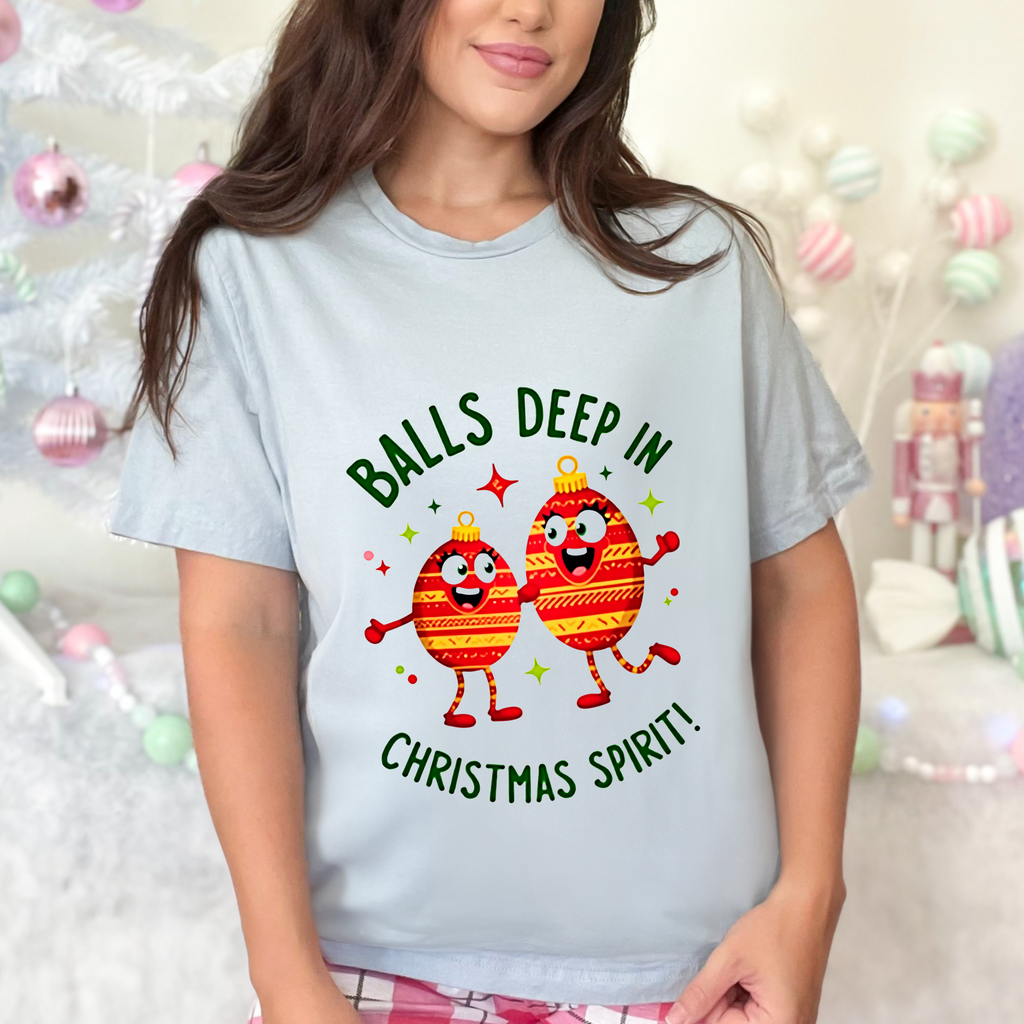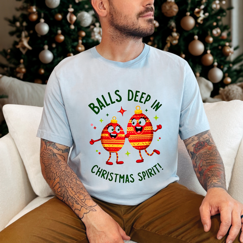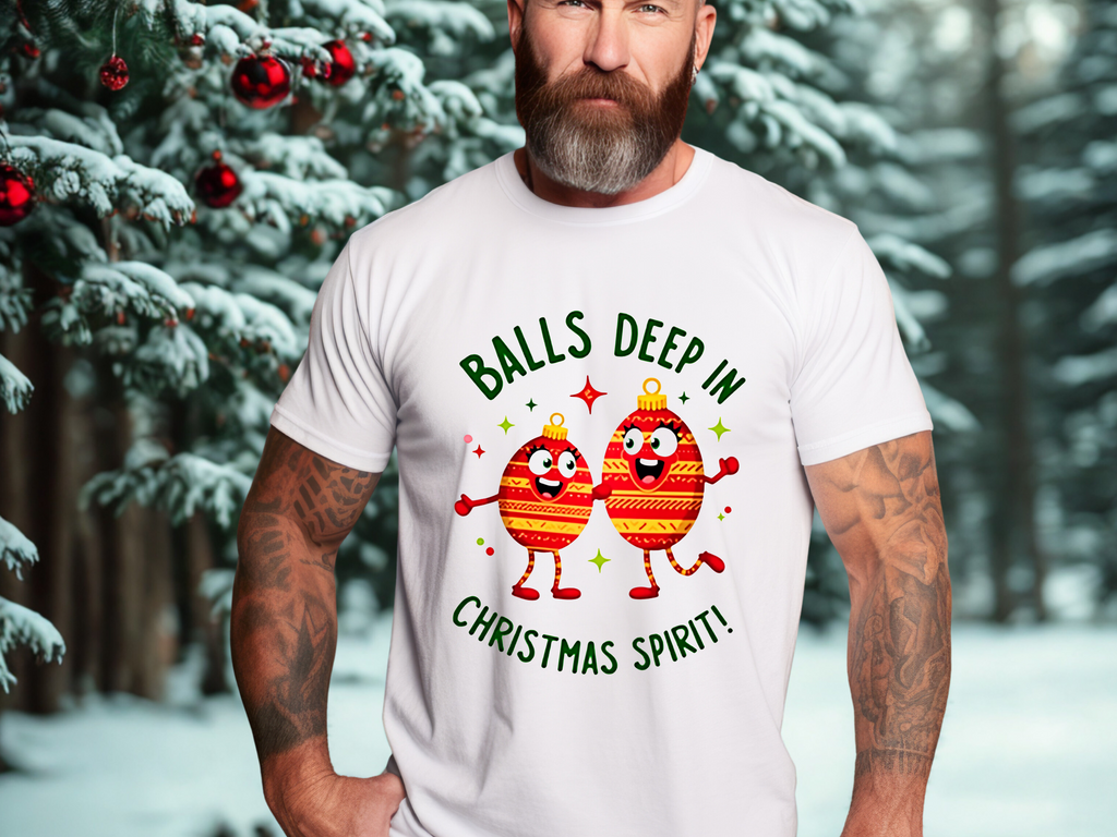 Deck the halls and your wardrobe with this hilariously cheeky Christmas tee! Featuring two hilarious ornaments with mischievous grins, declaring “Balls Deep In Christmas Spirit,” this shirt is the ultimate holiday vibe for anyone who loves a good laugh with their eggnog. Crafted from super-soft airlume cotton that’s comfier than a pile of presents, this unisex t-shirt is your go-to for holiday parties, tacky sweater contests, or just spreading some spicy seasonal cheer. Available in sizes S-3XL, so every merry prankster can join the fun. Snag yours before it’s gone faster than cookies on Christmas Eve! Click “Add to Cart” faster than you can untangle Christmas lights and let these sassy ornaments light up your holiday style! 🎅✨