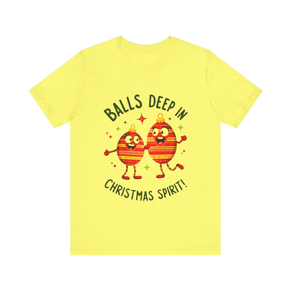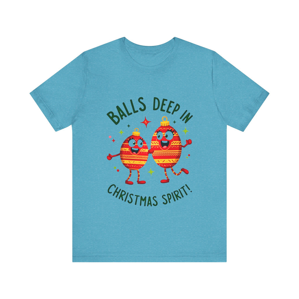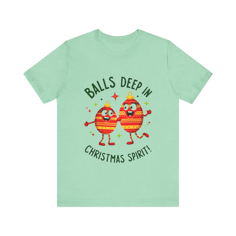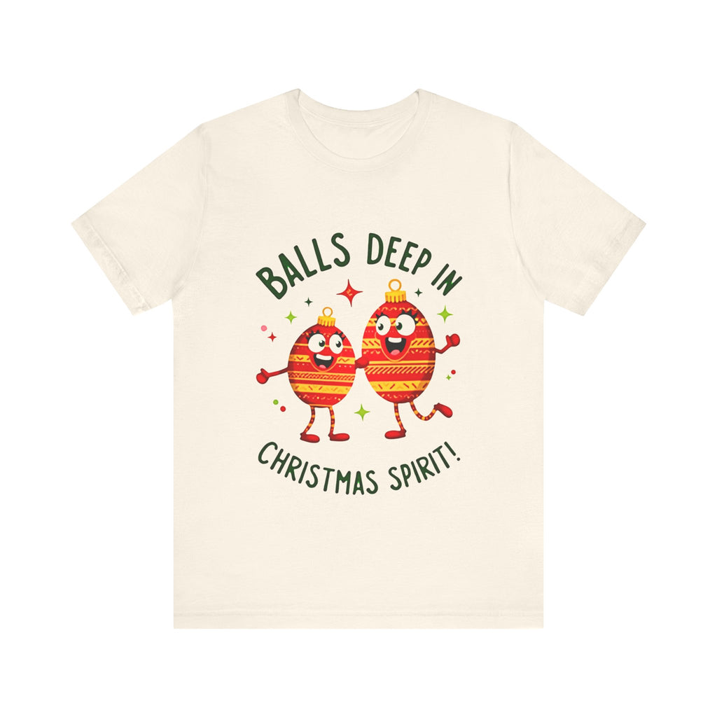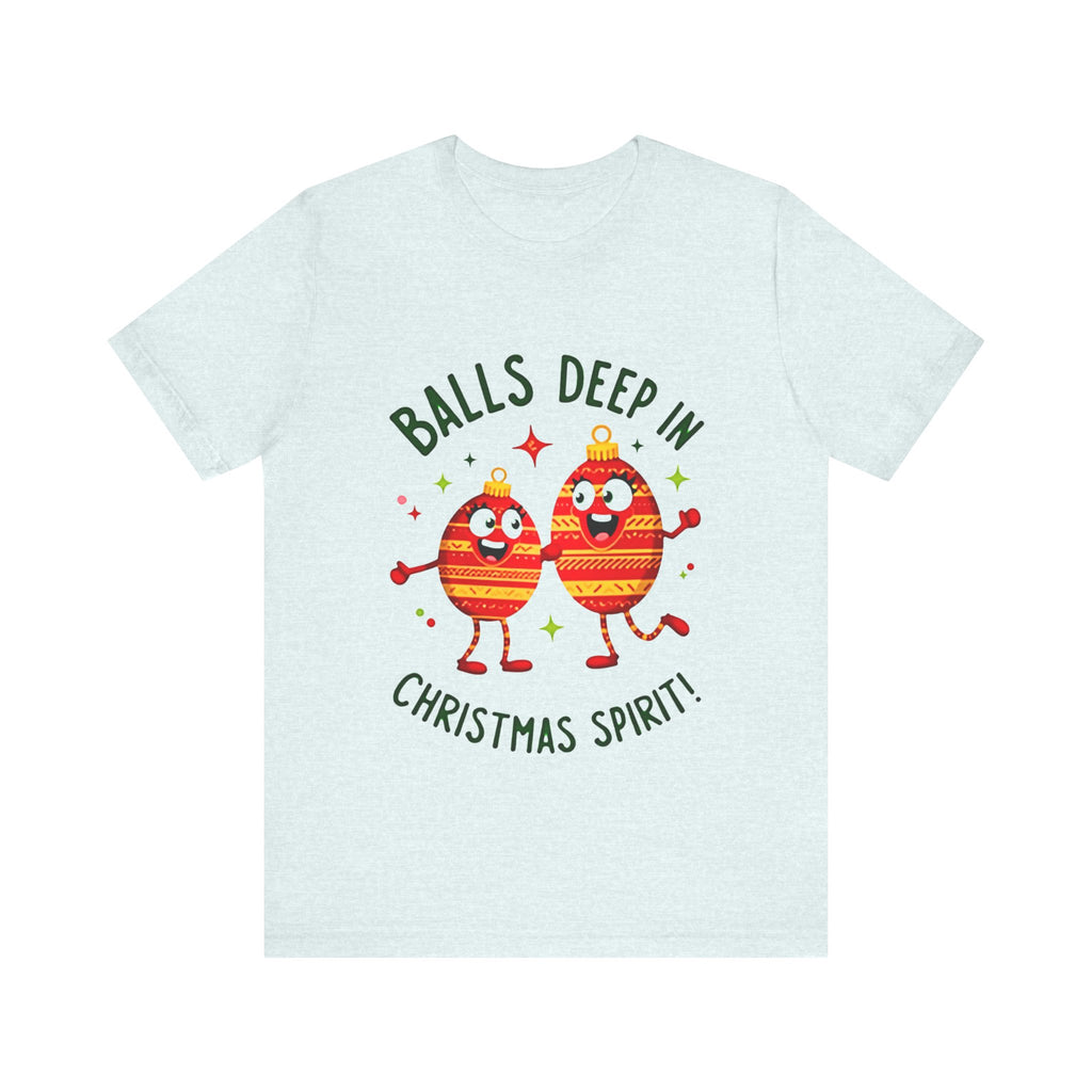 Deck the halls and your wardrobe with this hilariously cheeky Christmas tee! Featuring two hilarious ornaments with mischievous grins, declaring “Balls Deep In Christmas Spirit,” this shirt is the ultimate holiday vibe for anyone who loves a good laugh with their eggnog. Crafted from super-soft airlume cotton that’s comfier than a pile of presents, this unisex t-shirt is your go-to for holiday parties, tacky sweater contests, or just spreading some spicy seasonal cheer. Available in sizes S-3XL, so every merry prankster can join the fun. Snag yours before it’s gone faster than cookies on Christmas Eve! Click “Add to Cart” faster than you can untangle Christmas lights and let these sassy ornaments light up your holiday style! 🎅✨