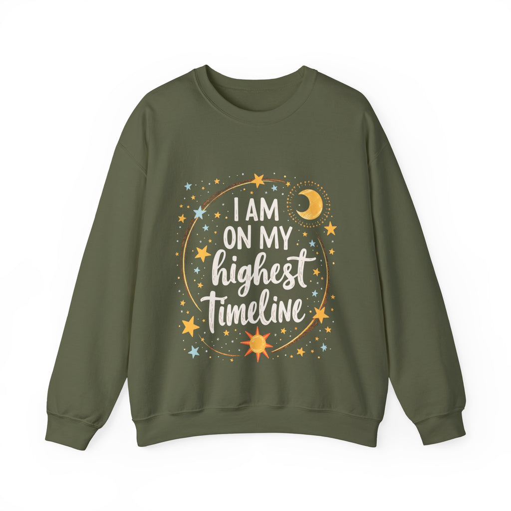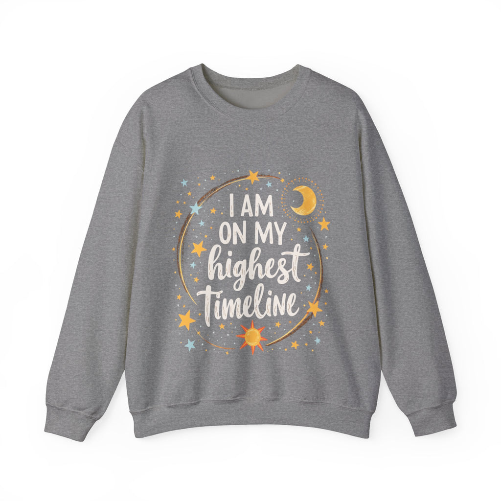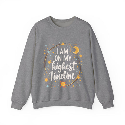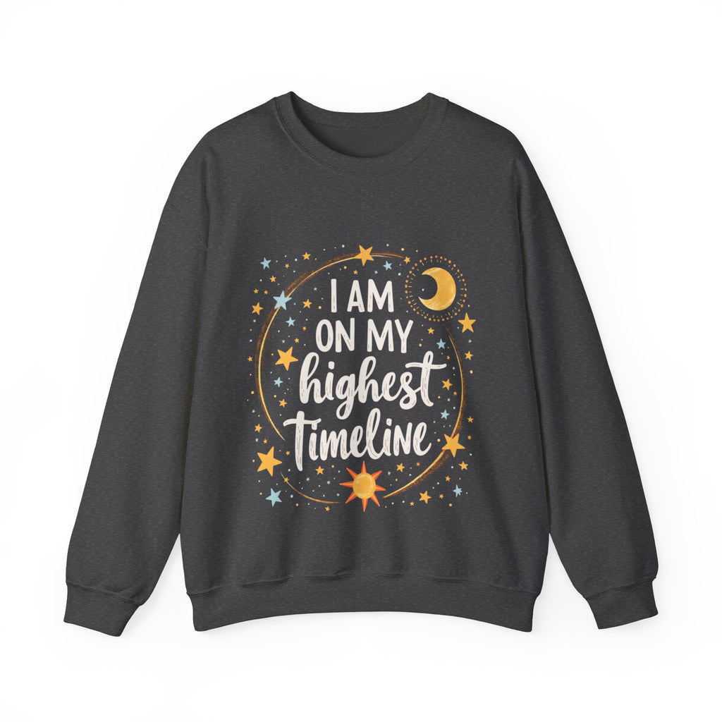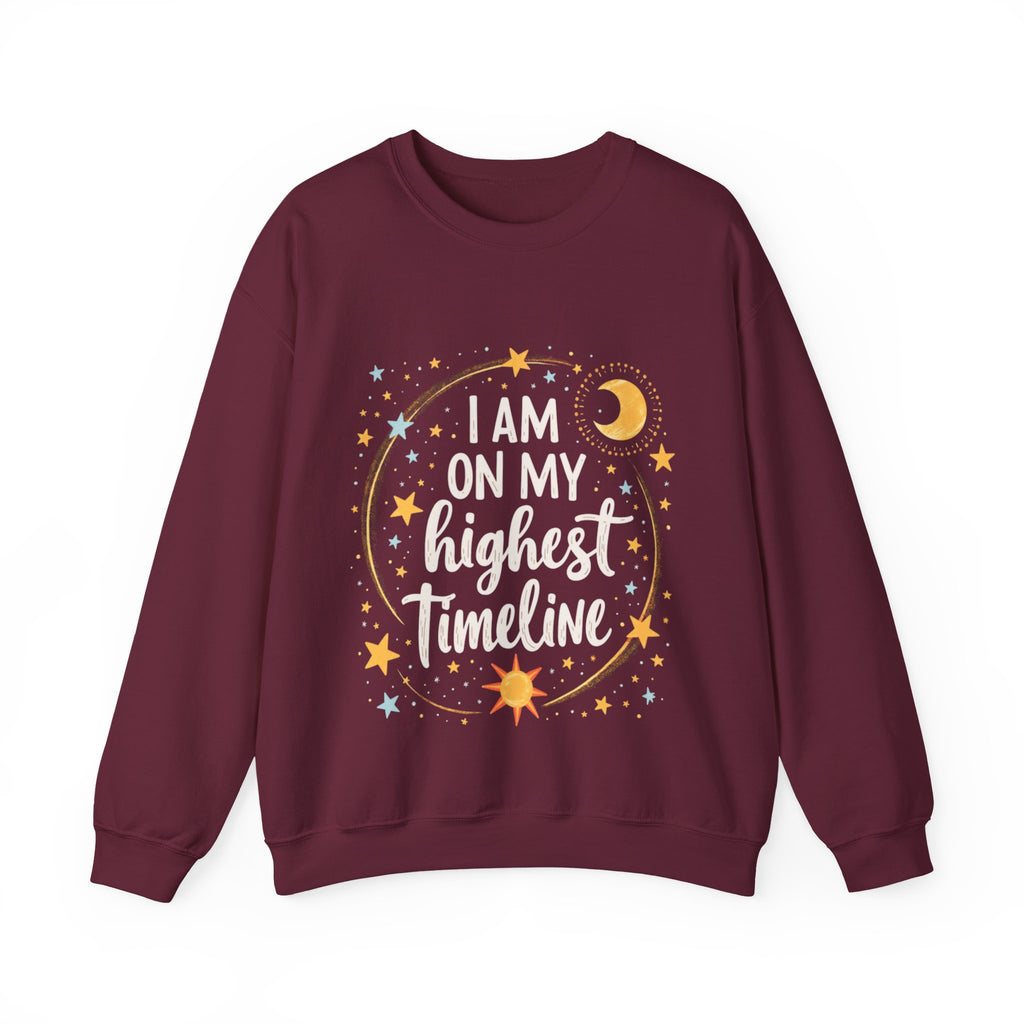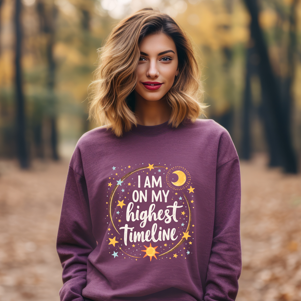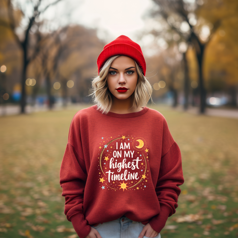 Step into your ultimate cosmic glow with our "I Am On My Highest Timeline Sweatshirt"! This isn’t just a shirt - it’s a bold declaration to the universe that you’re vibing at your peak potential. With its radiant graphic, this sweater channels celestial energy, perfect for dreamers, manifestors, and anyone ready to align with their brightest path. Crafted from a super soft cotton-poly blend, it’s like wearing a cloud plucked straight from the galaxy. The relaxed, unisex fit makes it your go-to for everything from morning meditations to late-night starlit adventures. Whether you’re manifesting your dreams, slaying at a festival, or just radiating good vibes, this sweatshirt’s got you glowing🌟. Snag this celestial gem and wear your intentions loud and proud! Limited stock - don’t miss your chance to shine on your highest timeline. Grab yours now and let the universe know you’re here to sparkle! It's a fantastic gift for holidays like Christmas, birthdays, or any occasion that calls for a dose of inspiration and warmth.