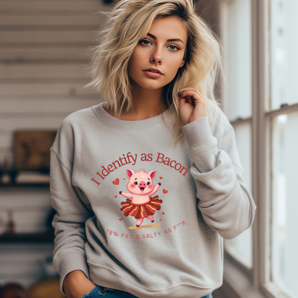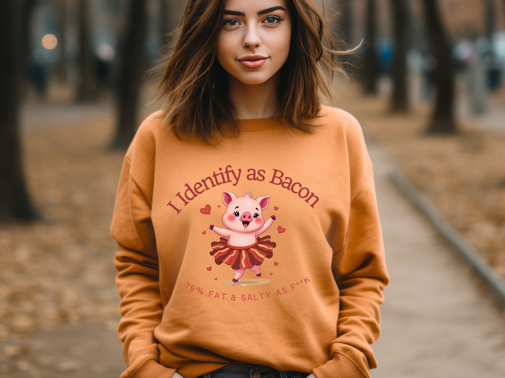 Crafted from a super-soft, comfy cotton-poly blend, this sweatshirt is your go-to for casual Fridays, brunch with friends, or just lounging with a side of fries. The pig’s cheeky grin and twirly bacon tutu will have everyone chuckling, while the salty attitude screams, “I’m here, I’m bacon, get used to it!” These beauties are sizzling off the shelves faster than a skillet on Sunday morning. Perfect for foodies, pun-lovers, and anyone who’s unapologetically extra.