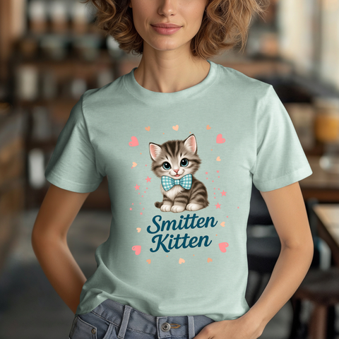 Fall head over heels for our Smitten Kitten Coquette Tee! Crafted on a super soft and comfy Bella + Canvas 3001 unisex tee, this shirt is your new go-to for adding a dash of flirty, feline charm to any outfit. Featuring an irresistibly cute kitten with a playful coquette vibe -complete with a sassy expression in a super cute bow - this tee is all about spreading love and giggles! Whether you’re lounging at home or out with friends, the relaxed fit and breathable fabric ensure comfort throughout the day. This tee brings a smile wherever you go. Snag this smitten kitten tee and let your wardrobe whisker its way into everyone’s hearts! Ideal for cat lovers, coquette cuties, or anyone who needs a little extra mew in their life. Add to cart now and get ready to strut your stuff!