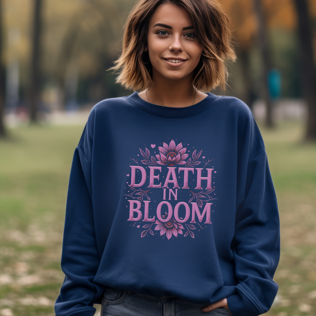Embrace the eerie elegance with our Death in Bloom Floral Sweatshirt! This hauntingly beautiful crewneck blends a vibrant floral pattern with a dark twist, featuring a chic design of blooming flowers and the bold caption "Death in Bloom" in a gothic academia font. Perfect for those who love their spooky with a side of chic, this shirt is your must-have for Halloween, fall festivals, or any day you want to bloom with a touch of the macabre! Whether you’re strolling through a pumpkin patch or dancing under the moonlight, you’ll stay comfy and stylish. The high-quality print ensures the vivid colors and intricate details pop, wash after wash. Snag this spellbinding sweatshirt and let your style blossom with a touch of darkness! 🌸💀