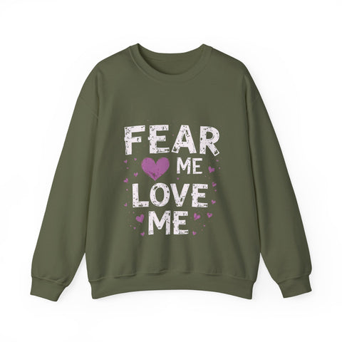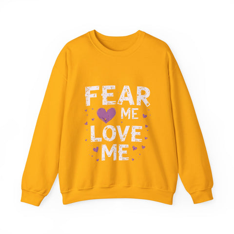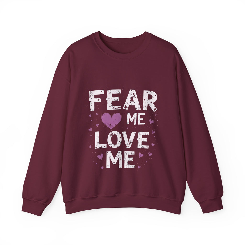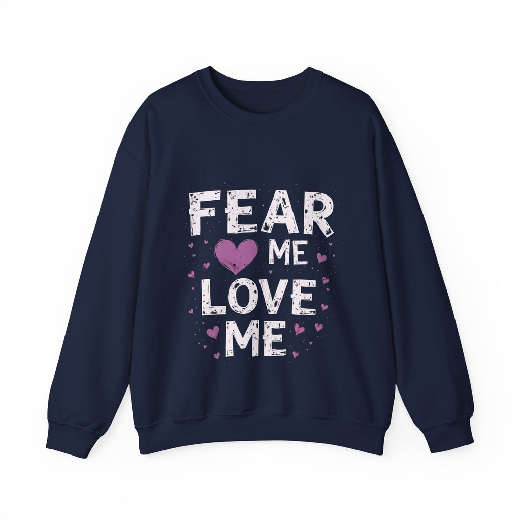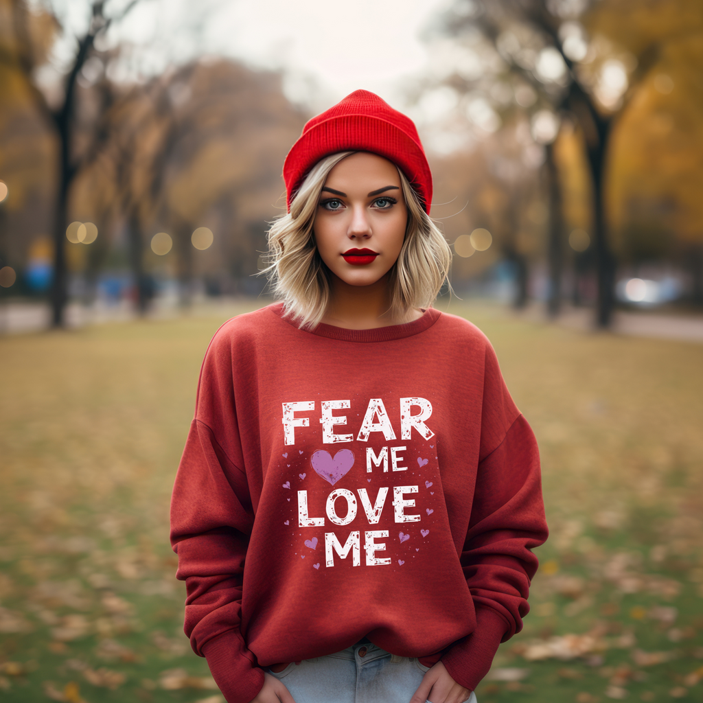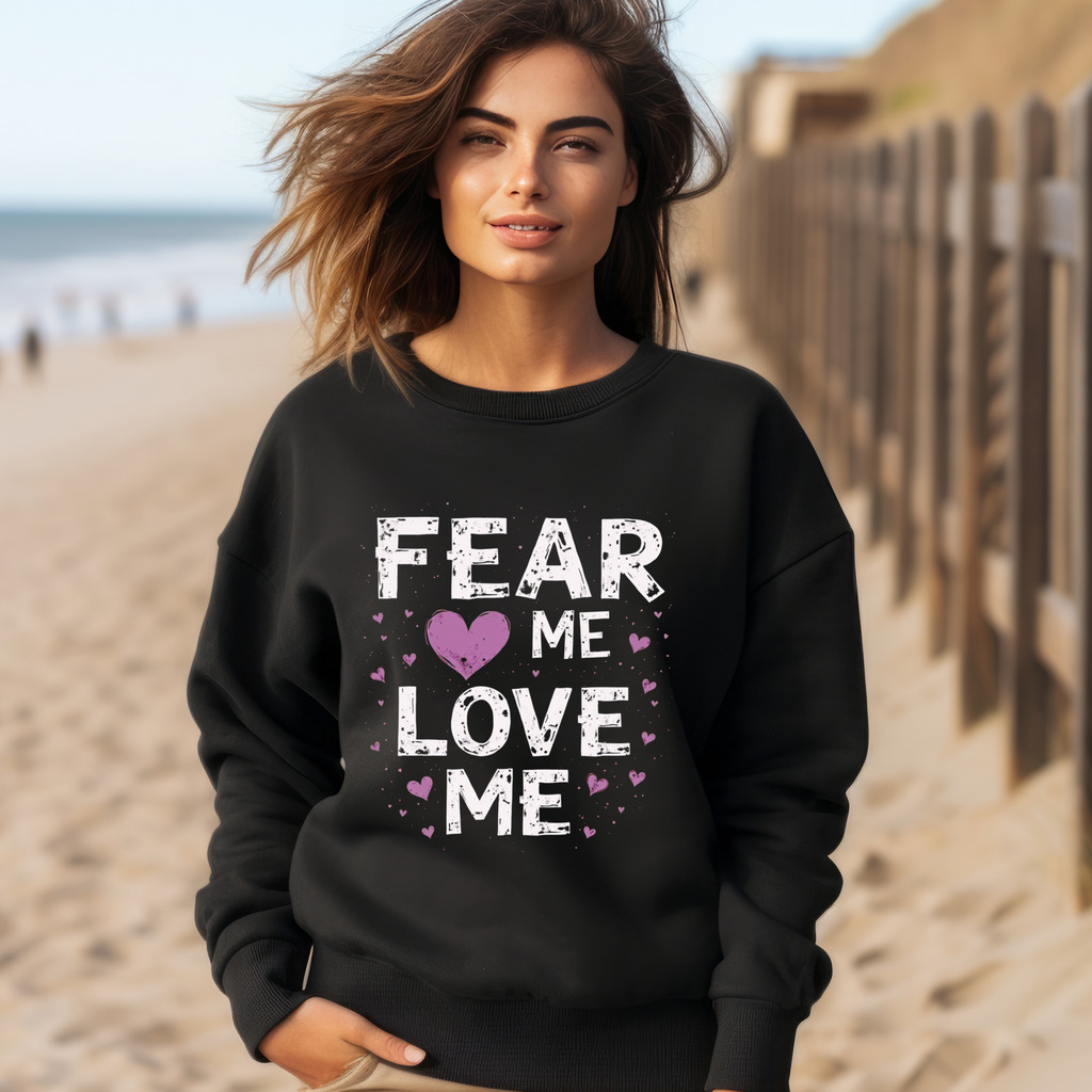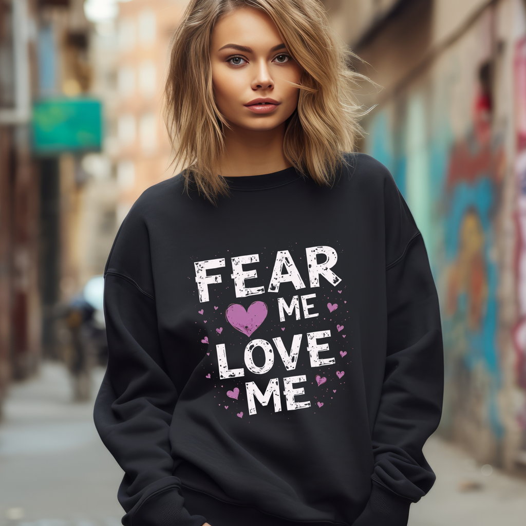 Our Fear Me Love Me Sweatshirt is your new go-to for channeling bold, playful energy that says, “I’m a vibe you can’t ignore!”. Perfect for the confident, the cheeky, and anyone who loves to mix a little sass with a lot of charm. This isn’t just a sweater - it’s a power move! 💥 Made from an oh-so-soft cotton-poly blend that feels like a dream (because who needs uncomfortable sweaters cramping their style?), this crewneck rocks a fierce, eye-catching print that’s sure to spark smiles and double-takes. Wear it to slay at brunch, own the dance floor, or just vibe like a boss at home. Snag this Fear Me Love Me pullover TODAY and let the world know that you are unapologetically YOU! 🔥