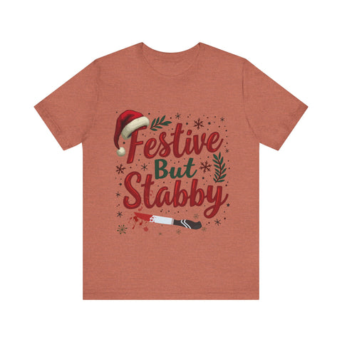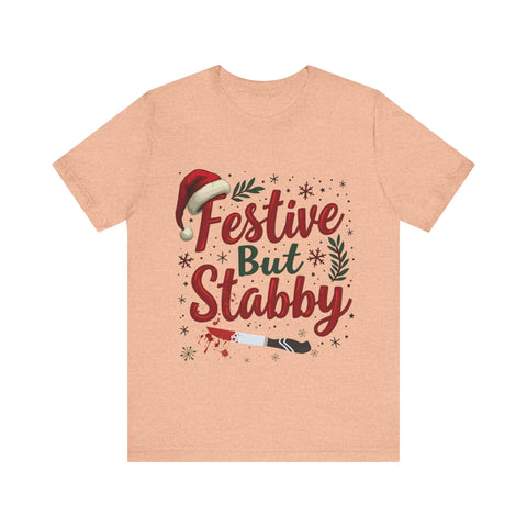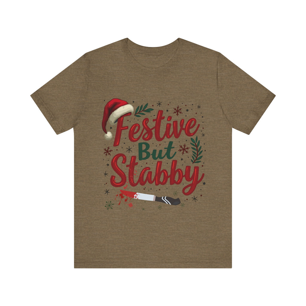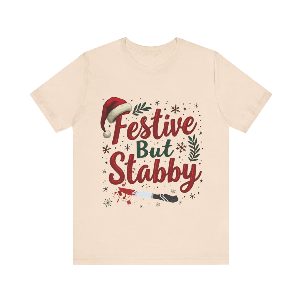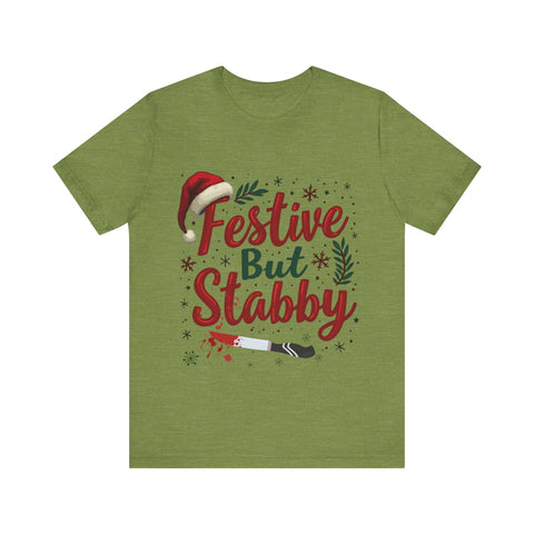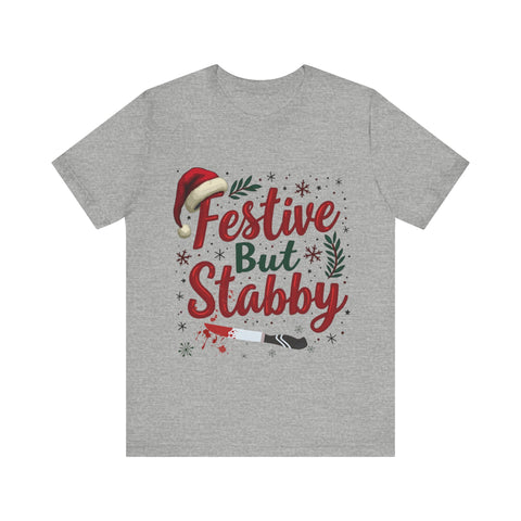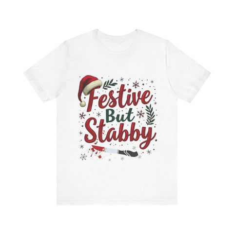 Deck the halls with a side of sass in our Festive But Stabby Christmas T-Shirt! Perfect for those who love to jingle all the way but aren’t afraid to wield a candy cane like a ninja star. This cozy, soft tee features a bold, cheeky tagline splashed across a vibrant holiday design, complete with twinkling olda elements and just a hint of mischievous charm. Crafted from premium, comfy cotton, this shirt is your go-to for ugly sweater parties, cookie-baking marathons, or dodging Aunt Edna’s fruitcake at family gatherings. It’s a conversation starter that says, “I’m here for the holiday cheer, but don’t test me!” Available in sizes S-3XL, it’s the gift that keeps on giving - laughs, style, and a subtle warning to keep the Christmas drama at bay. Snag yours now and wear your festive attitude with a stabby twist! Perfect for gifting to your snarkiest friend or treating yourself to some holiday swagger. Order today and get ready to sleigh the season!