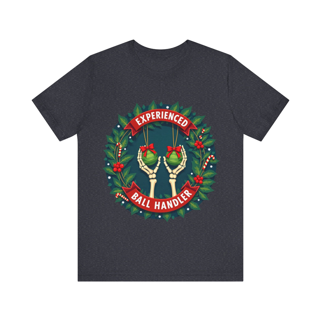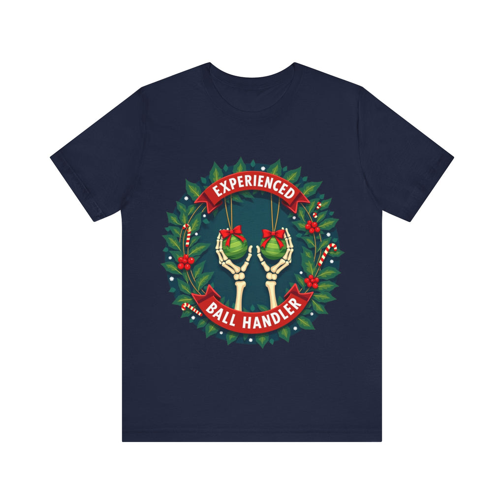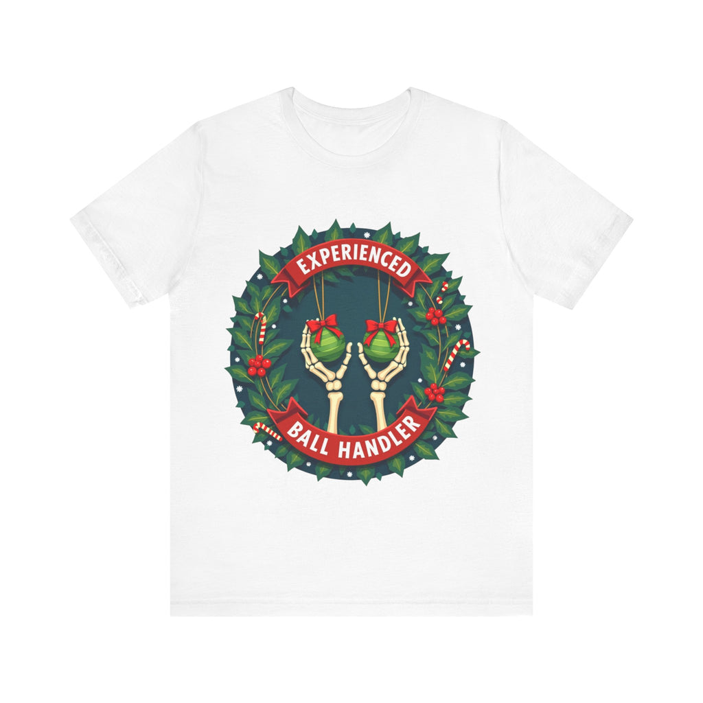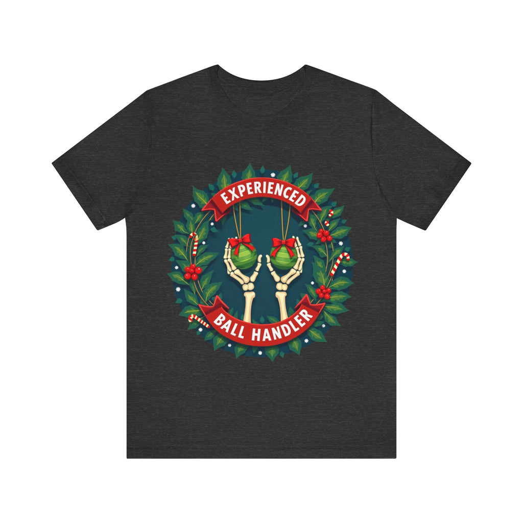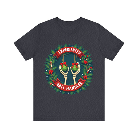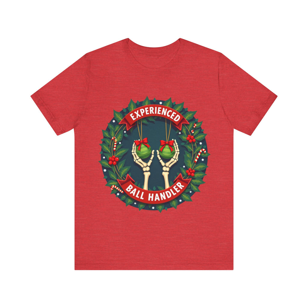 Jingle all the way with this cheeky "Experienced Ball Handler" Christmas T-Shirt, decked out with a playful Christmas balls design that’s sure to raise eyebrows and spark giggles! Perfect for those who love their holiday spirit with a side of saucy humor, this tee is your go-to for festive parties, gift exchanges, or just lounging by the fire with a smirk. Made from super-soft, comfy airlume cotton, it’s as cozy as it is bold. Get ready to handle the holiday season like a pro and make everyone wish they had your… skills! The ultimate gift for your favorite merry prankster. Grab this tee and show off your expert ball-handling swagger this Christmas!