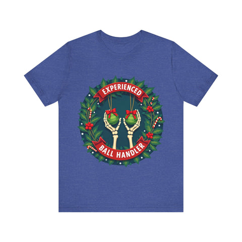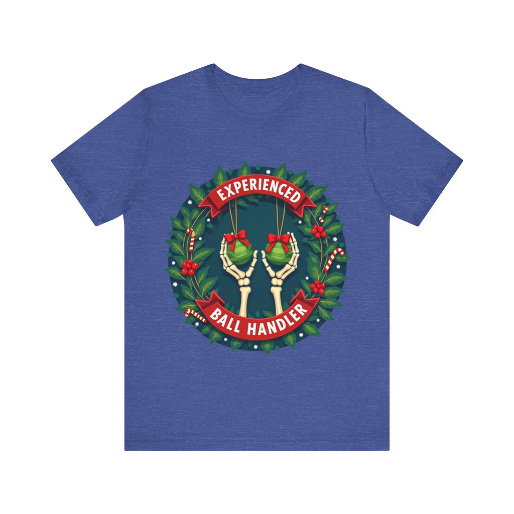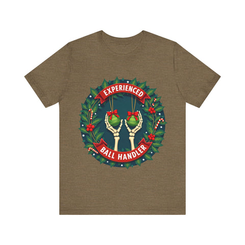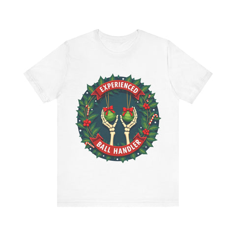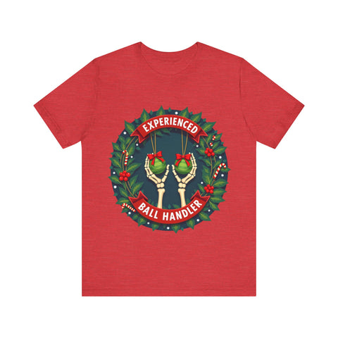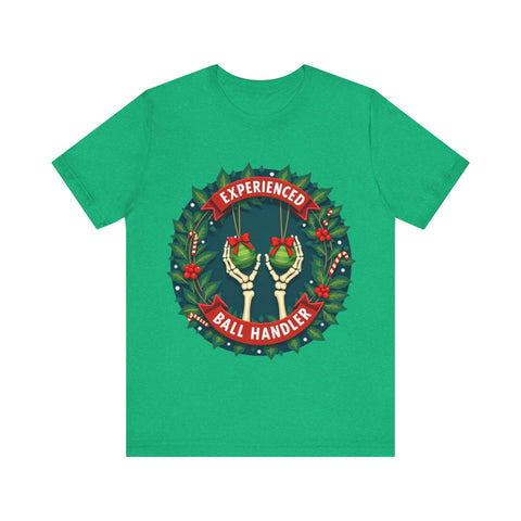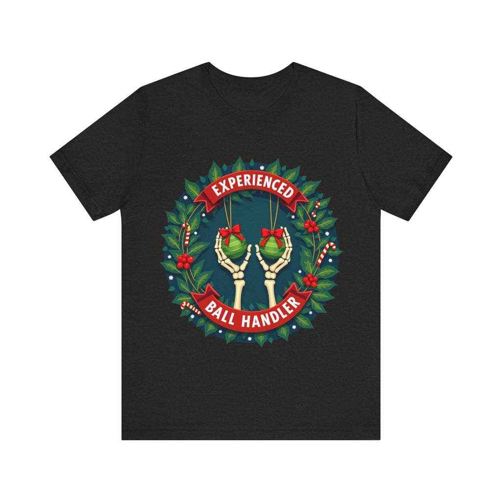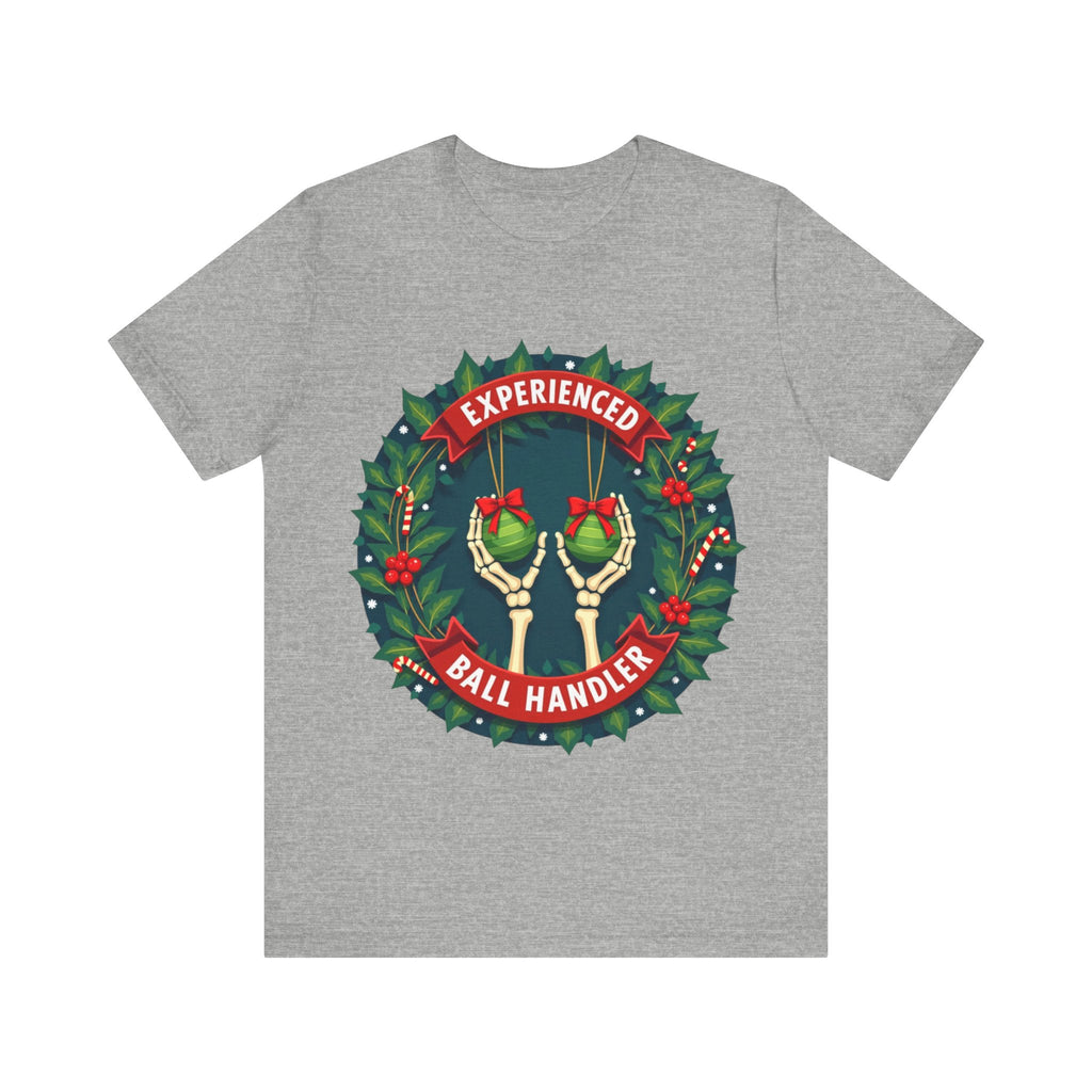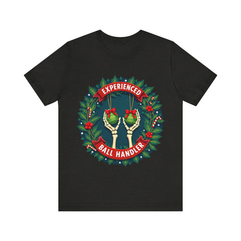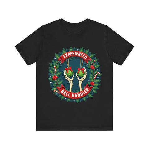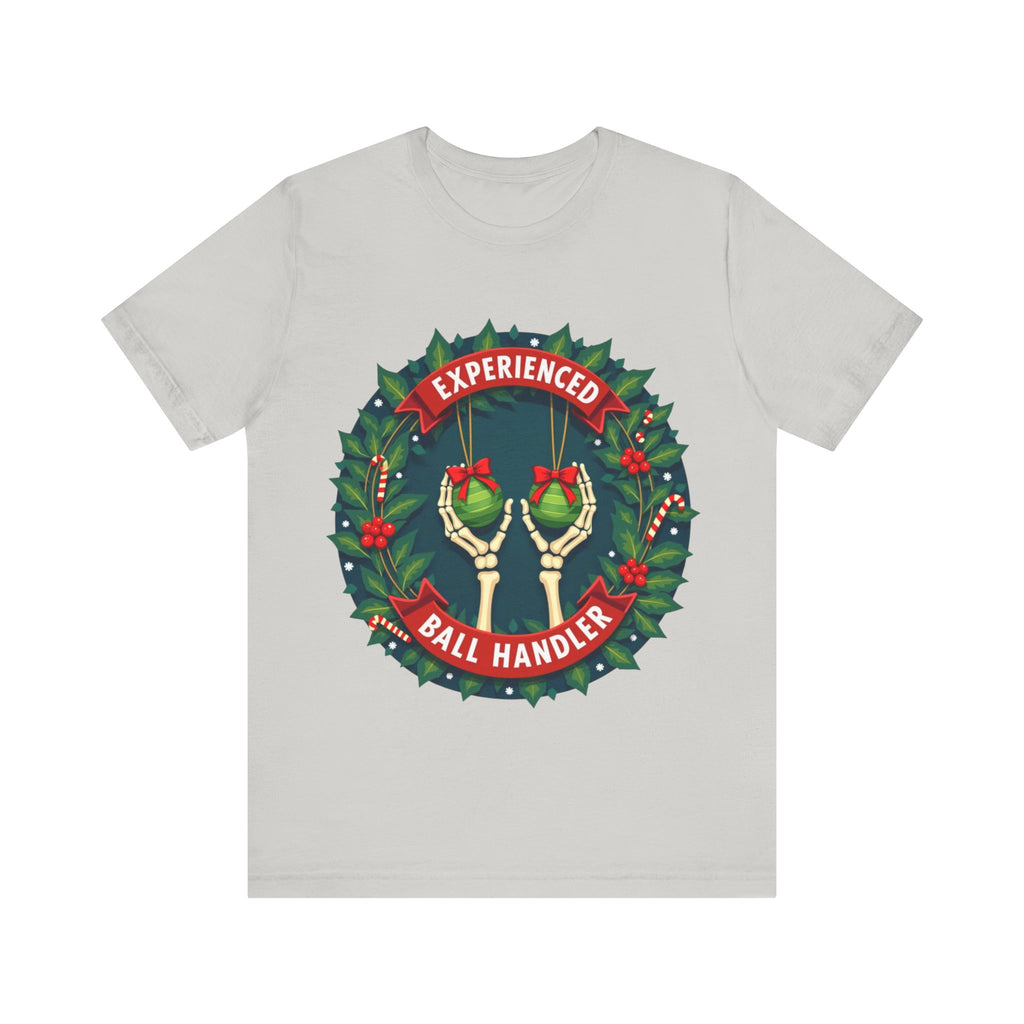 Jingle all the way with this cheeky "Experienced Ball Handler" Christmas T-Shirt, decked out with a playful Christmas balls design that’s sure to raise eyebrows and spark giggles! Perfect for those who love their holiday spirit with a side of saucy humor, this tee is your go-to for festive parties, gift exchanges, or just lounging by the fire with a smirk. Made from super-soft, comfy airlume cotton, it’s as cozy as it is bold. Get ready to handle the holiday season like a pro and make everyone wish they had your… skills! The ultimate gift for your favorite merry prankster. Grab this tee and show off your expert ball-handling swagger this Christmas!