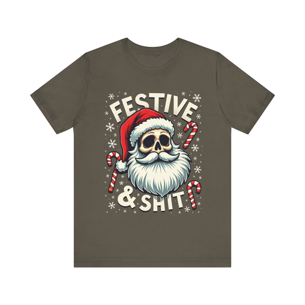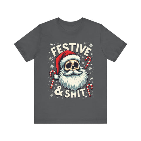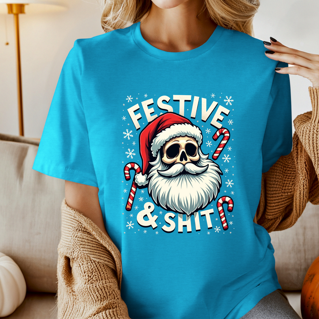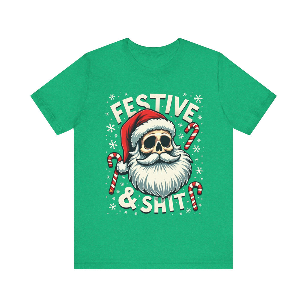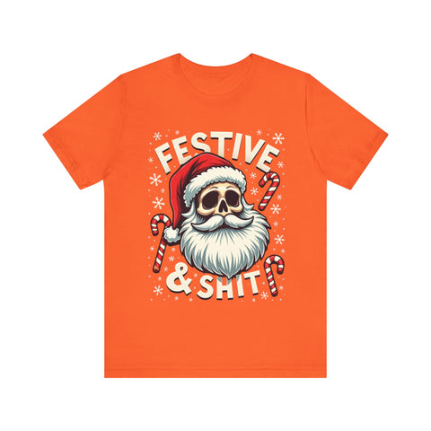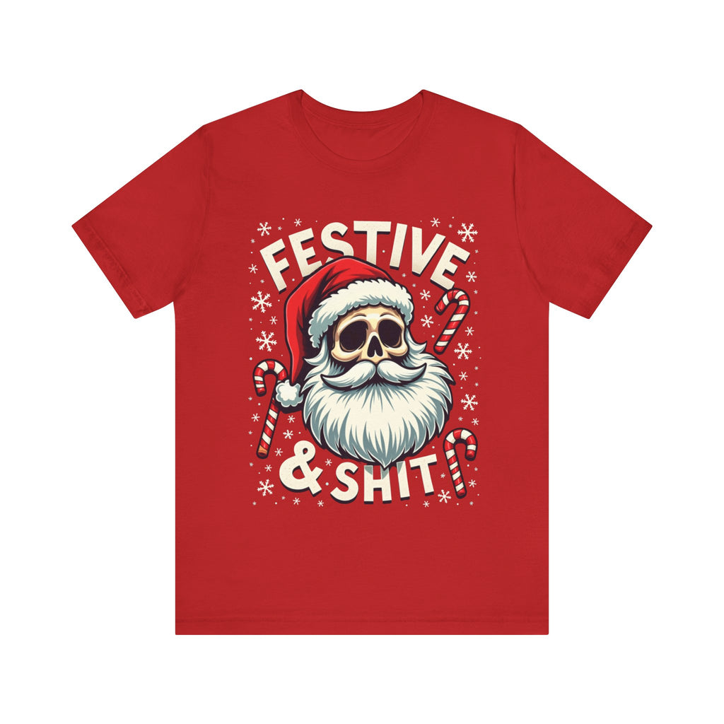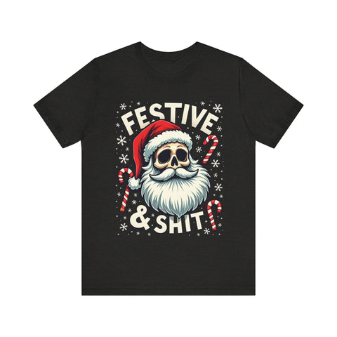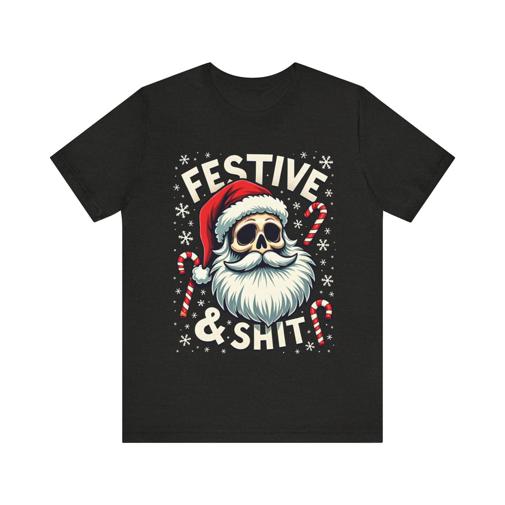 Ho ho hell yeah, this "Festive & Shit" Skull SantaT-Shirt is here to crank your holiday vibe up to eleven! Rocking a badass Skull Santa who’s serving looks and zero cares, this tee is your ticket to owning every holiday party, ugly sweater contest, or late-night gift-wrapping sesh. Made from ridiculously soft fabric that feels like a cozy rebellion, it’s perfect for sipping spiked eggnog or throwing shade at tacky tinsel. Get ready to jingle all the way with a sarcastic smirk that screams festive chaos! The ultimate gift for your favorite holiday rebel or sarcasm slinger. Grab this tee and let Skull Santa help you sleigh the season with epic attitude!