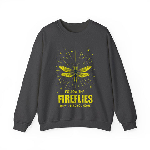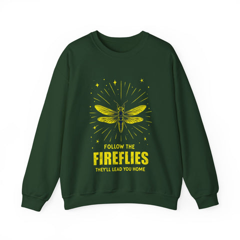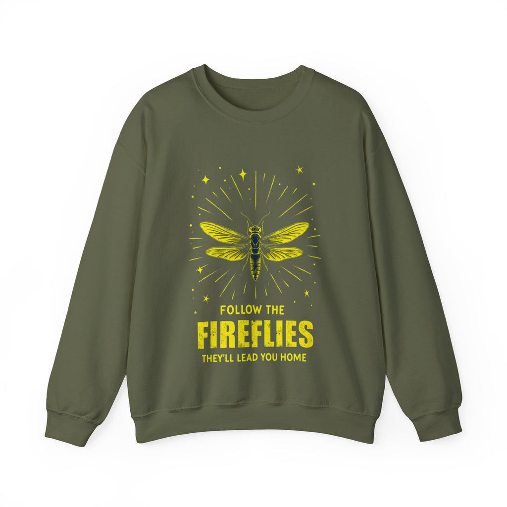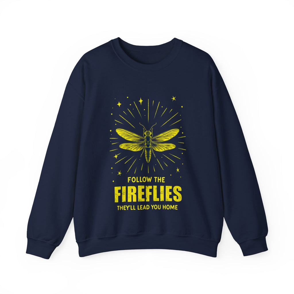 Light up your wardrobe with our Follow the Fireflies Sweatshirt! This isn’t just a crewneck - it’s a vibe, a sassy little beacon for dreamers, wanderers, and anyone who believes magic happens when you chase the glow. Crafted from super-soft, comfy cotton/poly blend, this sweatshirt feels like a warm summer night and looks like a statement piece that’ll turn heads. Picture this: you’re rocking this sweater at a festival, a bonfire, or just strutting through the grocery store (because why not?). The bold, whimsical “Follow the Fireflies” print sparkles with charm, reminding everyone to embrace life’s little adventures. Whether you’re a free spirit or just need a nudge to find your way home, this sweatshirt’s got your back - and your front! Grab yours now and let the fireflies lead you to your next adventure. Trust us, this pullover is your new go-to for adding a sprinkle of magic to any day✨. Snag it before it flutters away!