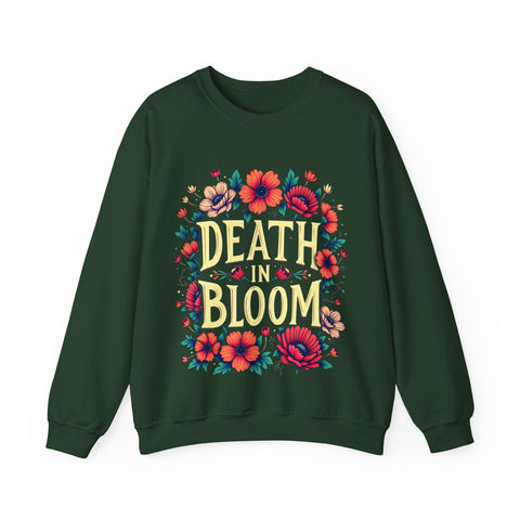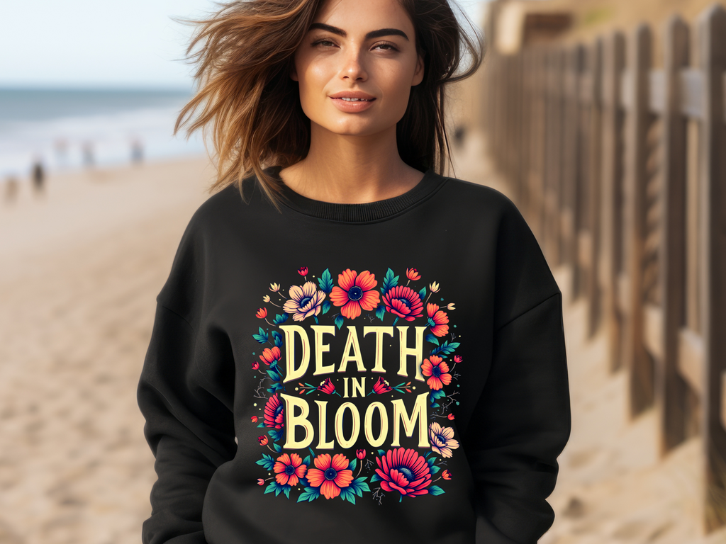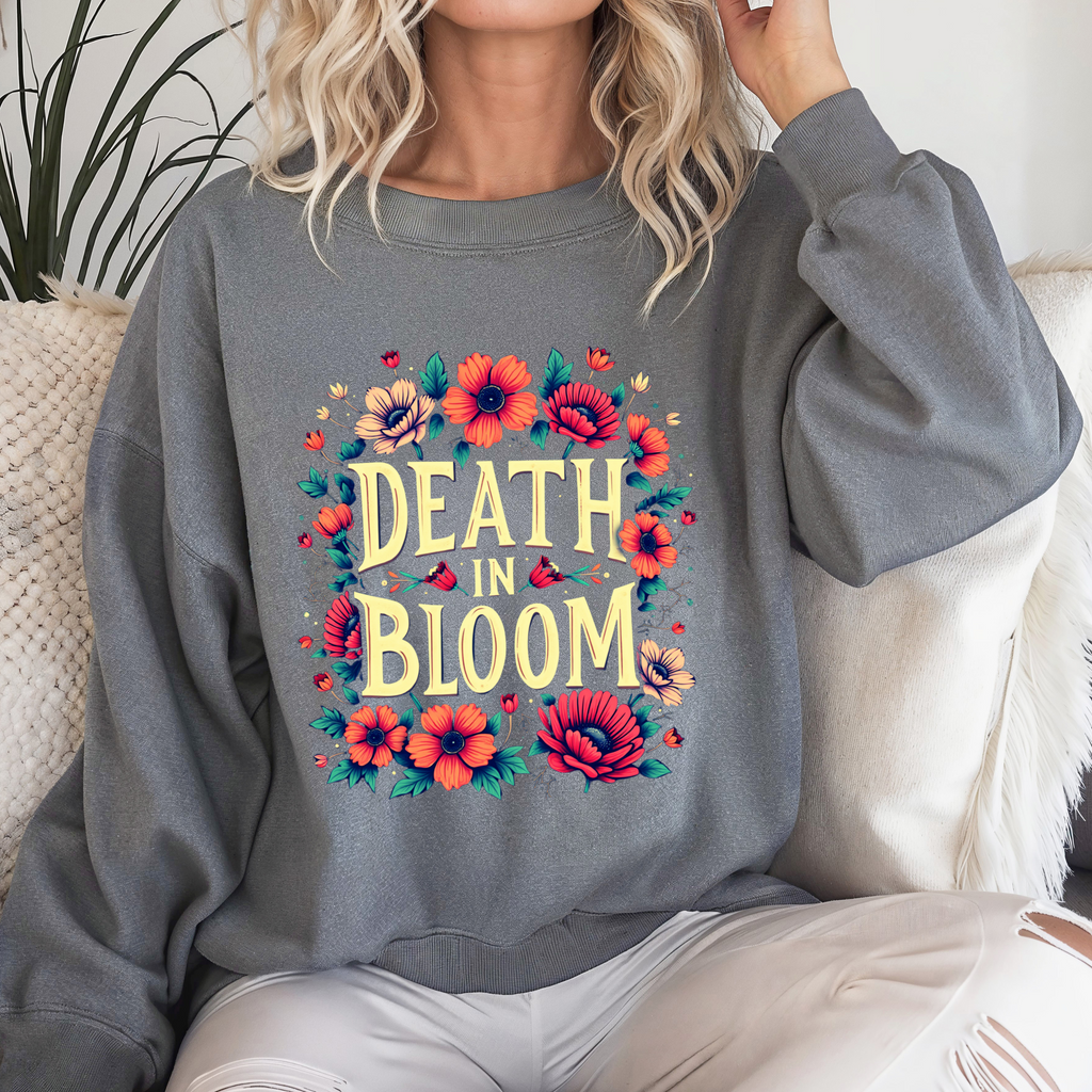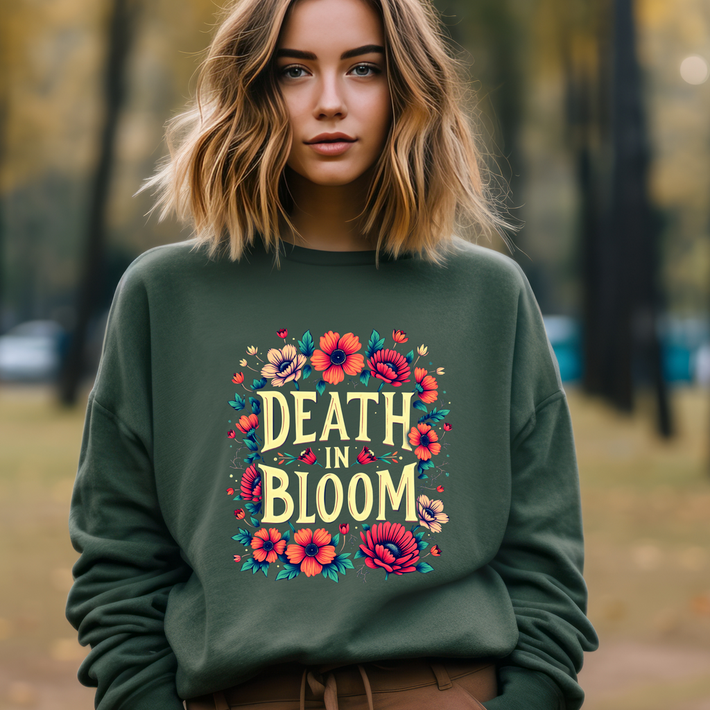 Embrace the eerie elegance with our Death in Bloom Floral Sweatshirt! This hauntingly beautiful crewneck blends a vibrant floral pattern with a dark twist, featuring a chic design of blooming flowers and the bold caption "Death in Bloom" in a gothic academia font. Perfect for those who love their spooky with a side of chic, this sweatshirt is your must-have for Halloween, fall festivals, or any day you want to bloom with a touch of the macabre! Whether you’re strolling through a pumpkin patch or dancing under the moonlight, you’ll stay comfy and stylish. The high-quality print ensures the vivid colors and intricate details pop, wash after wash. Snag this spellbinding pullover and let your style blossom with a touch of darkness! 🌸💀