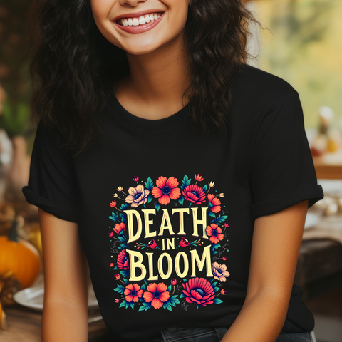Embrace the eerie elegance with our Death in Bloom Floral T-Shirt! This hauntingly beautiful tee blends a vibrant floral pattern with a dark twist, featuring a chic design of blooming flowers and the bold caption "Death in Bloom" in a gothic academia font. Perfect for those who love their spooky with a side of chic, this shirt is your must-have for Halloween, fall festivals, or any day you want to bloom with a touch of the macabre! Whether you’re strolling through a pumpkin patch or dancing under the moonlight, you’ll stay comfy and stylish. The high-quality print ensures the vivid colors and intricate details pop, wash after wash. Snag this spellbinding tee and let your style blossom with a touch of darkness! 🌸💀
