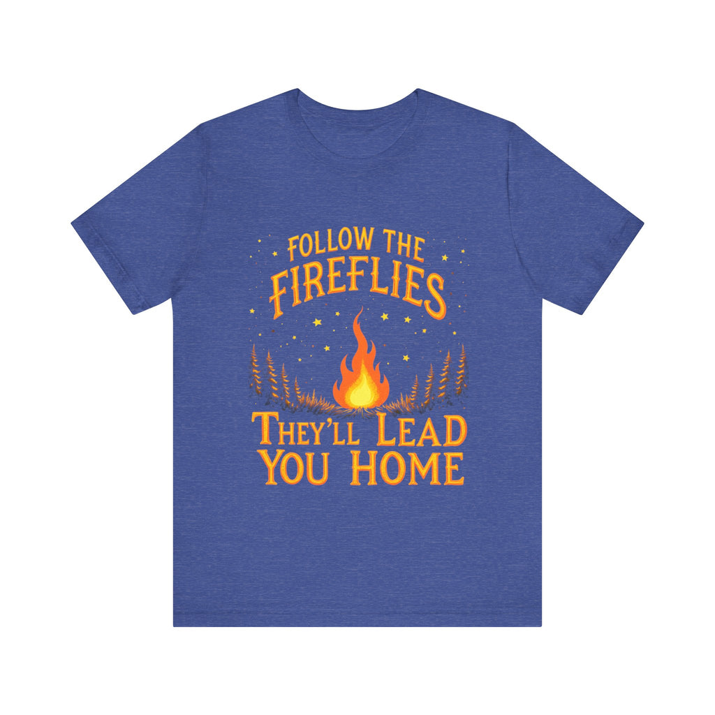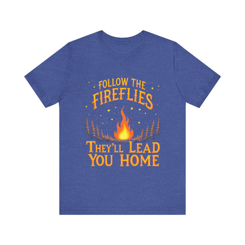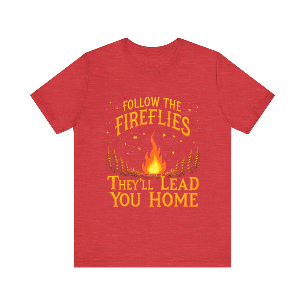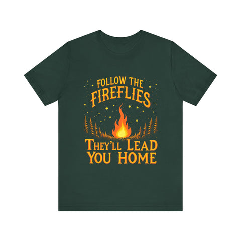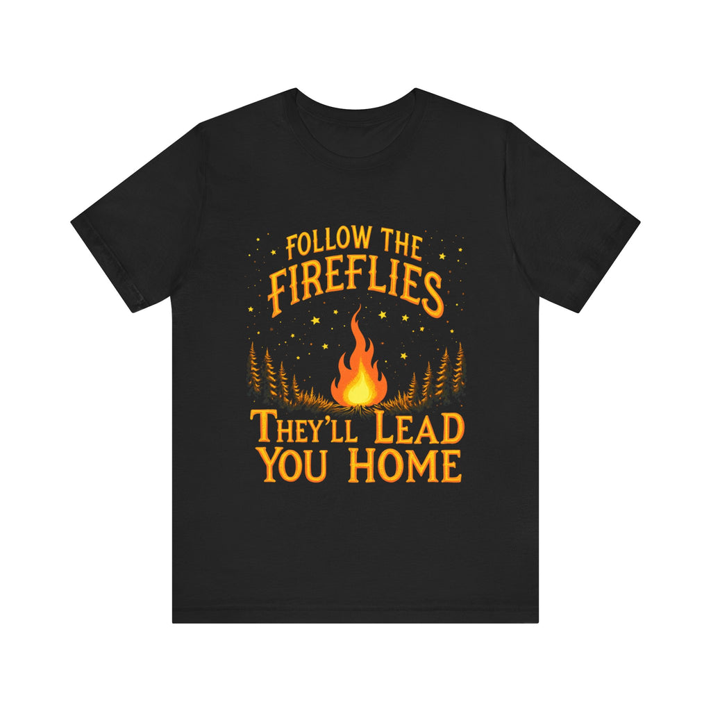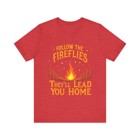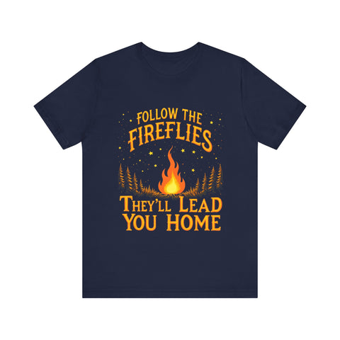 Embrace the magic of the outdoors with our unisex jersey short sleeve tee. Featuring a whimsical design that invites you to "Follow the Fireflies, They'll Lead You Home," this tee radiates warmth and nostalgia, perfect for nature lovers and adventure seekers. Its' breathable and lightweight fabric makes it ideal for both casual outings and cozy evenings around the campfire. Great for those who cherish summer nights, outdoor gatherings, or simply relaxing at home. This tee is perfect for Father's Day, bonfire parties, or any occasion where memories are made. Wear it to celebrate your connection to nature and seek adventure with friends and family!