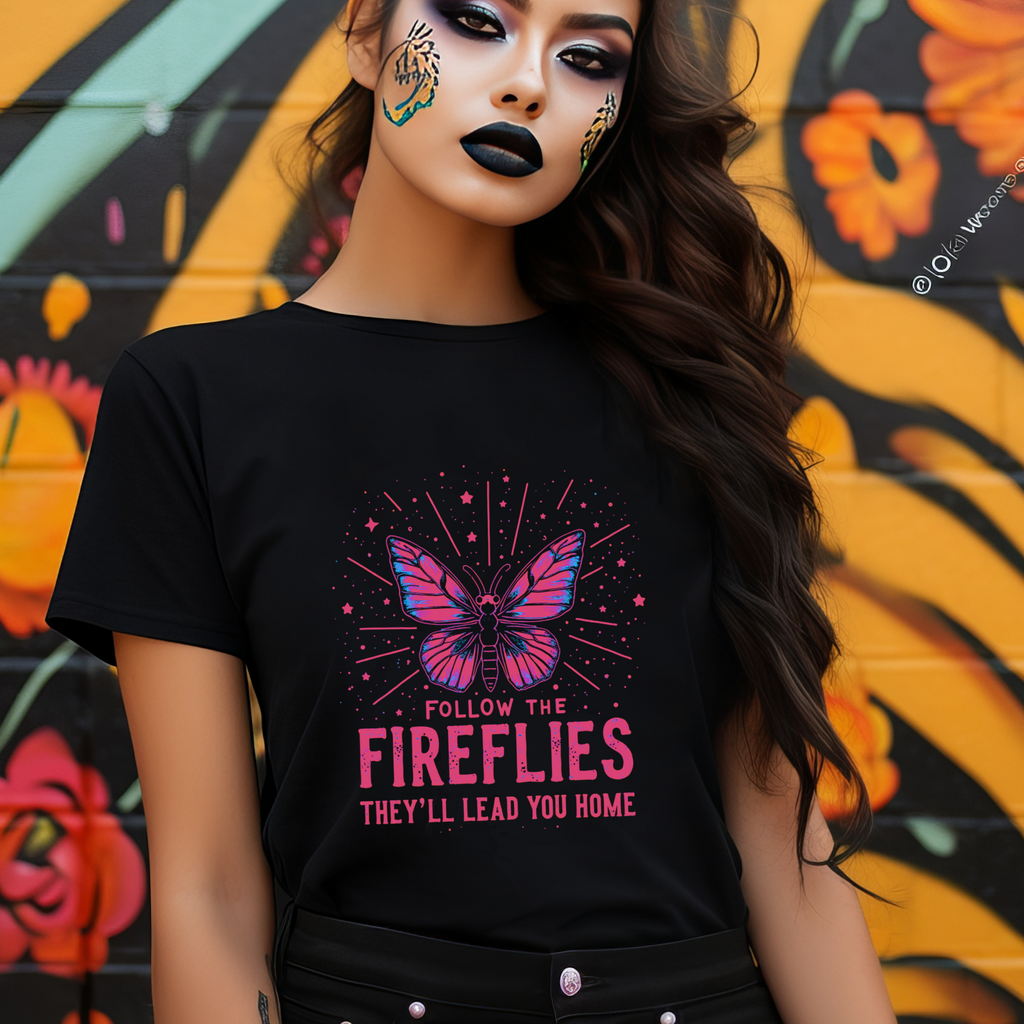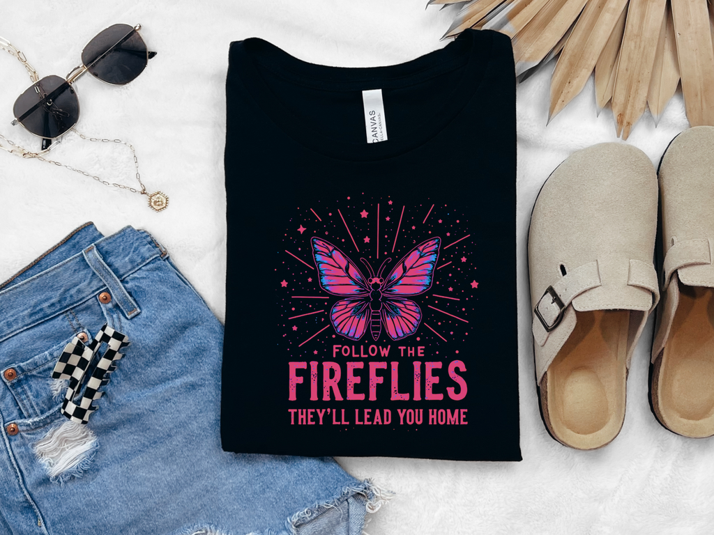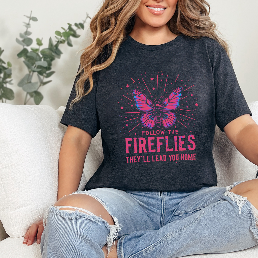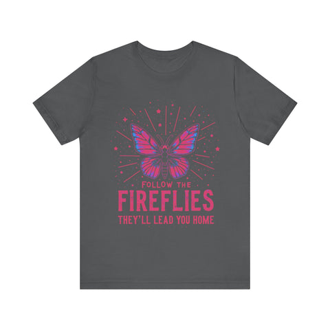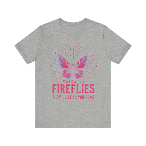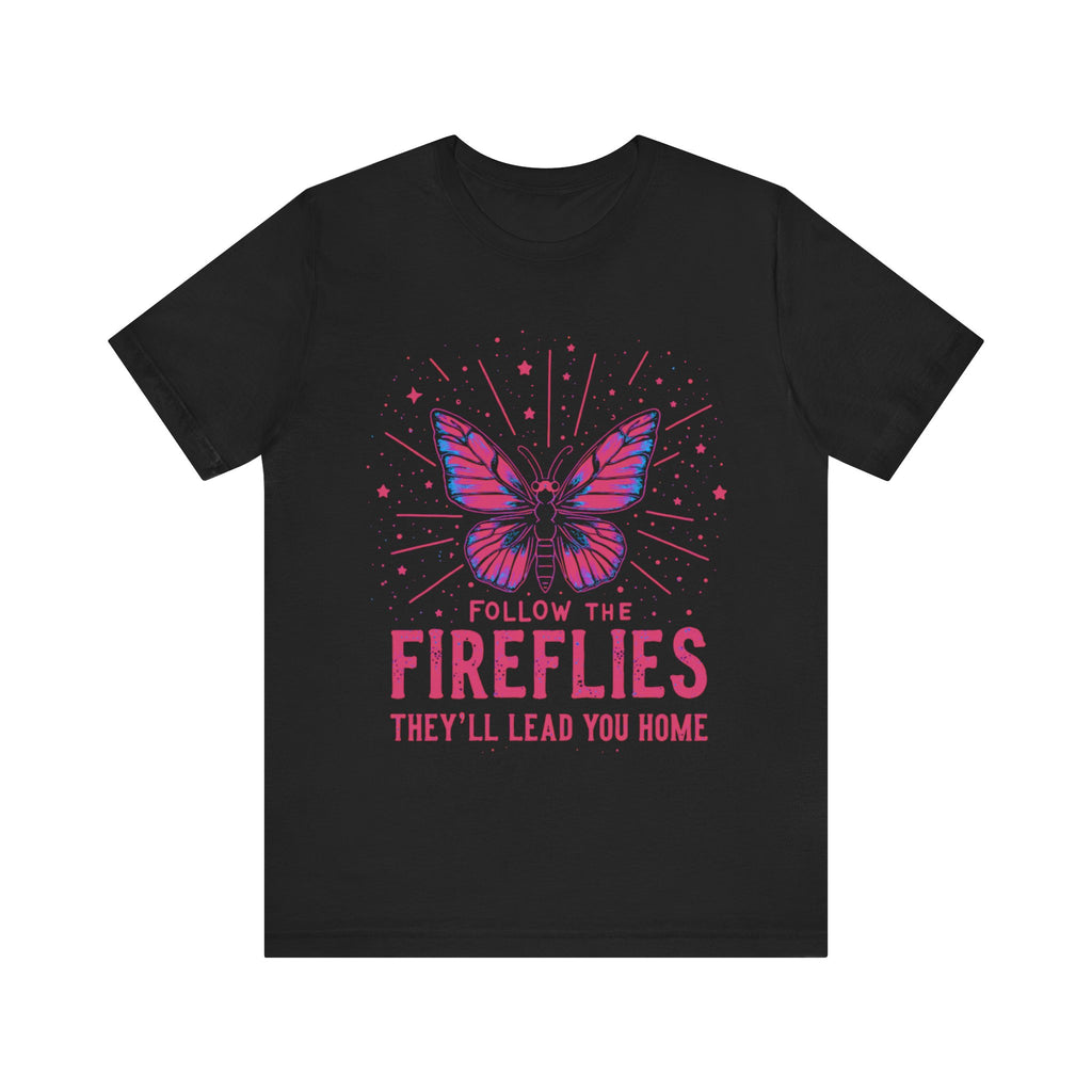 Embrace the magic of the outdoors with our unisex jersey short sleeve tee. Featuring a whimsical design that invites you to "Follow the Fireflies, They'll Lead You Home," this tee radiates warmth and nostalgia, perfect for nature lovers and adventure seekers. Its' breathable and lightweight fabric makes it ideal for both casual outings and cozy evenings around the campfire. Great for those who cherish summer nights, outdoor gatherings, or simply relaxing at home. This tee is perfect for Mother's Day, camping, glamping, bonfire parties, or any occasion where memories are made. Wear it to celebrate your connection to nature and seek adventure with friends and family!