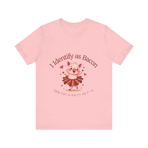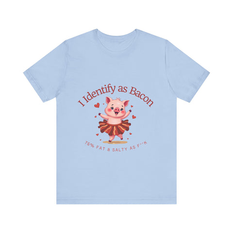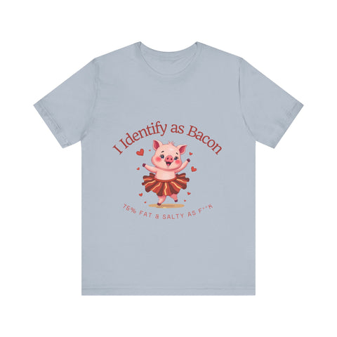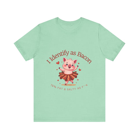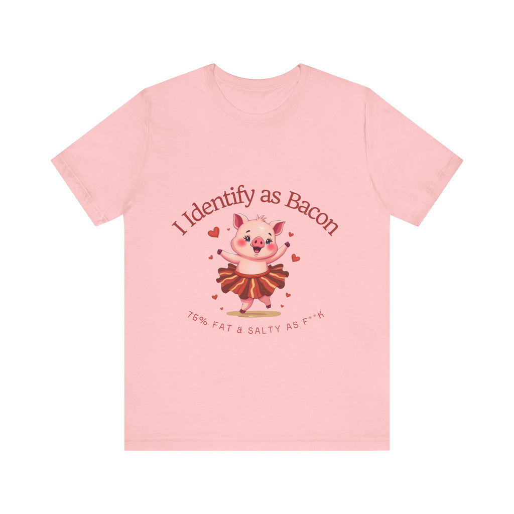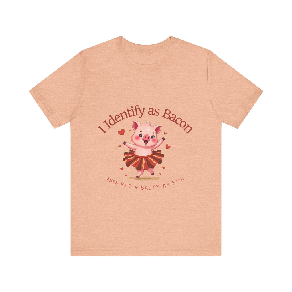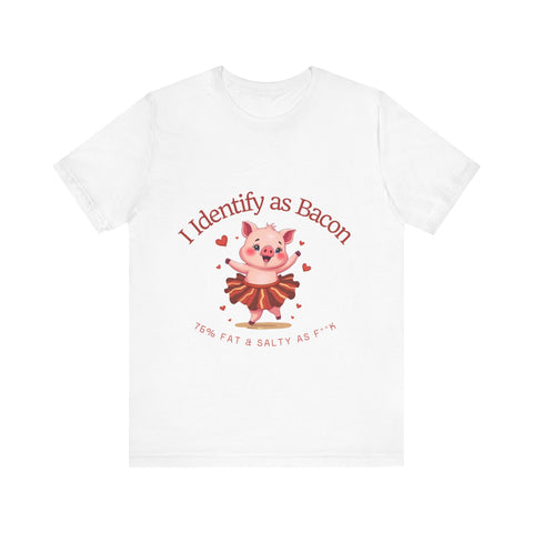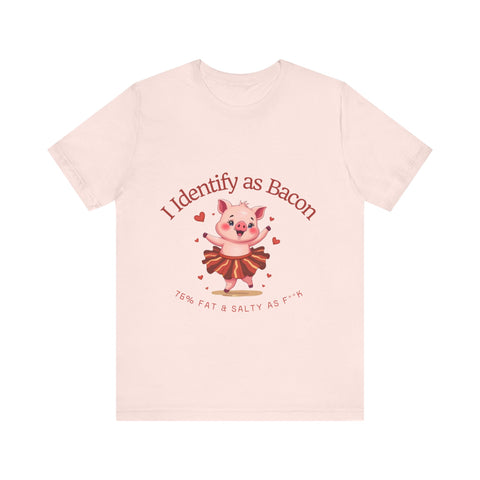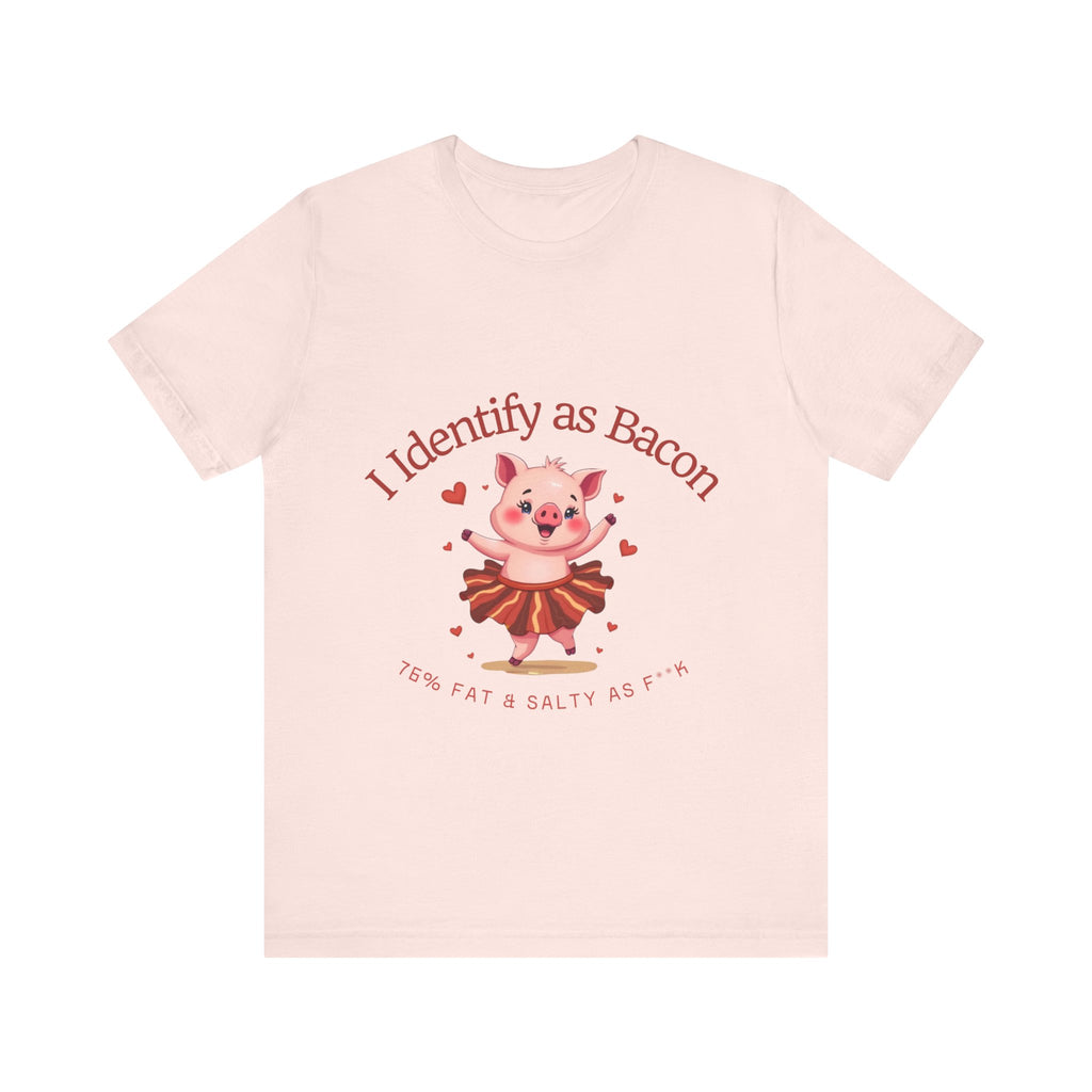 Get ready to squeal with delight over this hilariously adorable t-shirt featuring a chubby little pig prancing in a bacon-strip tutu! This tee is the perfect blend of cute, sassy, and downright delicious vibes.