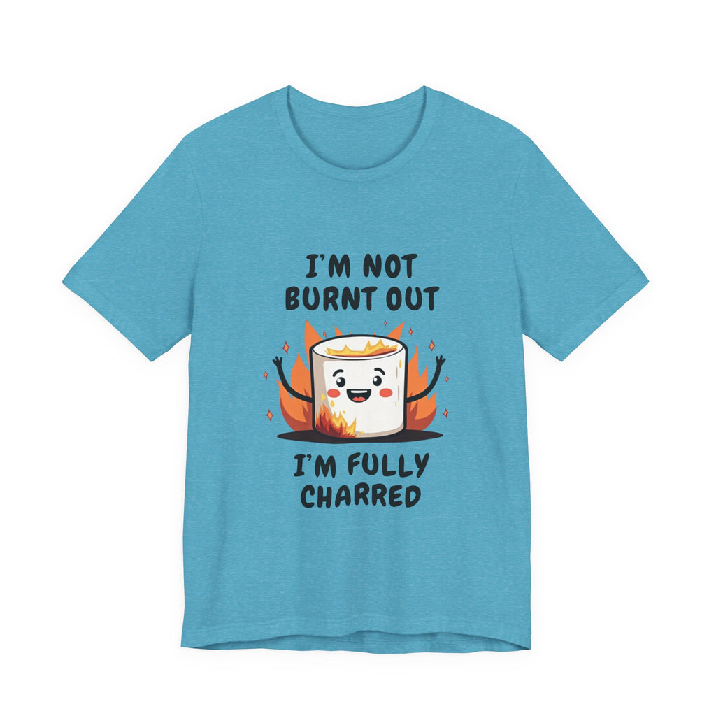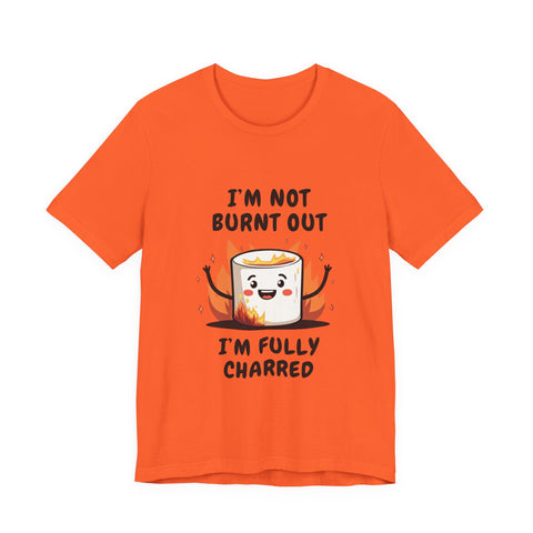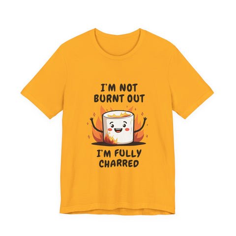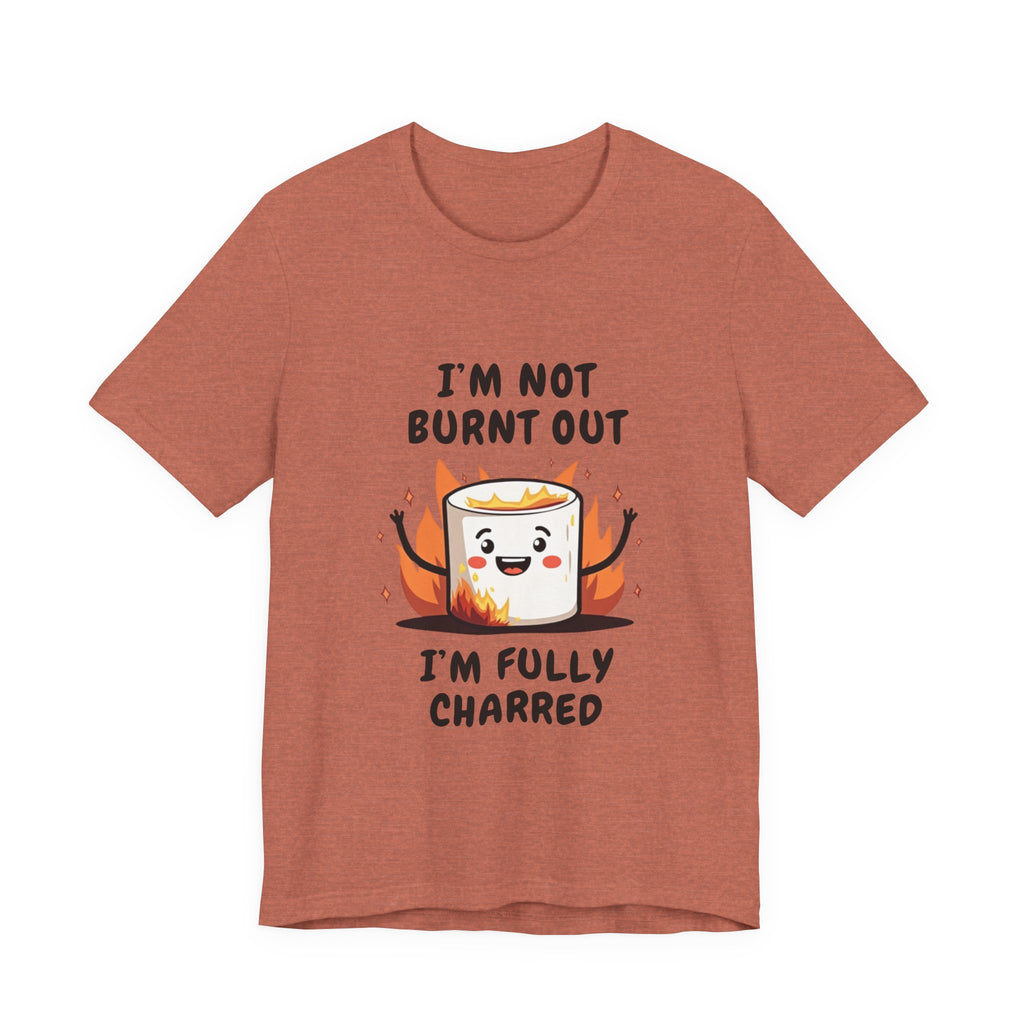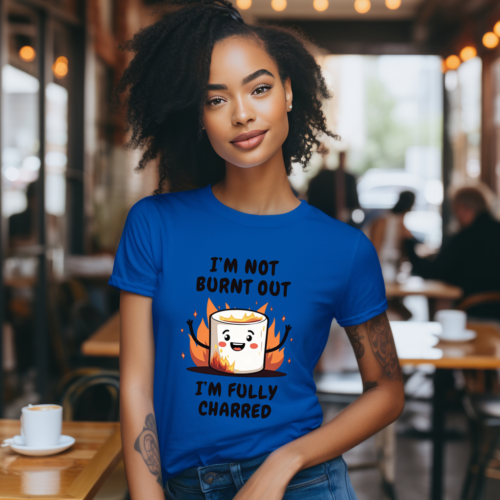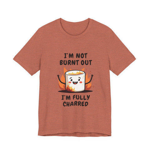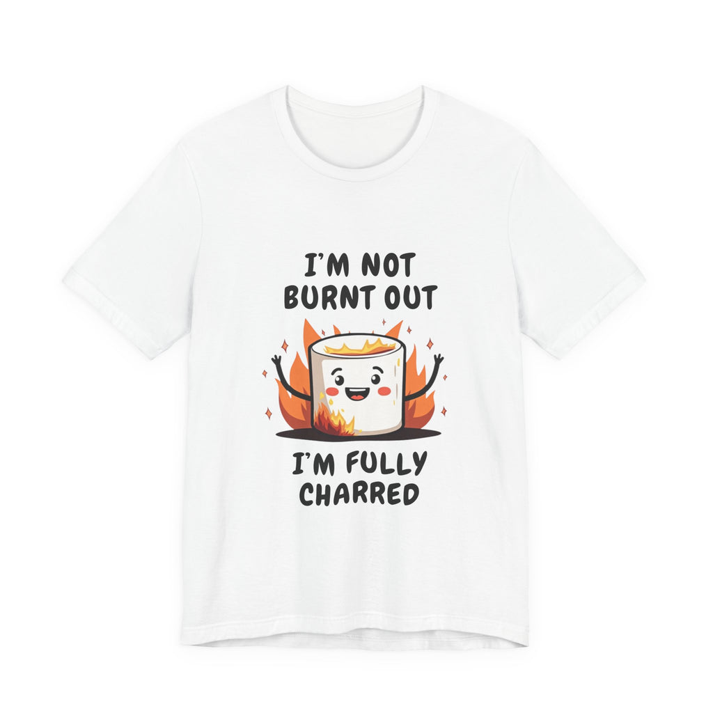 Say hello to the "I'm Not Burnt Out, I'm Fully Charred" T-Shirt, where a crispy, googly-eyed burnt marshmallow steals the show and your heart! This tee is your sarcastic spirit animal, serving up a deliciously roasted vibe with a side of “I’m over it” energy. The text "I'm Not Burnt Out I'm Fully Charred" is the ultimate clapback to life’s endless to-do lists, Zoom meetings, and that one coworker who keeps stealing your snacks. It’s not exhaustion - it’s character, baby! Made from cloud-soft, breathable airlume cotton, this shirt is as light and airy as a campfire breeze (minus the smoke inhalation). The hilarious burnt marshmallow graphic is your new BFF, winking at the world like, “Yeah, I’ve been through the fire, and I’m still fabulous”. Perfect for casual Fridays, late-night s’mores sessions, or just vibing on the couch while you ignore your inbox like a pro.