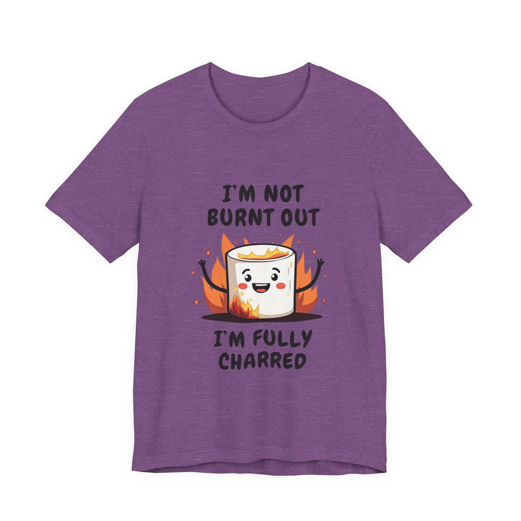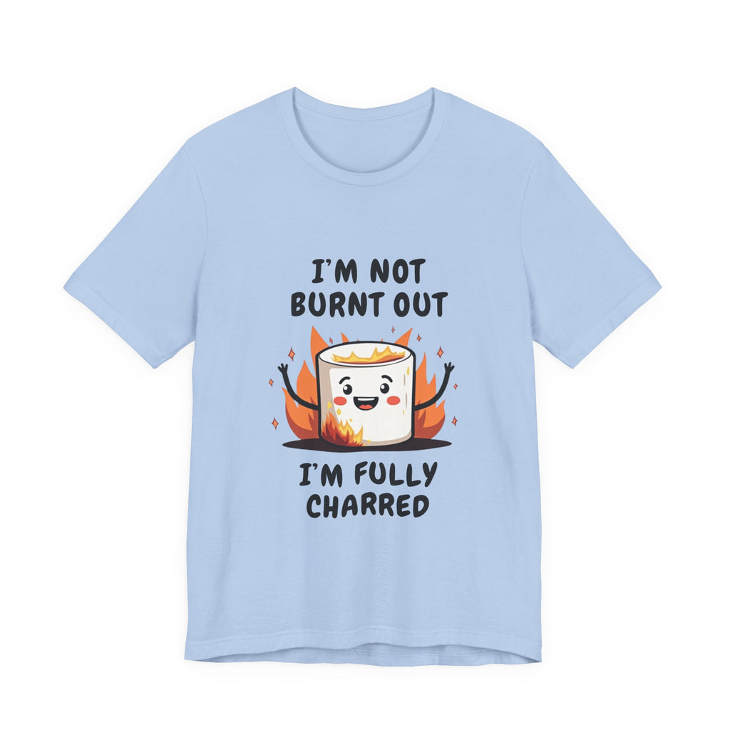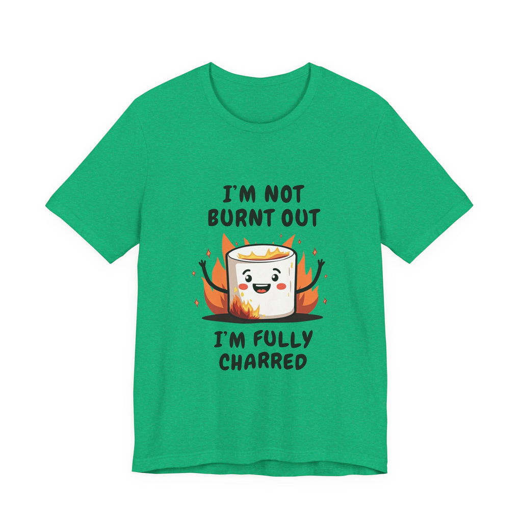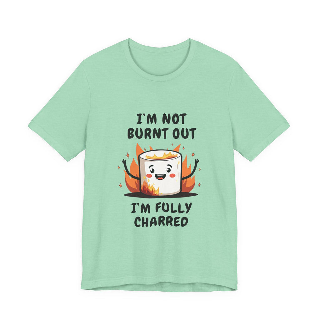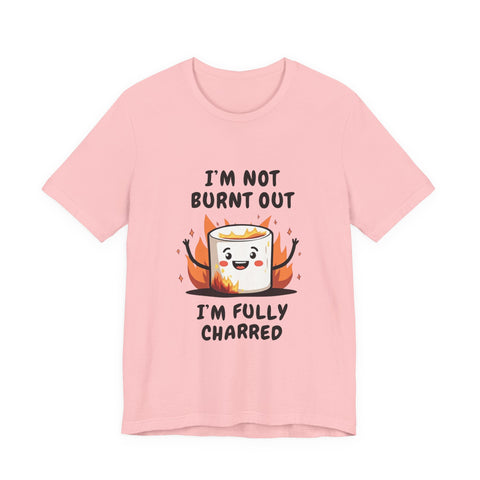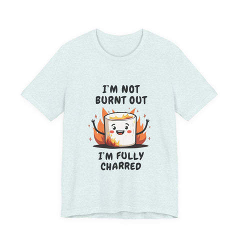 Say hello to the "I'm Not Burnt Out, I'm Fully Charred" T-Shirt, where a crispy, googly-eyed burnt marshmallow steals the show and your heart! This tee is your sarcastic spirit animal, serving up a deliciously roasted vibe with a side of “I’m over it” energy. The text "I'm Not Burnt Out I'm Fully Charred" is the ultimate clapback to life’s endless to-do lists, Zoom meetings, and that one coworker who keeps stealing your snacks. It’s not exhaustion - it’s character, baby! Made from cloud-soft, breathable airlume cotton, this shirt is as light and airy as a campfire breeze (minus the smoke inhalation). The hilarious burnt marshmallow graphic is your new BFF, winking at the world like, “Yeah, I’ve been through the fire, and I’m still fabulous”. Perfect for casual Fridays, late-night s’mores sessions, or just vibing on the couch while you ignore your inbox like a pro.
