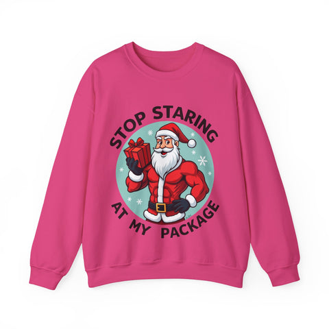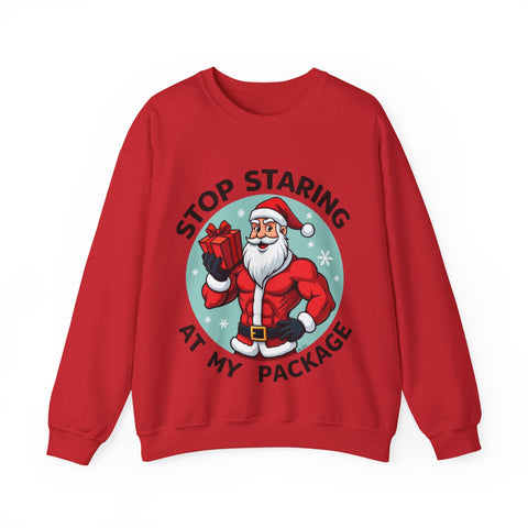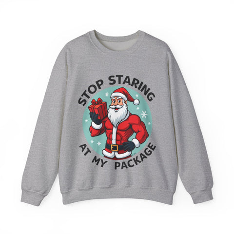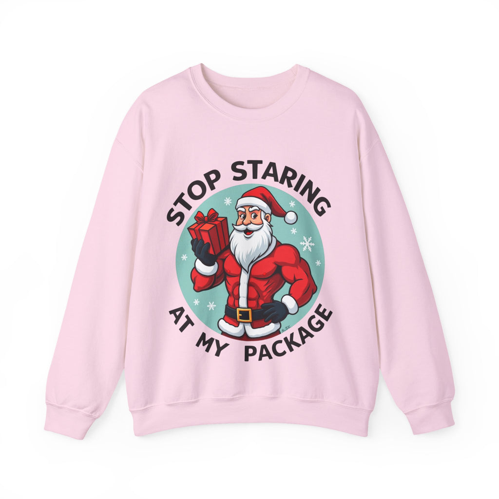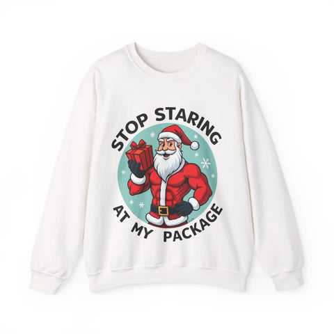 Oh, honey, this "Stop Staring At My Package" Christmas Sweatshirt is delivering all the naughty holiday vibes you need! Featuring a smokin’ hot cartoon Santa who’s got more than just presents in his sack, this crewneck is your go-to for turning heads at every festive bash. Made from a deliciously soft, dad bod-hugging cotton-poly blend, it’s perfect for flirting under the mistletoe, sipping something spicy, or just owning the holiday glow-up. With a wink and a smirk, this shirt says you’re here to sleigh - and they better keep their eyes up top! The ultimate gift for your favorite festive flirt. Grab this sweater and let Santa’s package steal the show this Christmas!