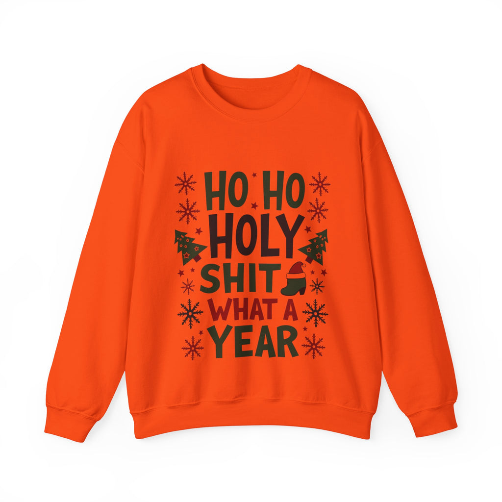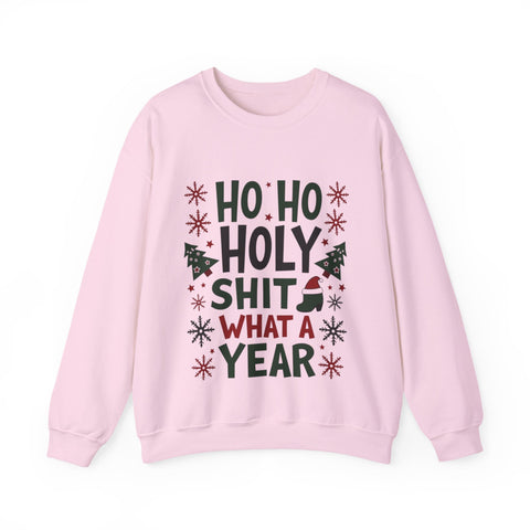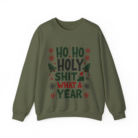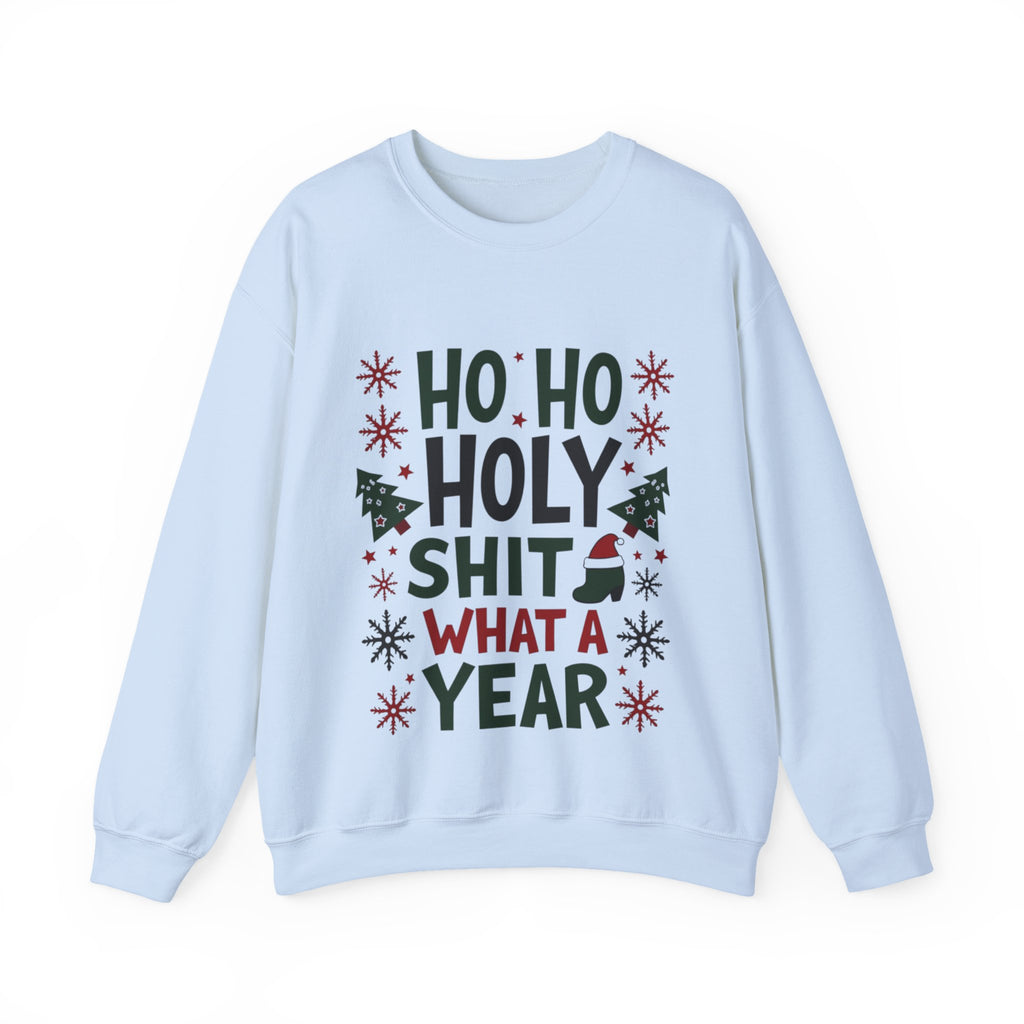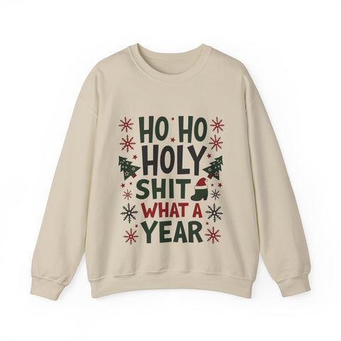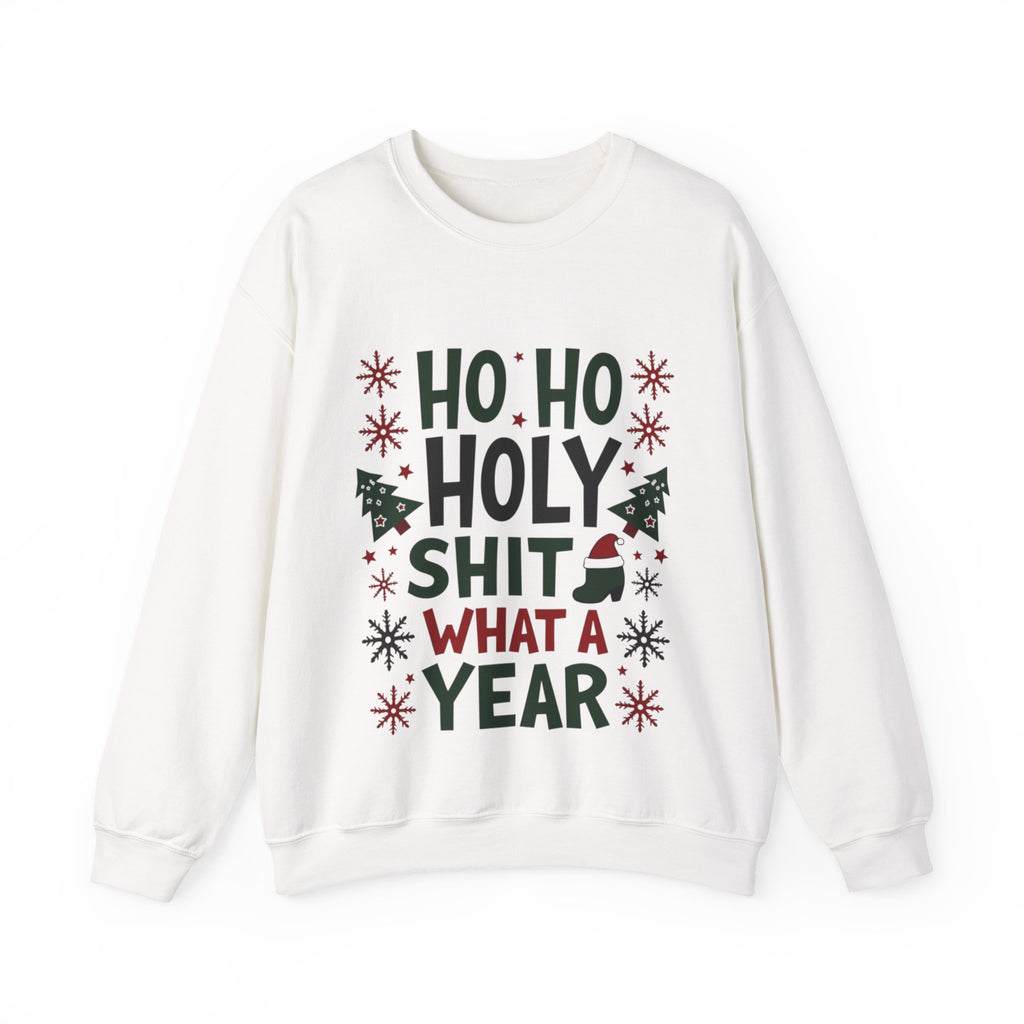 Sleigh the holiday chaos with our "Ho Ho Holy Sh*t What a Year" Christmas Sweatshirt! This bold, laugh-out-loud pullover is for anyone who’s survived the wild rollercoaster of the past 12 months and still has the energy to deck the halls. Featuring a cheeky tagline in festive print surrounded by jolly elements and slightly unhinged Santa vibes, this sweatshirt is your holiday must-have. Made from a super-soft, high-quality cotton-poly blend, it’s perfect for sipping hot cocoa by the fire, dodging awkward family questions, or rocking the virtual holiday party with style. This unisex crewneck (sizes S-3XL) hugs you like a warm Christmas cookie but screams, “I’ve earned this eggnog!” It’s the ultimate gift for your work-from-home warrior, your snarky bestie, or yourself - because, let’s be real, you deserve it. Grab yours now and wear the year’s chaos like a badge of honor! Ho Ho Holy Moly, let’s make this Christmas epic!