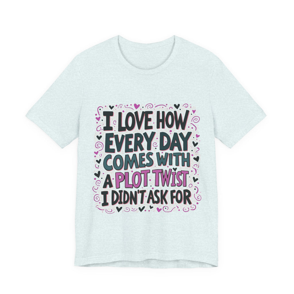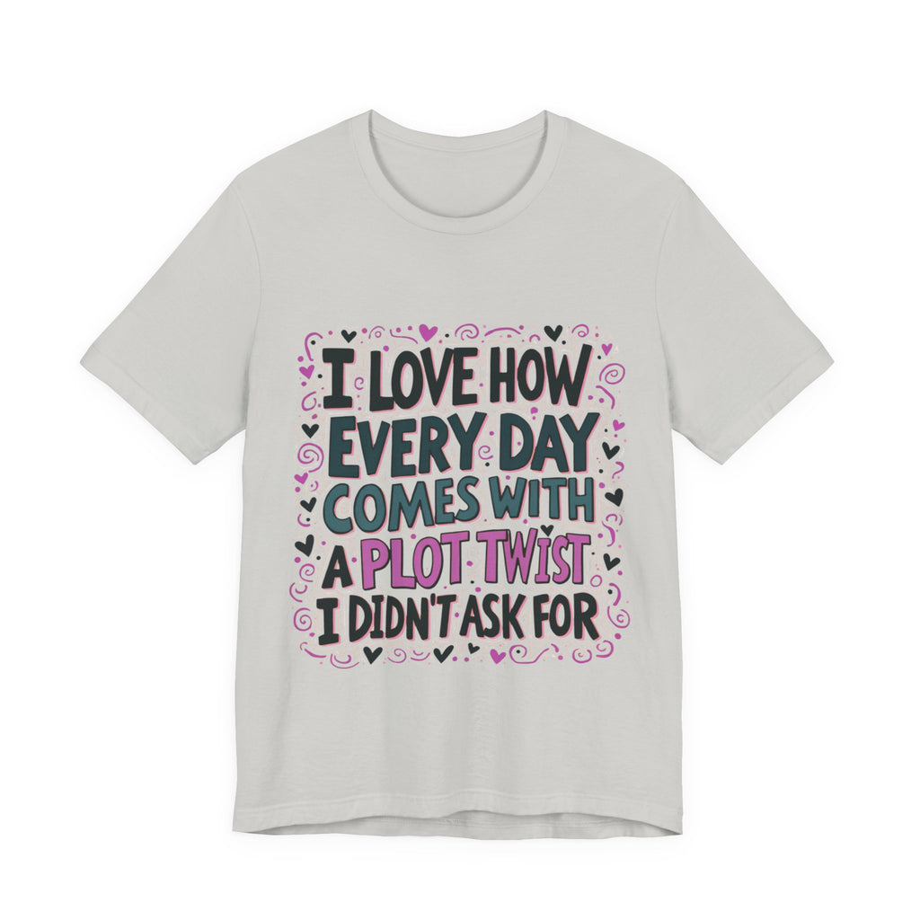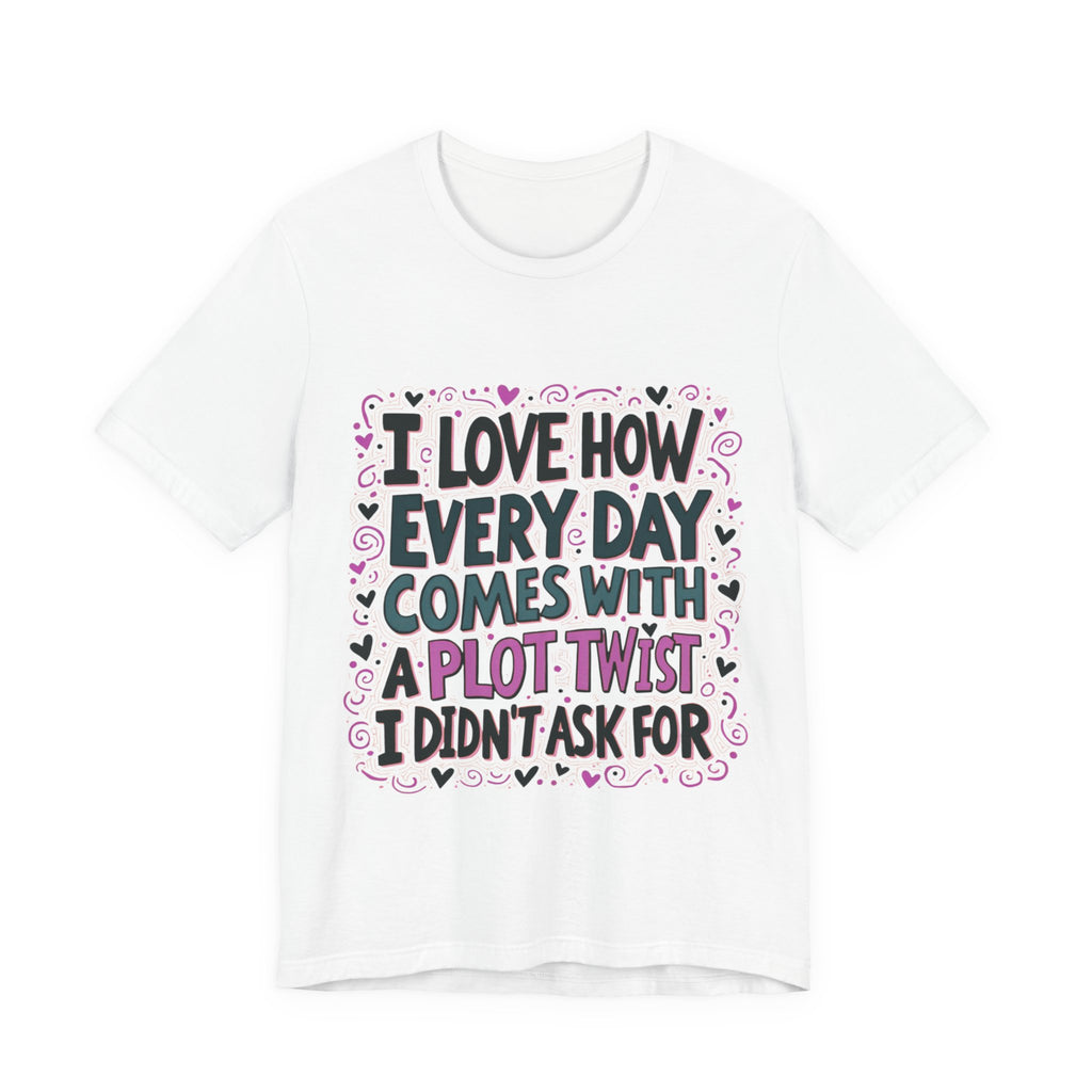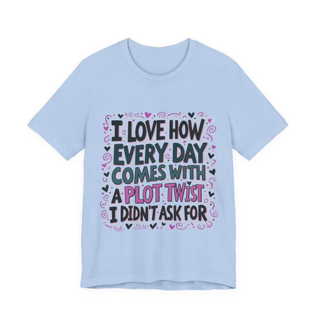 Brace yourself for life’s wild script with our "I Love How Every Day Comes With a Plot Twist I Didn’t Ask For" T-Shirt! This tee is a sweet middle finger to the universe’s chaos, decked out with playful hearts and nostalgic elements that scream, “I’m thriving, but also, why is my life a soap opera?”. The snarky text is your sarcastic love letter to those days when your coffee spills, your Wi-Fi dies, and your cat decides it’s auditioning for Villain of the Year. Crafted from whisper-soft, breezy airlume cotton, this shirt is as light and airy as your dreams of a drama-free day (lol, good luck). The adorable design paired with the biting wit makes it perfect for strutting through brunches, dodging curveballs at work, or just lounging while you roll your eyes at life’s latest plot twist. It’s comfy, it’s cute, and it’s got just enough sass to keep the bad vibes at bay. Don’t just survive the plot twists - wear them with style! Click “Add to Cart” and let this tee be your sarcastic sidekick for life’s wild ride. 💖