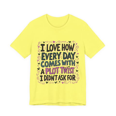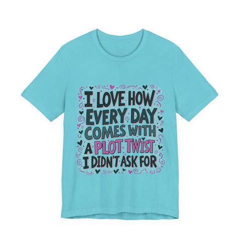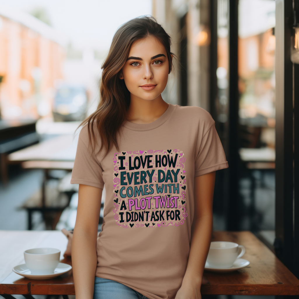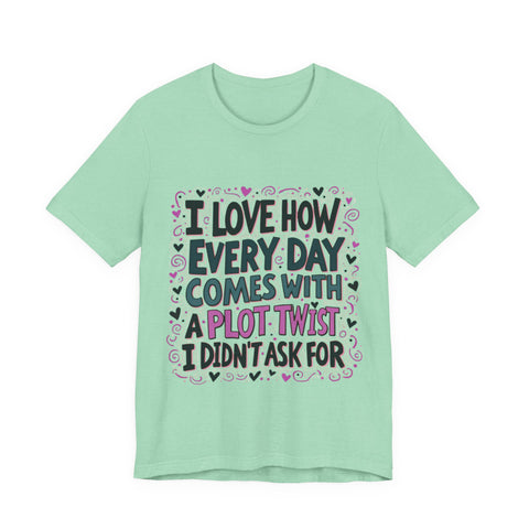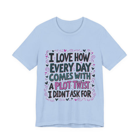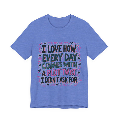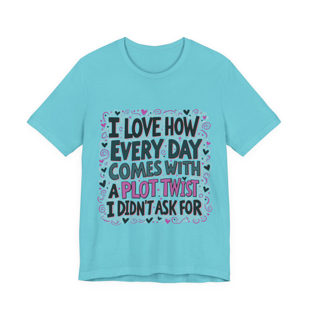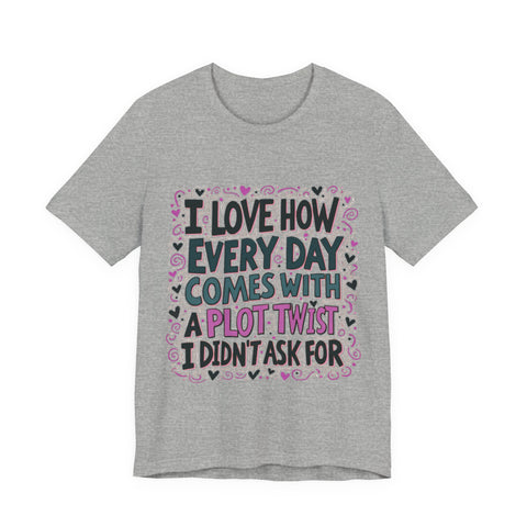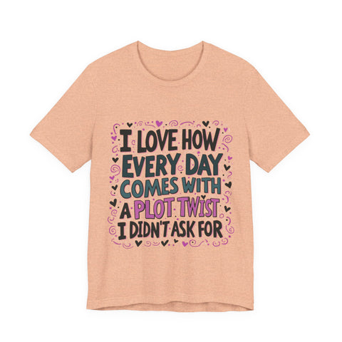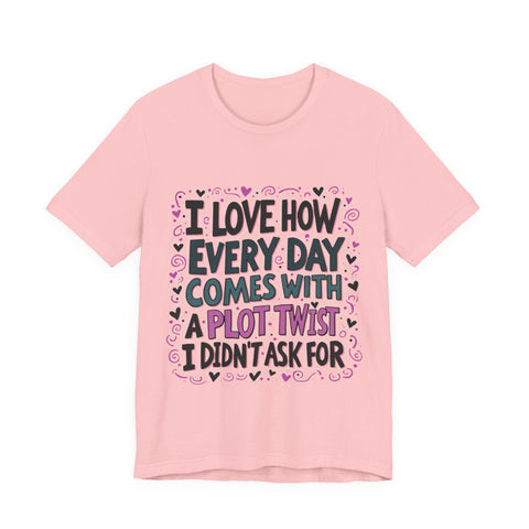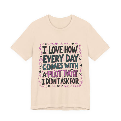 Brace yourself for life’s wild script with our "I Love How Every Day Comes With a Plot Twist I Didn’t Ask For" T-Shirt! This tee is a sweet middle finger to the universe’s chaos, decked out with playful hearts and nostalgic elements that scream, “I’m thriving, but also, why is my life a soap opera?”. The snarky text is your sarcastic love letter to those days when your coffee spills, your Wi-Fi dies, and your cat decides it’s auditioning for Villain of the Year. Crafted from whisper-soft, breezy airlume cotton, this shirt is as light and airy as your dreams of a drama-free day (lol, good luck). The adorable design paired with the biting wit makes it perfect for strutting through brunches, dodging curveballs at work, or just lounging while you roll your eyes at life’s latest plot twist. It’s comfy, it’s cute, and it’s got just enough sass to keep the bad vibes at bay. Don’t just survive the plot twists - wear them with style! Click “Add to Cart” and let this tee be your sarcastic sidekick for life’s wild ride. 💖