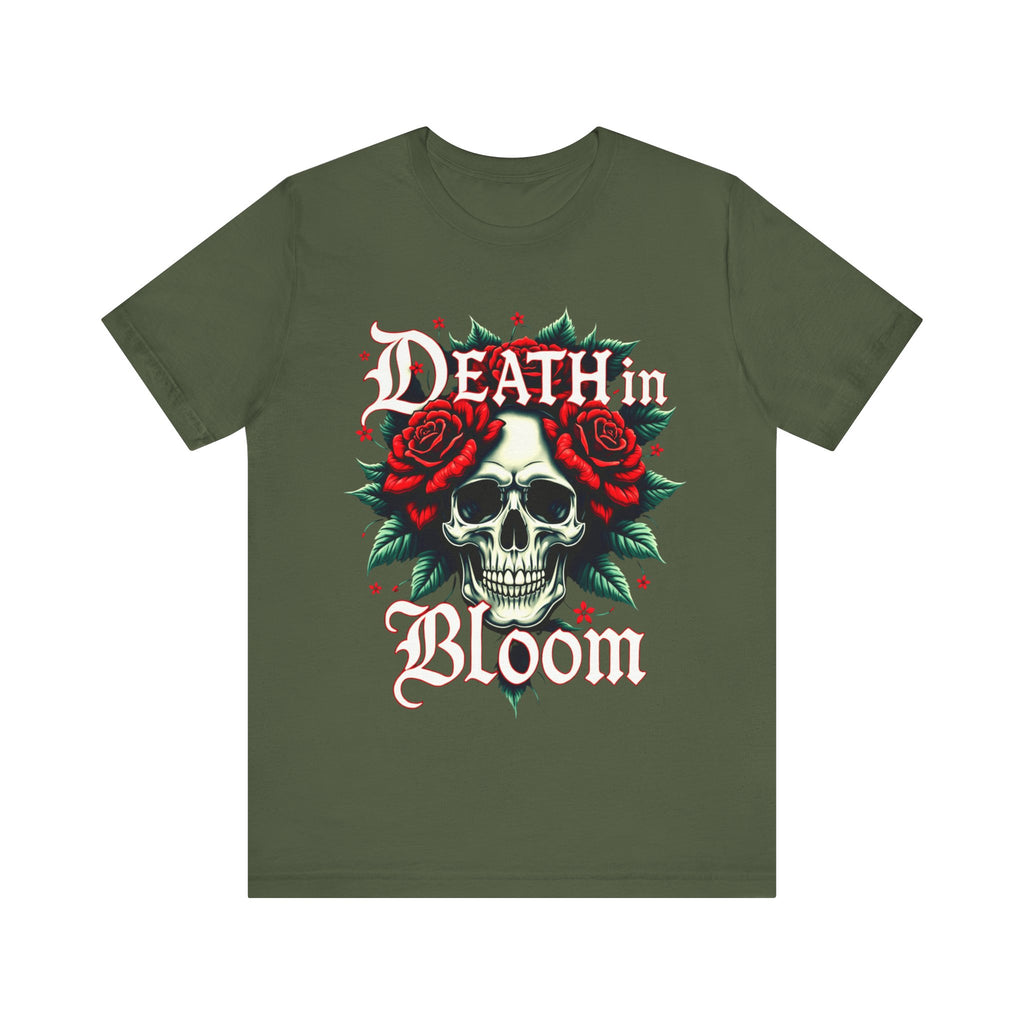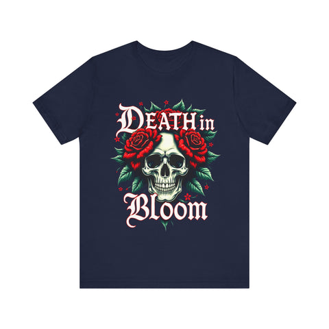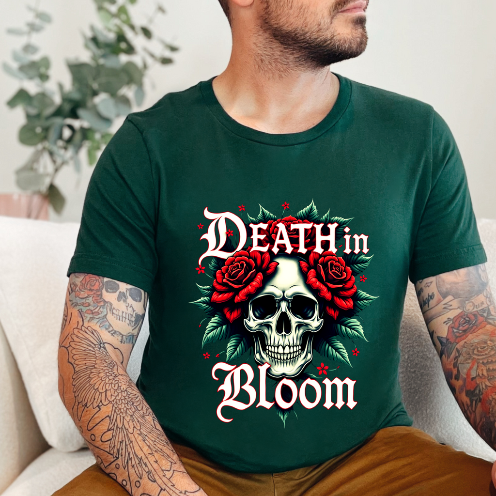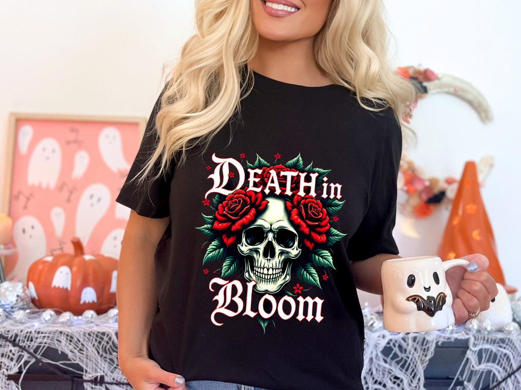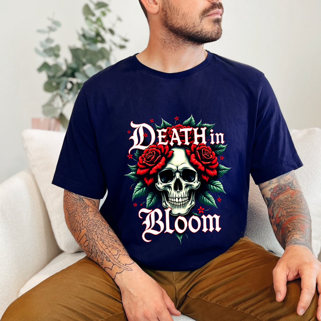 Seduce the shadows with our Death in Bloom Skull & Floral T-Shirt! This bewitching tee fuses a hauntingly chic skull centerpiece with a tiny cascade of lush flowers, entwined in a dance of dark romance. The sultry caption "Death in Bloom" in an elegant, gothic font adds a provocative edge, making this shirt the ultimate blend of spooky allure and floral finesse. Perfect for Halloween parties, late-night adventures, or whenever you want to cast a spell with your style. Crafted from buttery-soft, premium cotton, this unisex t-shirt drapes beautifully across all sizes (S–3XL), offering a flattering, comfortable fit that’s as enchanting as it is effortless. The vivid, durable print ensures every petal stays strikingly bold, even after countless wears and washes. Slip into this captivating tee and let your style bloom with a touch of the forbidden. Don’t just wear it - own the night! Add this spellbinding piece to your wardrobe now and let the world fall under your eerie, irresistible charm. 💀🌹