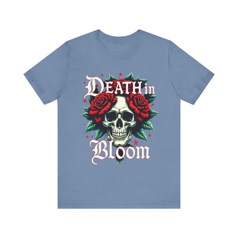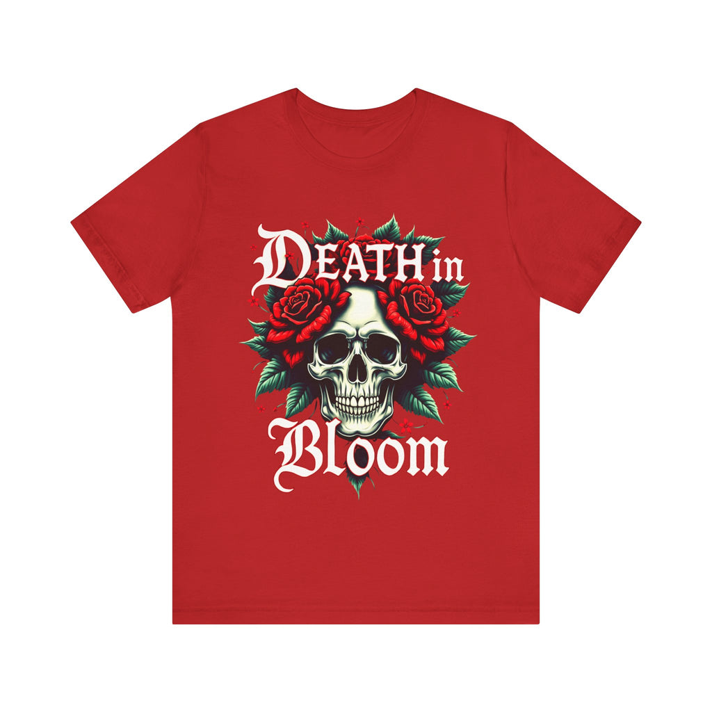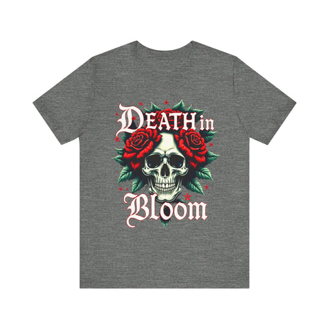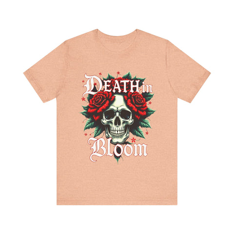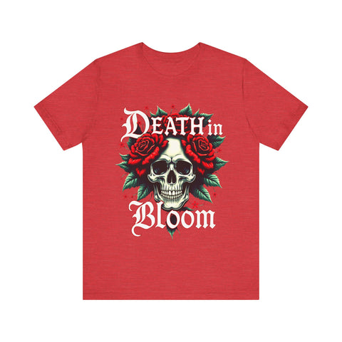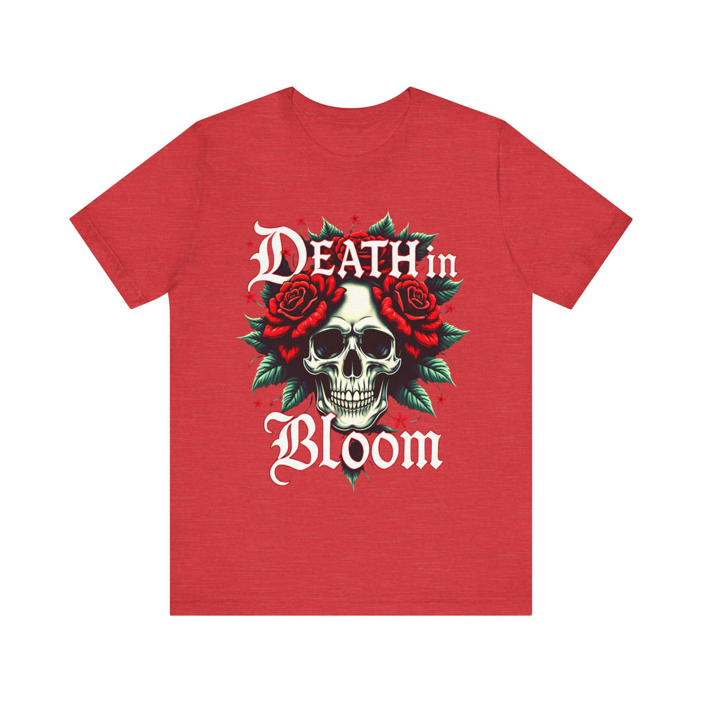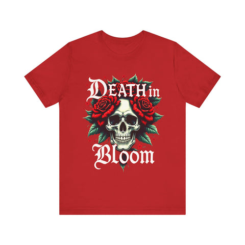 Seduce the shadows with our Death in Bloom Skull & Floral T-Shirt! This bewitching tee fuses a hauntingly chic skull centerpiece with a tiny cascade of lush flowers, entwined in a dance of dark romance. The sultry caption "Death in Bloom" in an elegant, gothic font adds a provocative edge, making this shirt the ultimate blend of spooky allure and floral finesse. Perfect for Halloween parties, late-night adventures, or whenever you want to cast a spell with your style. Crafted from buttery-soft, premium cotton, this unisex t-shirt drapes beautifully across all sizes (S–3XL), offering a flattering, comfortable fit that’s as enchanting as it is effortless. The vivid, durable print ensures every petal stays strikingly bold, even after countless wears and washes. Slip into this captivating tee and let your style bloom with a touch of the forbidden. Don’t just wear it - own the night! Add this spellbinding piece to your wardrobe now and let the world fall under your eerie, irresistible charm. 💀🌹