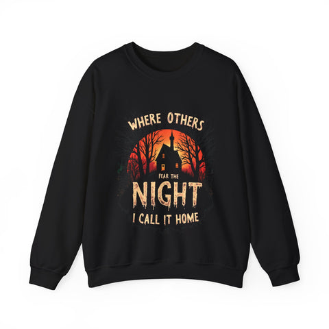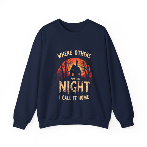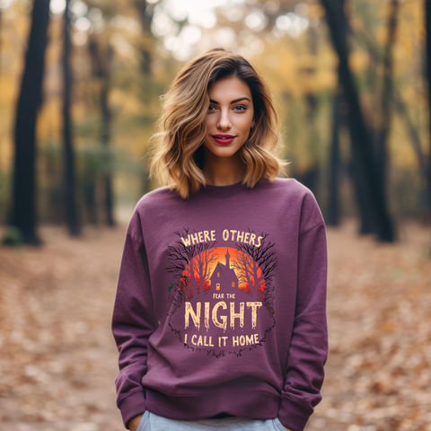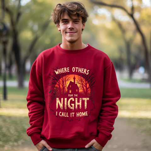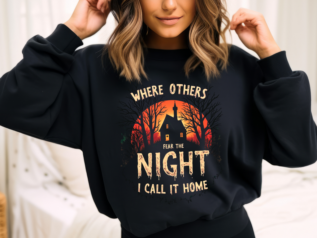 Embrace the shadows with this spooktacularly awesome sweatshirt featuring a creepy, haunted-looking house under a moonlit sky, paired with a wickedly creepy font. This sweater is your ticket to owning the night with a playful, eerie vibe that’s perfect for those who thrive in the dark. Crafted from a deliciously soft cotton-poly blend, this sweatshirt is your go-to for late-night adventures, Halloween parties, or just chilling with your inner ghoul. The spooky house and bold text will have everyone bewitched, wondering if you’re secretly a night creature with a flair for the dramatic. These sweatshirts are vanishing faster than a ghost at dawn—don’t miss out! Perfect for goths, night owls, and anyone who feels at home under the stars. This sweater is your key to ruling the night. Slam that “Add to Cart” button before it’s spirited away forever!