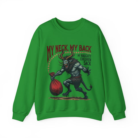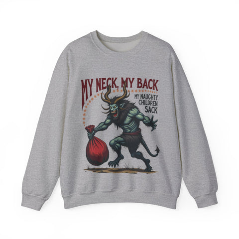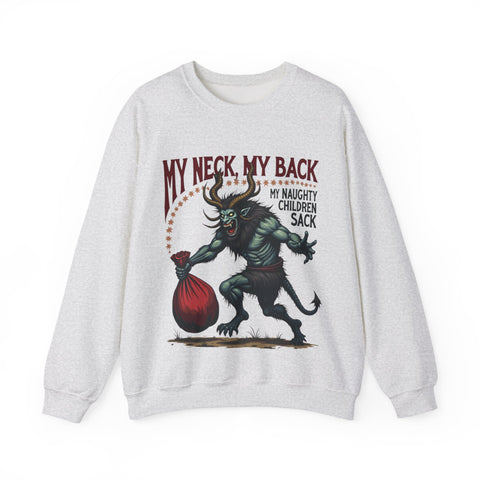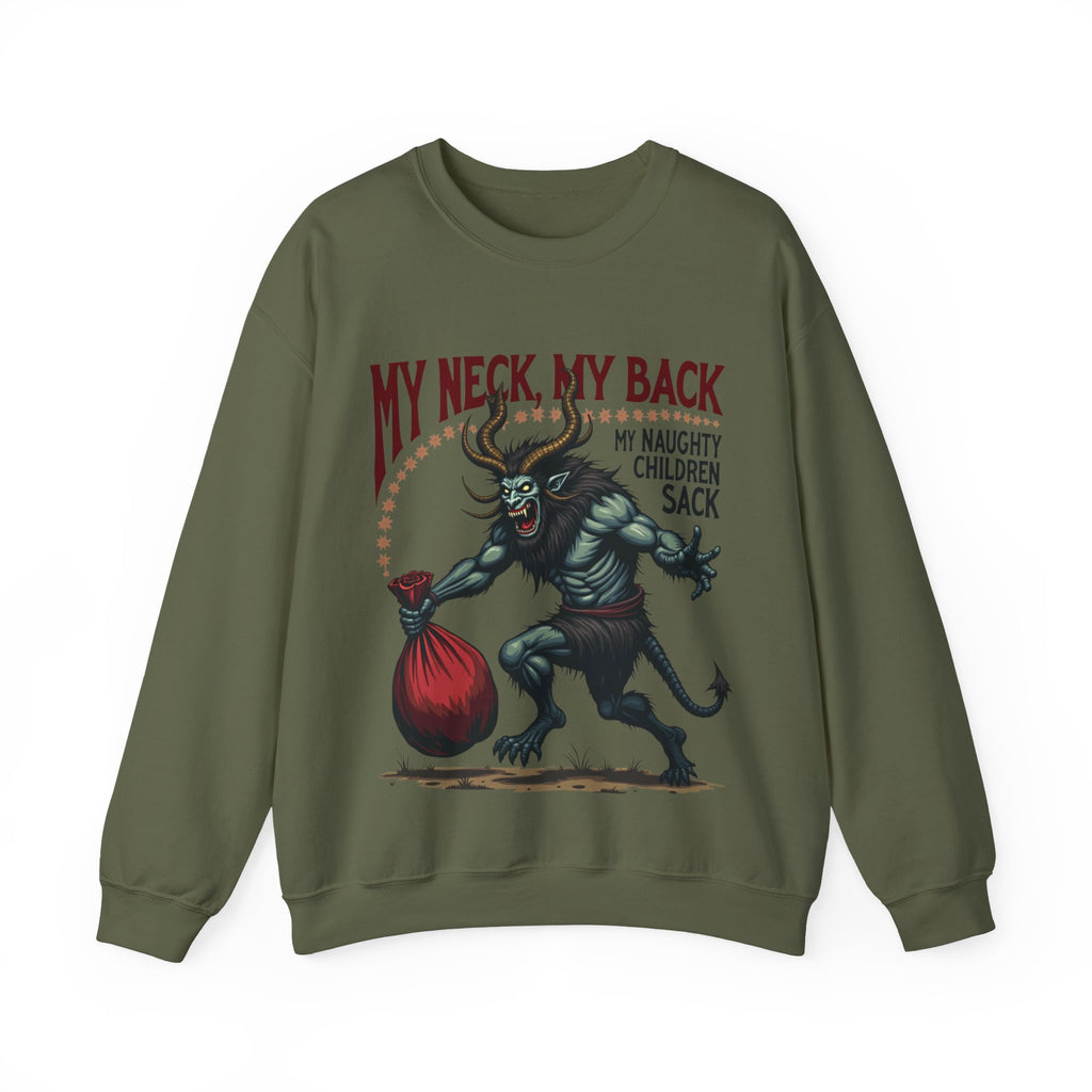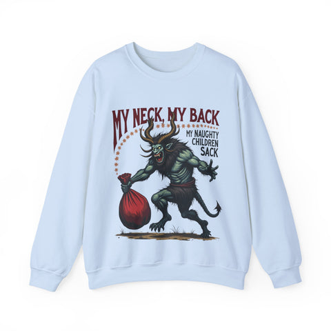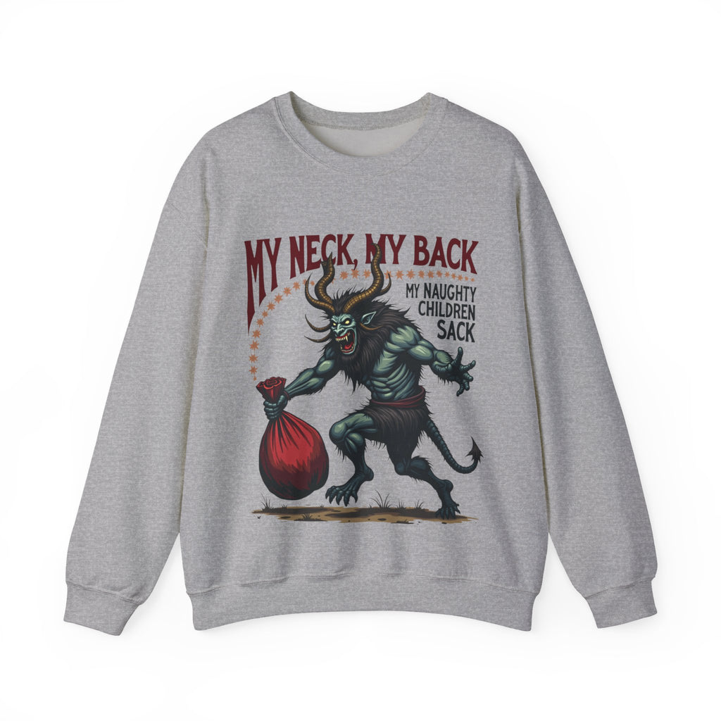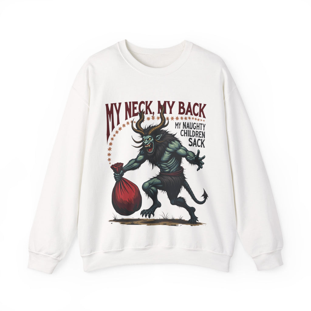Get ready to jingle all the way to the naughty list with this hilariously wicked Christmas sweater! Featuring a devilishly haunting Krampus dragging a sack stuffed with mischief-makers and the bold sarcastic phrase "My Neck, My Back, My Naughty Children Sack", this sweatshirt is your ticket to holiday hilarity. Perfect for sipping hot cocoa with a side of shade or strutting into that Christmas party like the bad elf you are. Soft, breezy, and packed with sass, this crewneck is ready to sleigh the season. It’s Krampus-approved chaos that screams “I’m here for the holiday drama!”. Don’t let this Krampus gem get dragged away! Wear it, flaunt it, and let the holiday shenanigans begin. 😈🎅