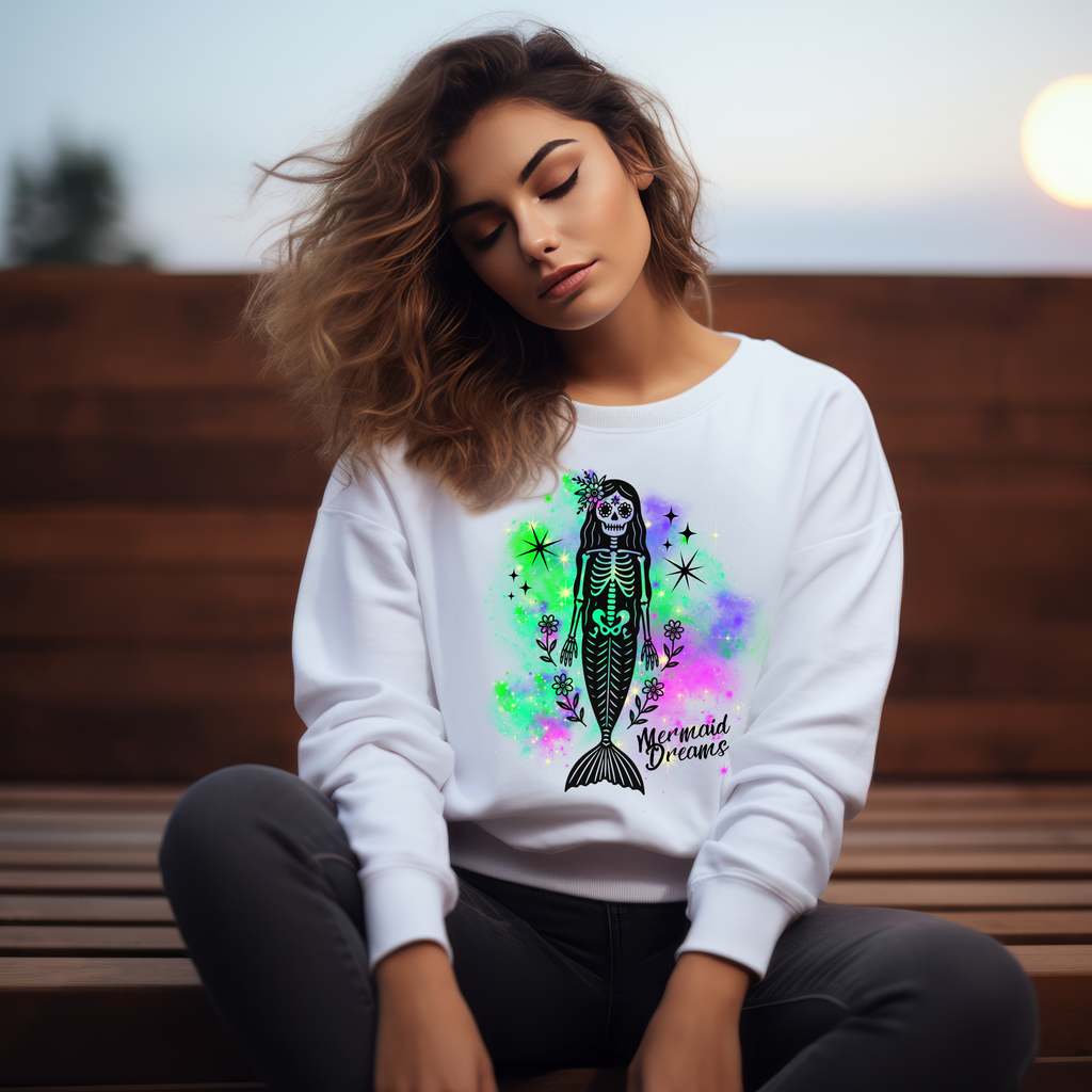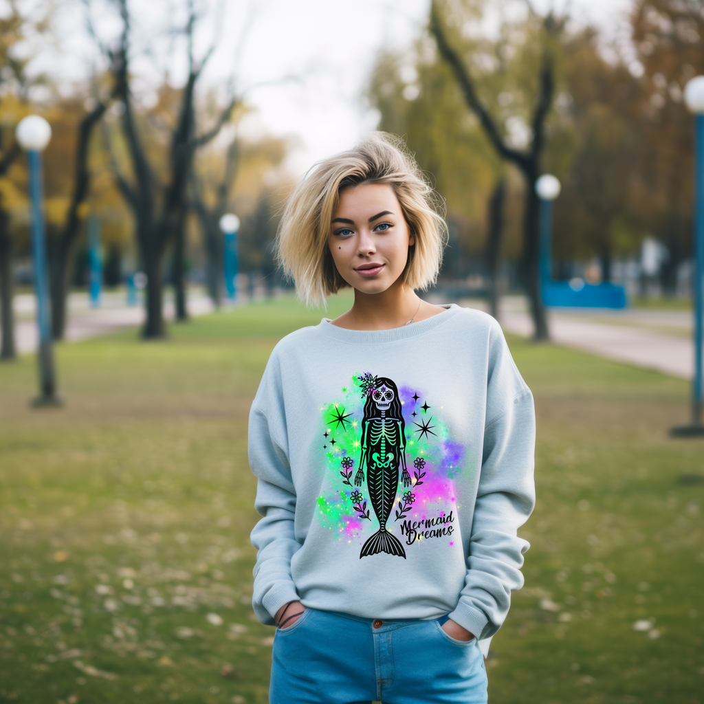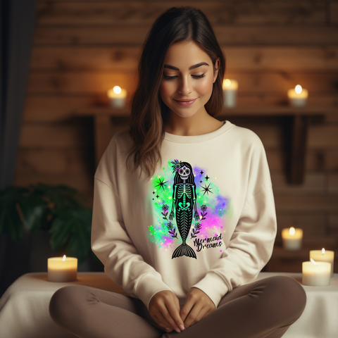 Dive into beachy bliss with our Mermaid Dreams Sweatshirt! This cozy, ocean-inspired gem is your ticket to channeling mermaid magic wherever you roam. Crafted from ultra-soft, snuggly cotton-blend fabric, it’s like wrapping yourself in a warm coastal breeze. The vibrant design sparkles with whimsical mermaid scales, shimmering waves, and a pop of ethereal charm - perfect for flaunting those laid-back, sandy-toe vibes. Whether you’re strolling the shore, sipping iced coffee by the boardwalk, or dreaming of underwater adventures, this sweatshirt screams summer fun with a playful twist. Its relaxed fit and ribbed cuffs keep you comfy for bonfire nights or impromptu beach picnics. Grab yours now and let your inner mermaid shine - because life’s better with a splash of sparkle! 🧜♀️✨