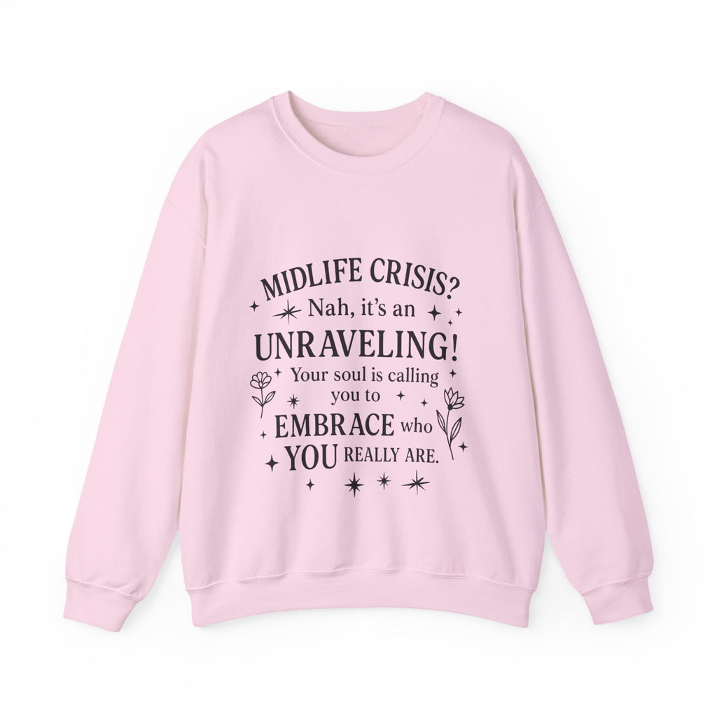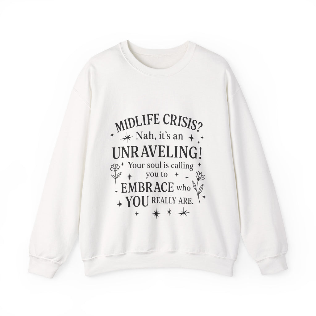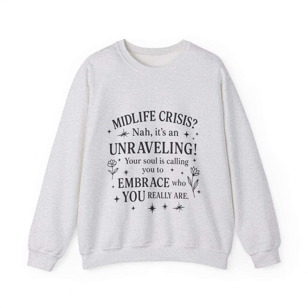Listen up, you fabulous soul-searcher, the Midlife Crisis Sweatshirt is here to sass up your self-discovery journey! Rocking a bold, cheeky quote about unraveling your midlife crisis with style, this sweater screams, “I’m figuring it out, and I’m owning it!”. Think cozy vibes with a side of fierce motivation, wrapped in a soft, snuggly fit that’s perfect for coffee runs or late-night epiphanies. This isn’t just a sweatshirt - it’s your personal cheerleader for embracing the chaos and shining through. Get ready to slay your reinvention, but act fast - this gem’s too epic to stick around! 😜 Grab it now and unravel your awesome! This stylish and cozy sweater is perfect for those chilly days when you want to feel comfortable yet fashionable. Each piece radiates warmth and self-acceptance, making it an ideal addition to your wardrobe. Whether you're lounging at home, catching up with friends, or enjoying a casual outing, this sweatshirt brings a laid-back vibe that enhances any outfit. It's an excellent gift for individuals going through life changes, celebrating birthdays, or simply seeking comfort. Perfect for holidays like Christmas, cozy get-togethers, or self-care days, this sweatshirt encourages you to be your true self.