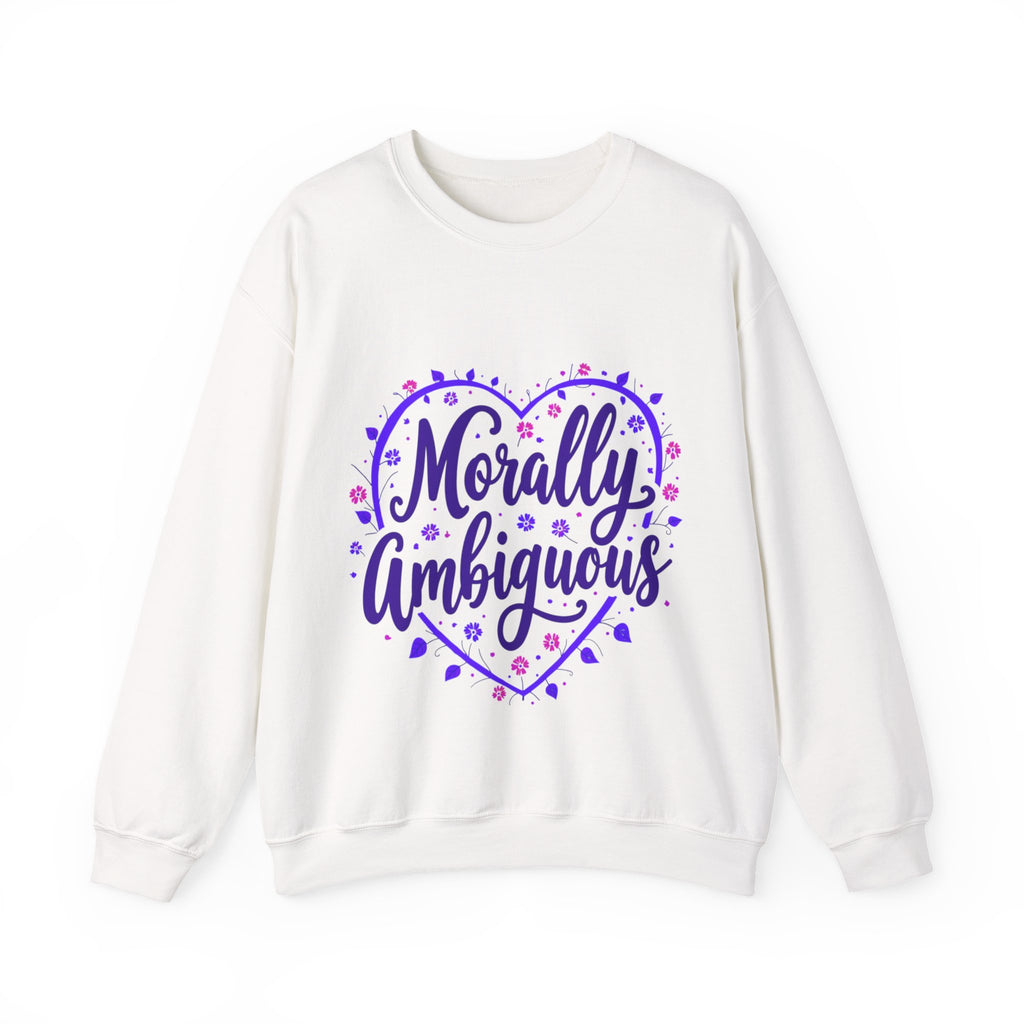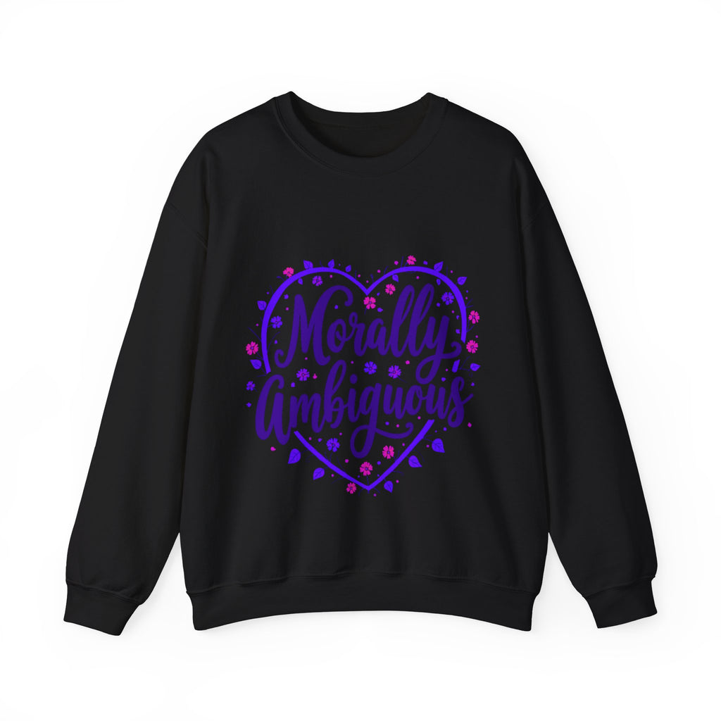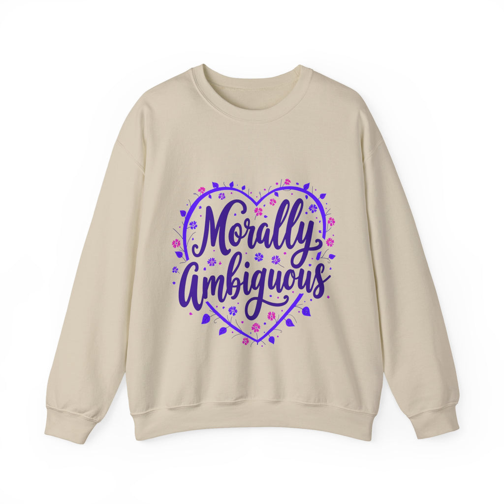 Wink at the world with our Morally Ambiguous Heart & Boho Floral Sweatshirt! This sassy crewneck flaunts a bold, beating heart wrapped in a dreamy boho floral pattern, dripping with charm and just a hint of mischief. The cheeky caption "Morally Ambiguous" in a playful, handwritten font adds a flirty, sarcastic edge that says, "I’m sweet, but I keep ‘em guessing". Perfect for strutting through brunches, late-night hangs, or any moment you want to serve looks with a side of attitude. Made from a soft, high-quality cotton-poly blend, this unisex pullover offers a relaxed, flattering fit for all sizes (S–3XL), keeping you comfy while you slay. The vibrant, durable print ensures your heart and flowers stay as bold as your vibe, wash after wash. Add it to your cart and wear your moral ambiguity with pride. 😘🌸