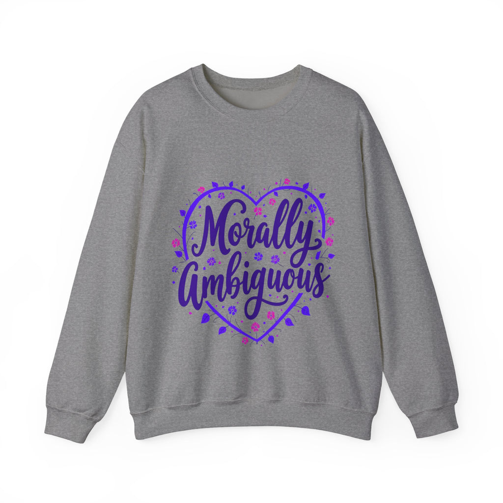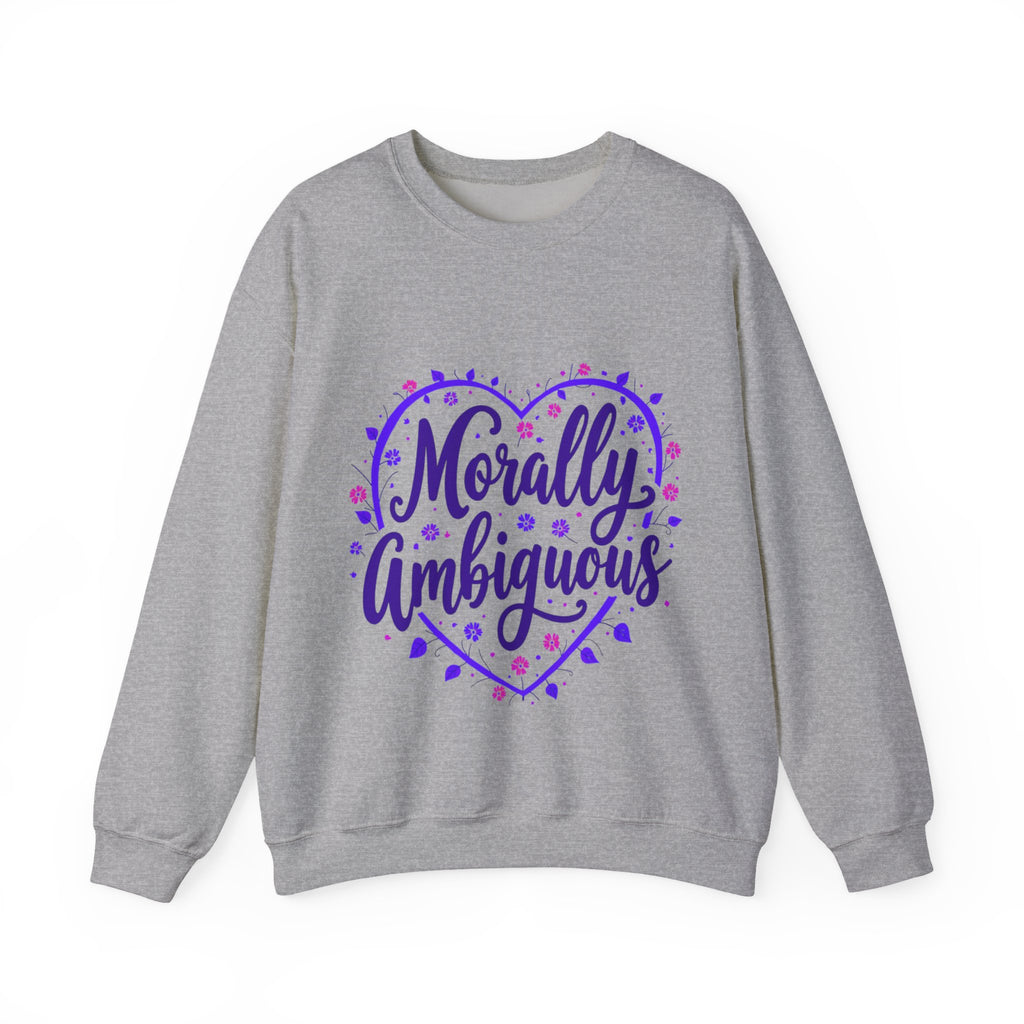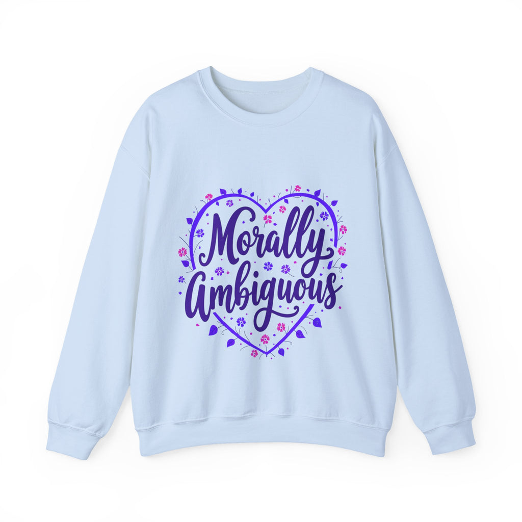 Wink at the world with our Morally Ambiguous Heart & Boho Floral Sweatshirt! This sassy crewneck flaunts a bold, beating heart wrapped in a dreamy boho floral pattern, dripping with charm and just a hint of mischief. The cheeky caption "Morally Ambiguous" in a playful, handwritten font adds a flirty, sarcastic edge that says, "I’m sweet, but I keep ‘em guessing". Perfect for strutting through brunches, late-night hangs, or any moment you want to serve looks with a side of attitude. Made from a soft, high-quality cotton-poly blend, this unisex pullover offers a relaxed, flattering fit for all sizes (S–3XL), keeping you comfy while you slay. The vibrant, durable print ensures your heart and flowers stay as bold as your vibe, wash after wash. Add it to your cart and wear your moral ambiguity with pride. 😘🌸
