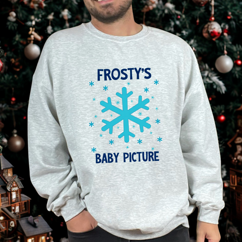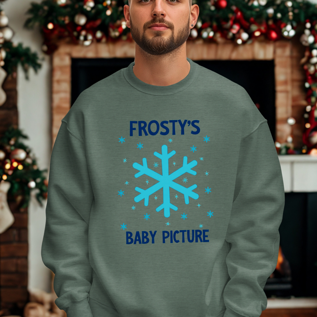 Chill out this holiday season with the cutest Christmas sweater ever! Featuring a delicate, snowflake graphic and the adorable phrase "Frosty's Baby Picture", this shirt captures the frosty magic of everyone’s favorite snowman! Perfect for sipping hot cocoa, building snow forts, or spreading cozy vibes at holiday gatherings. Soft, cozy, and bursting with playful charm, this crewneck is your must-have for a merry, frosty season! Light as falling snow, comfier than a fresh snowbank. So sweet it’ll melt even the iciest holiday grinch. Wear it, love it, and let the snowy sweetness shine. ❄️☃️🎄