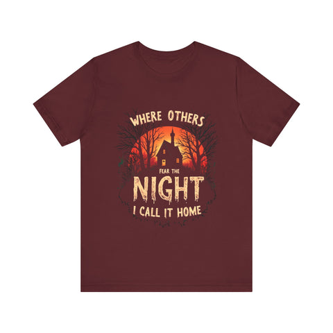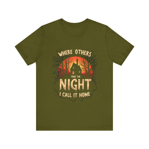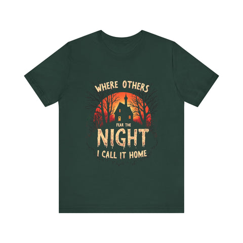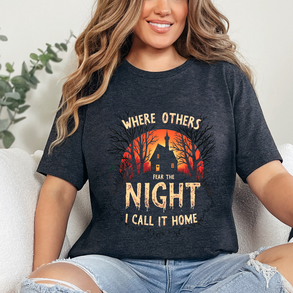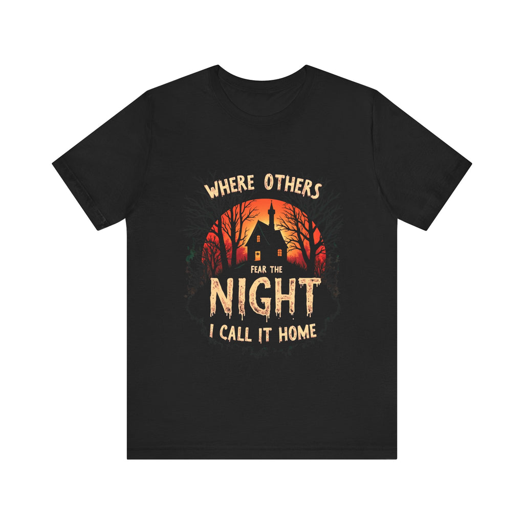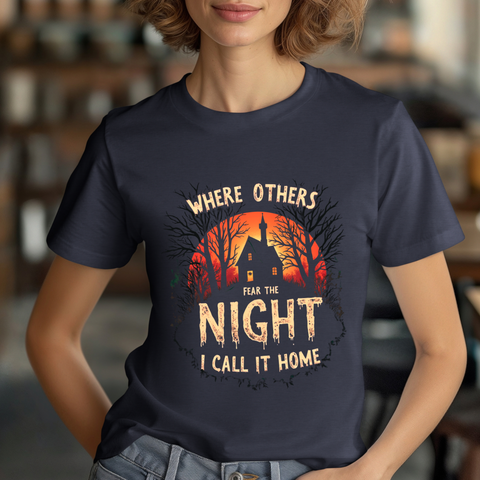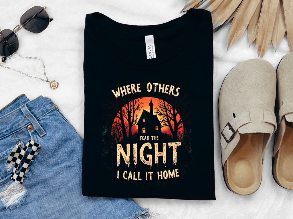 Crafted from deliciously soft Airlume cotton, this shirt is your go-to for late-night adventures, Halloween parties, or just chilling with your inner ghoul. The spooky house and bold text will have everyone bewitched, wondering if you’re secretly a night creature with a flair for the dramatic. These tees are vanishing faster than a ghost at dawn—don’t miss out! Perfect for goths, night owls, and anyone who feels at home under the stars. This t-shirt is your key to ruling the night. Slam that “Add to Cart” button before it’s spirited away forever!