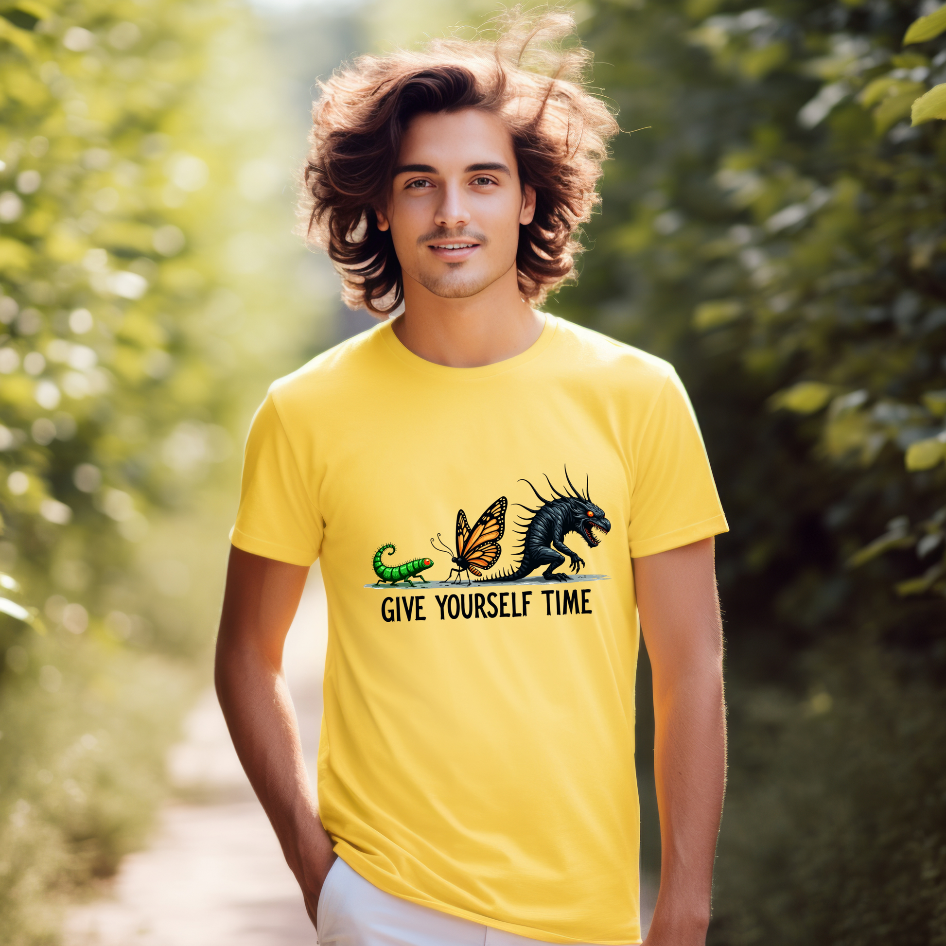 Buckle up for the funny glow-up of the century with our "Give Yourself Time" T-Shirt, featuring a wild transformation saga from a creepy-crawly caterpillar to a fabulous butterfly to a downright terrifying monster! This isn’t just a shirt - it’s a sarcastic salute to life’s chaotic journey, with a side of “I’m still figuring it out, and I’m owning it”. The bold text "Give Yourself Time" is your snarky reminder that growth is messy, and sometimes you go from cocoon to kaiju in the best way possible. Crafted from feather-light, ultra-soft airlume cotton, this tee is as breezy as a butterfly’s wing and as comfy as a monster’s nap in a haunted forest. The hilarious graphic - starring a caterpillar with side-eye, a butterfly with attitude, and a monster who’s clearly done with everyone’s nonsense - makes it perfect for strutting through coffee shops, dodging unsolicited advice, or just chilling with a vibe that says, “I’m a work in progress, and I’m fabulous”. Don’t rush your vibe - give yourself time, but don’t wait to snag this tee! Click “Add to Cart” and wear your transformation with a wink and a roar. 🐛🦋👹