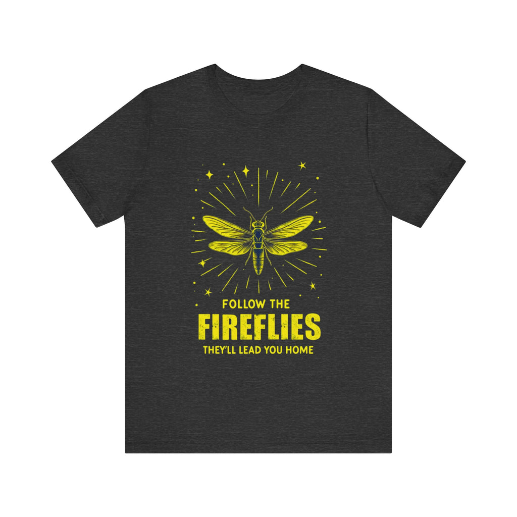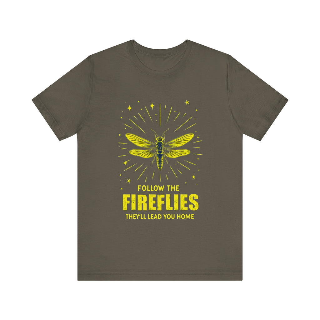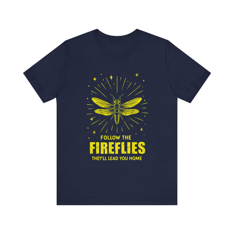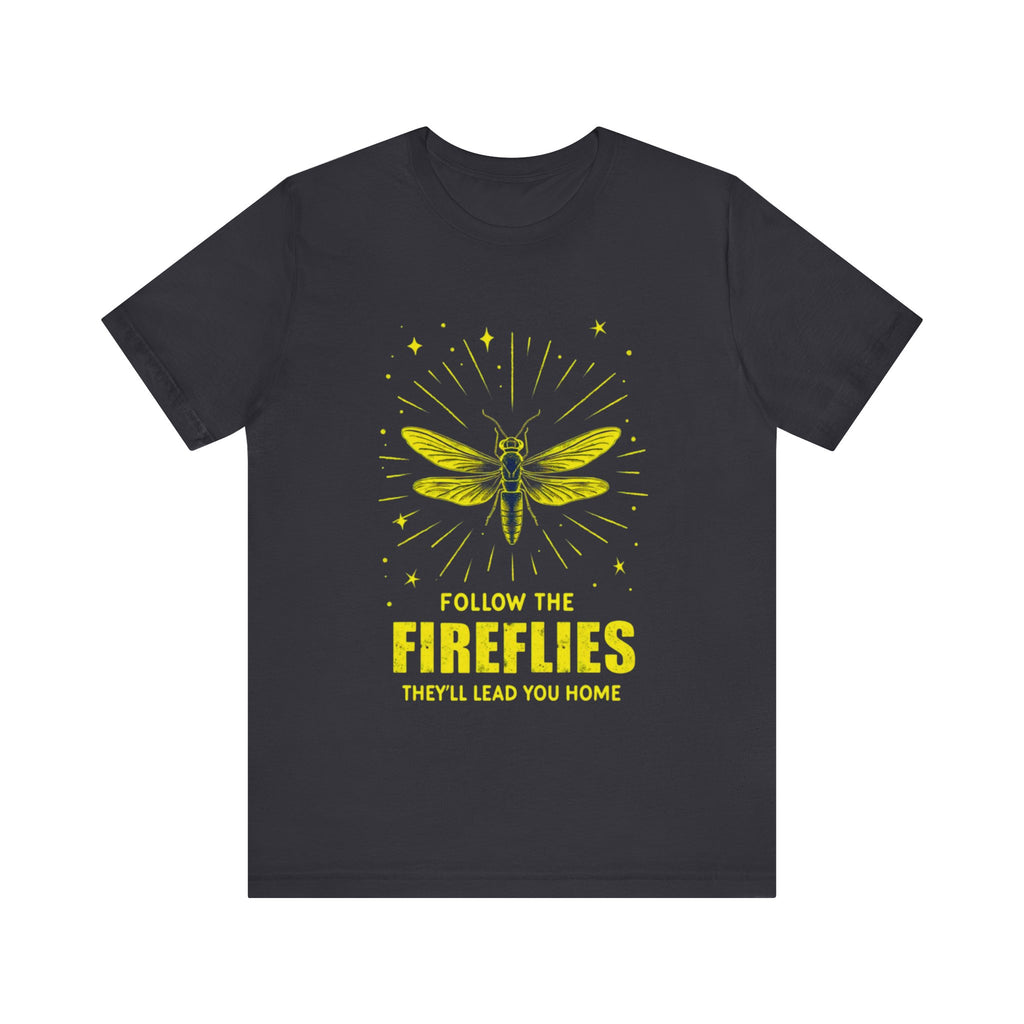 Light up your wardrobe with our Follow the Fireflies T-Shirt! This isn’t just a tee - it’s a vibe, a sassy little beacon for dreamers, wanderers, and anyone who believes magic happens when you chase the glow. Crafted from super-soft, comfy cotton, this shirt feels like a warm summer night and looks like a statement piece that’ll turn heads. Picture this: you’re rocking this tee at a festival, a bonfire, or just strutting through the grocery store (because why not?). The bold, whimsical “Follow the Fireflies” print sparkles with charm, reminding everyone to embrace life’s little adventures. Whether you’re a free spirit or just need a nudge to find your way home, this shirt’s got your back - and your front! Grab yours now and let the fireflies lead you to your next adventure. Trust us, this tee is your new go-to for adding a sprinkle of magic to any day✨. Snag it before it flutters away!