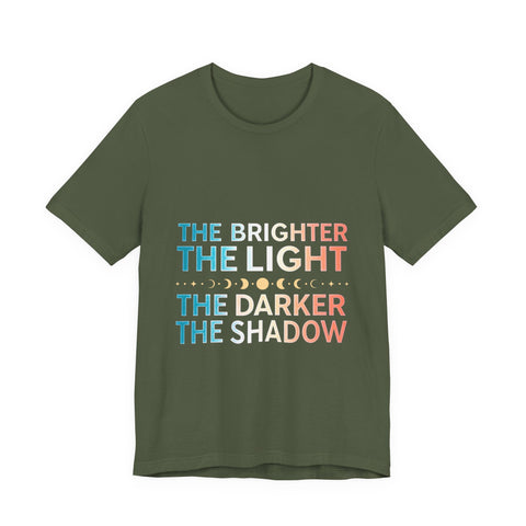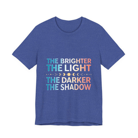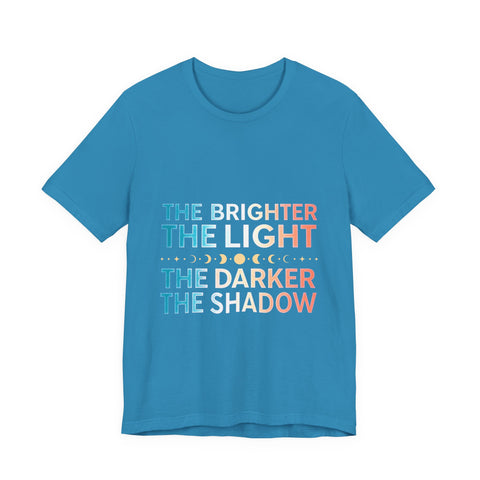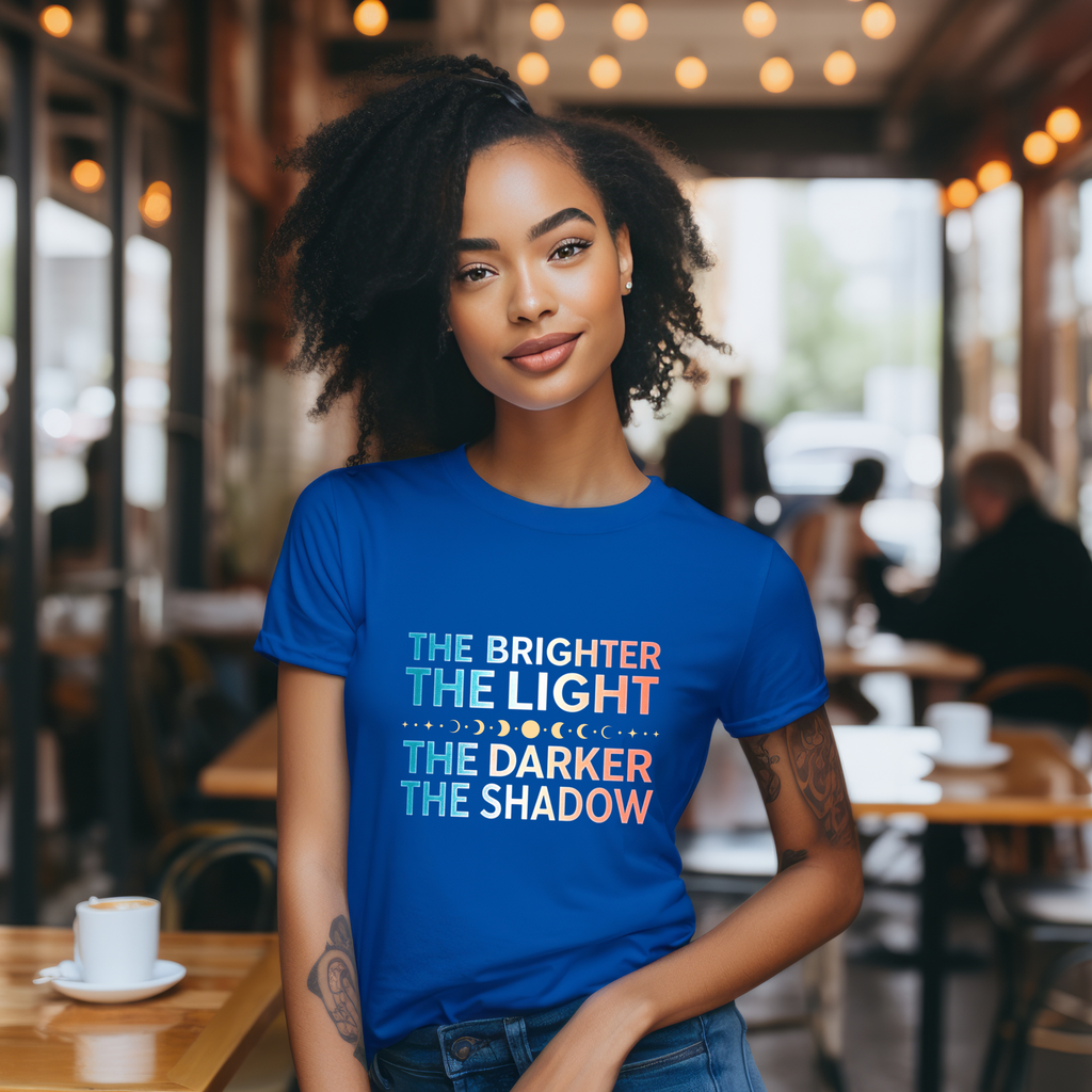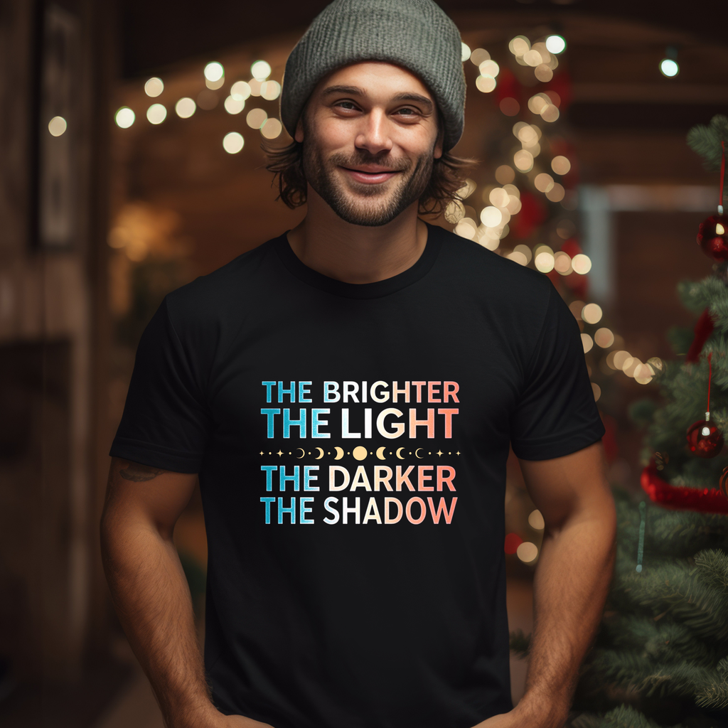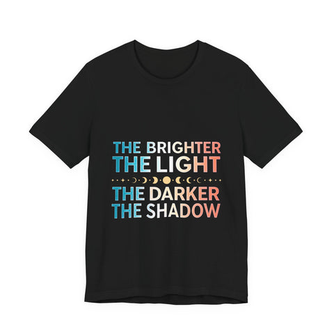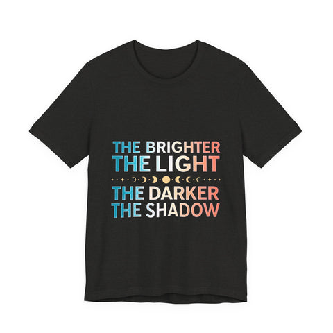 Embrace the mystic dance of light and shadow with our "The Brighter the Light, The Darker the Shadow" T-Shirt, a sultry, cosmic masterpiece that captures the moons’ eternal allure. Adorned with a delicate graphic of the moon’s phases, this tee weaves a whisper spell of lunar enchantment, its evocative text murmuring secrets of balance and duality. It’s a seductive invitation to revel in your inner magic, where every crescent and full moon tells a story of transformation. Crafted from super-soft, breathable airlume cotton, this shirt drapes you in airy comfort, as light as a midnight breeze under a starlit sky. The minimalist moon phase design glows with understated elegance, perfect for late-night rituals, sultry evenings out, or cozy moments channeling your inner empath. This tee is your talisman for embracing both the radiance and the mystery within you. Let the moon guide your style & ignite your magic! Click “Add to Cart” & wear the balance of light & shadow with bewitching grace and guile. 🌙✨