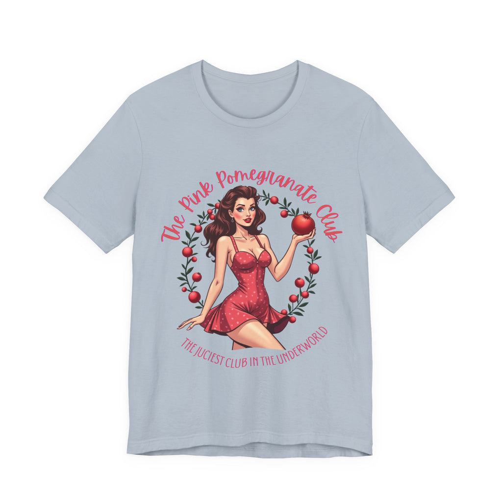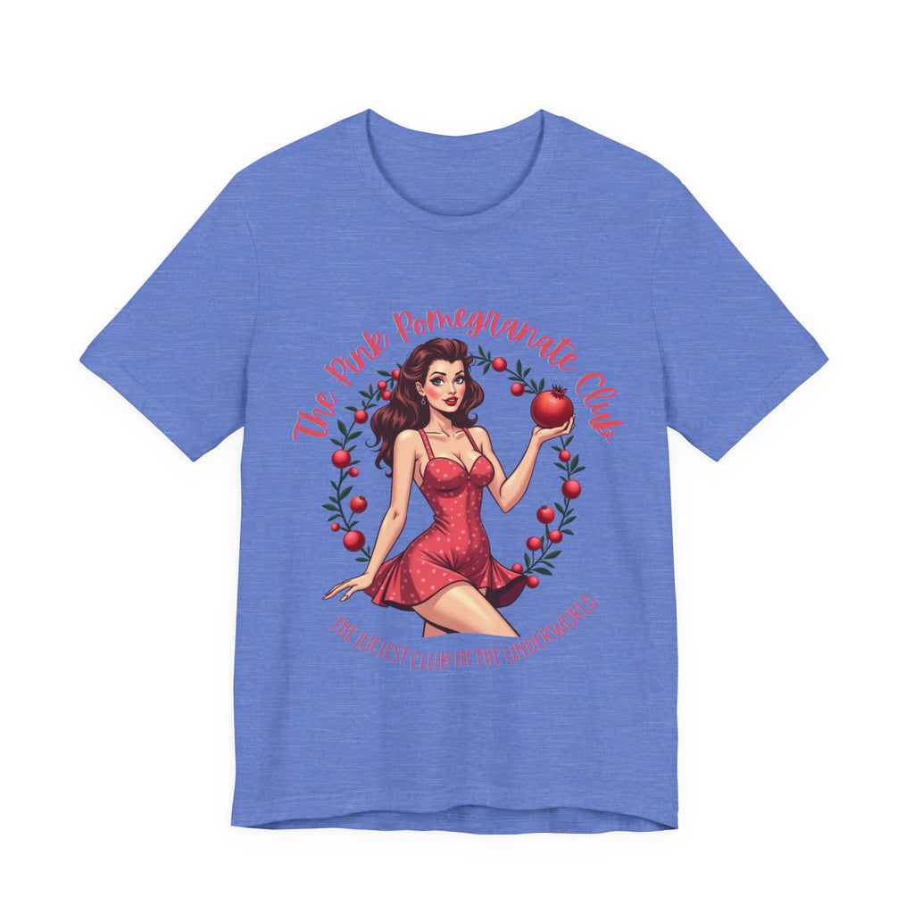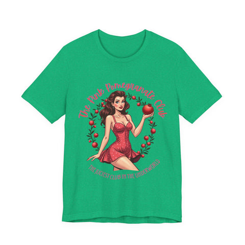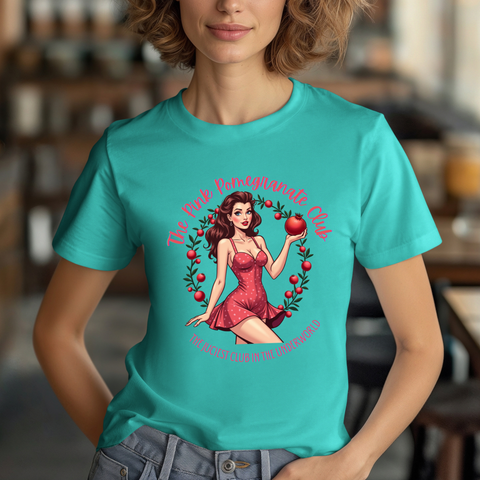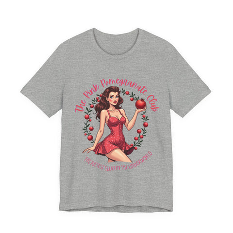 Step into the sultry shadows with our "Pink Pomegranate Club, The Juiciest Club in the Underworld" T-Shirt, where a retro Persephone lounges with a pomegranate so juicy it could tempt the gods themselves. This tee drips with witchy allure, blending vintage vibes with a sassy edge that says, “I’m the queen of the underworld, and my vibe is divine”. The bold text invites you to join the most exclusive club below, where Persephone’s serving looks, attitude, and just a hint of forbidden fruit. Crafted from whisper-light, buttery-soft airlume cotton, this shirt feels like a moonlit breeze in Hades’ realm, draping you in comfort as you channel your inner goddess. The retro-inspired Persephone, with her coy smirk and vibrant pomegranate, pairs perfectly with the sultry, playful text, making it ideal for mystic nights out, cozy tarot sessions, or simply owning the room with your enchanting energy. It’s light, it’s airy, it’s your ticket to the juiciest club in the underworld. Click “Add to Cart” and let this cute tee do the talking. 🍑🌙