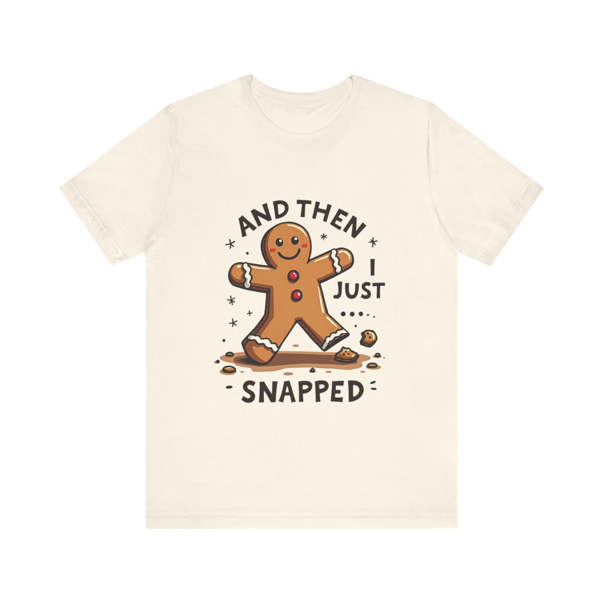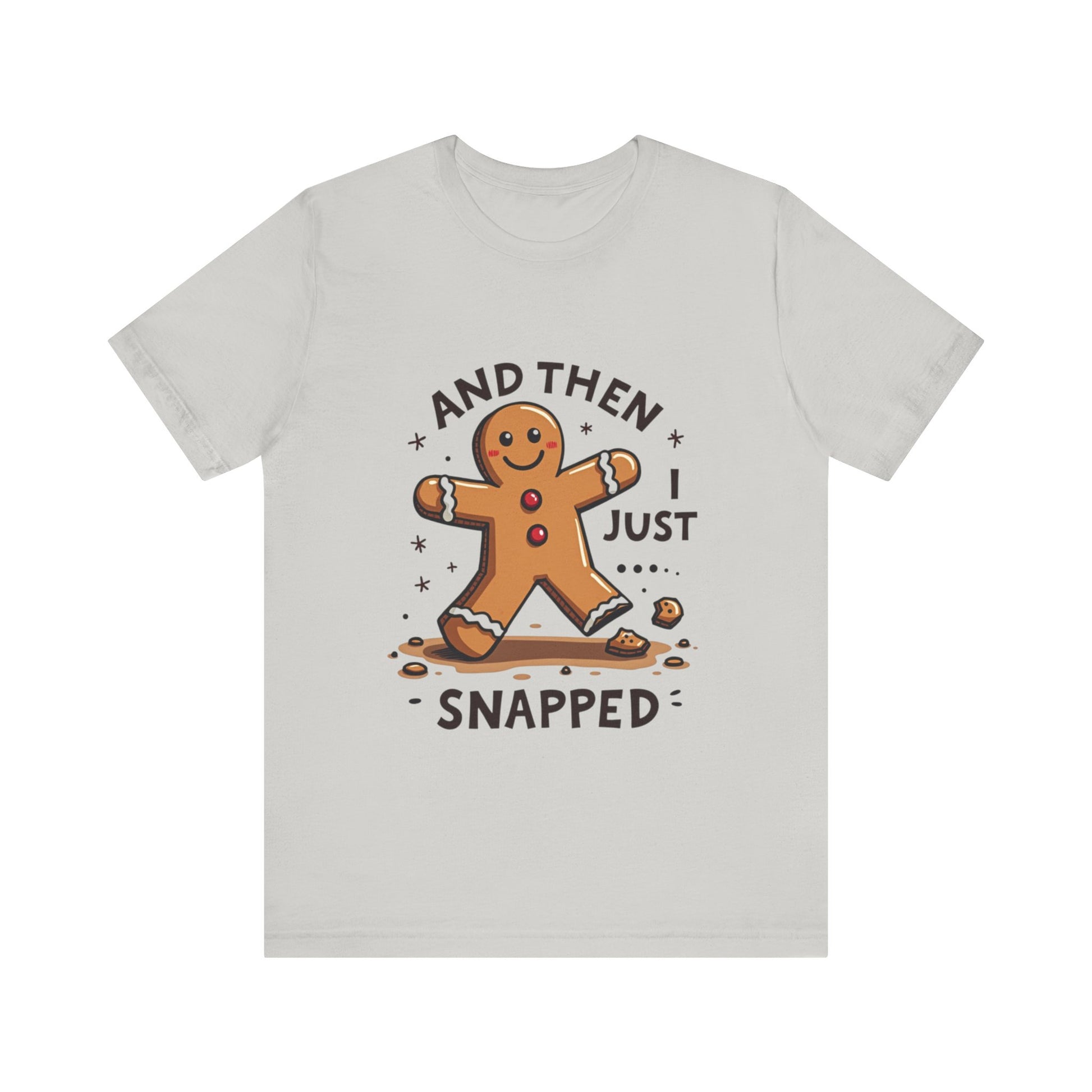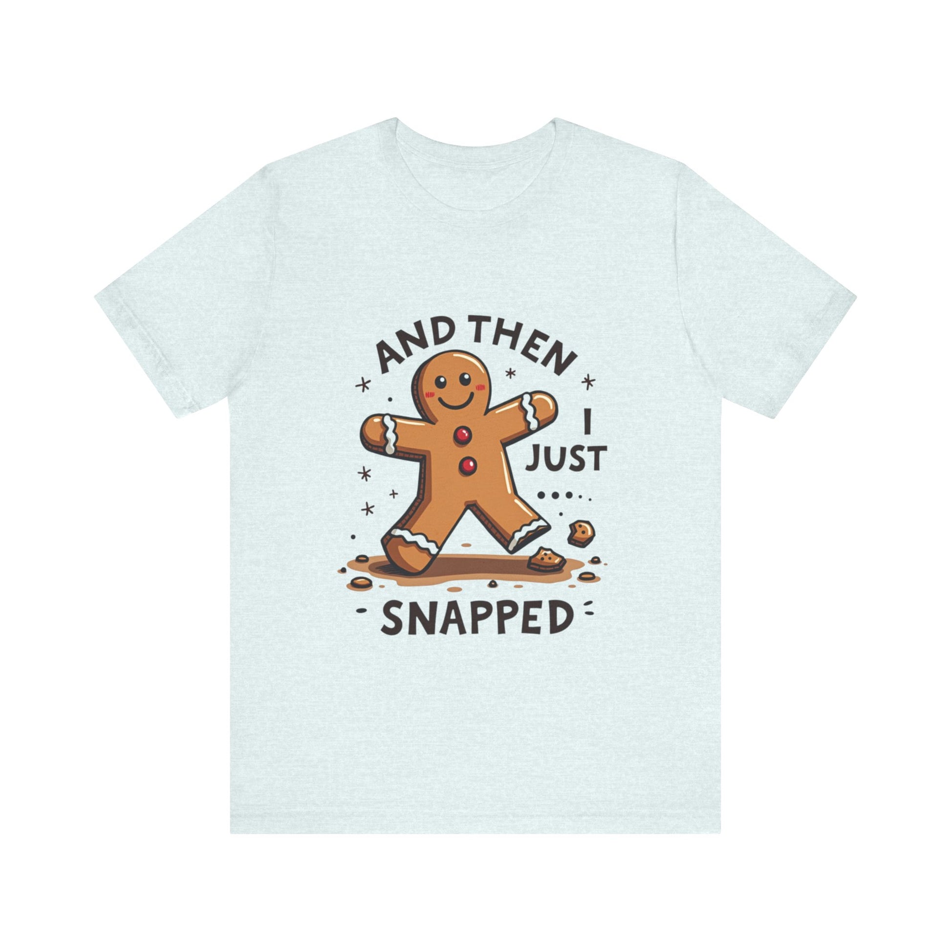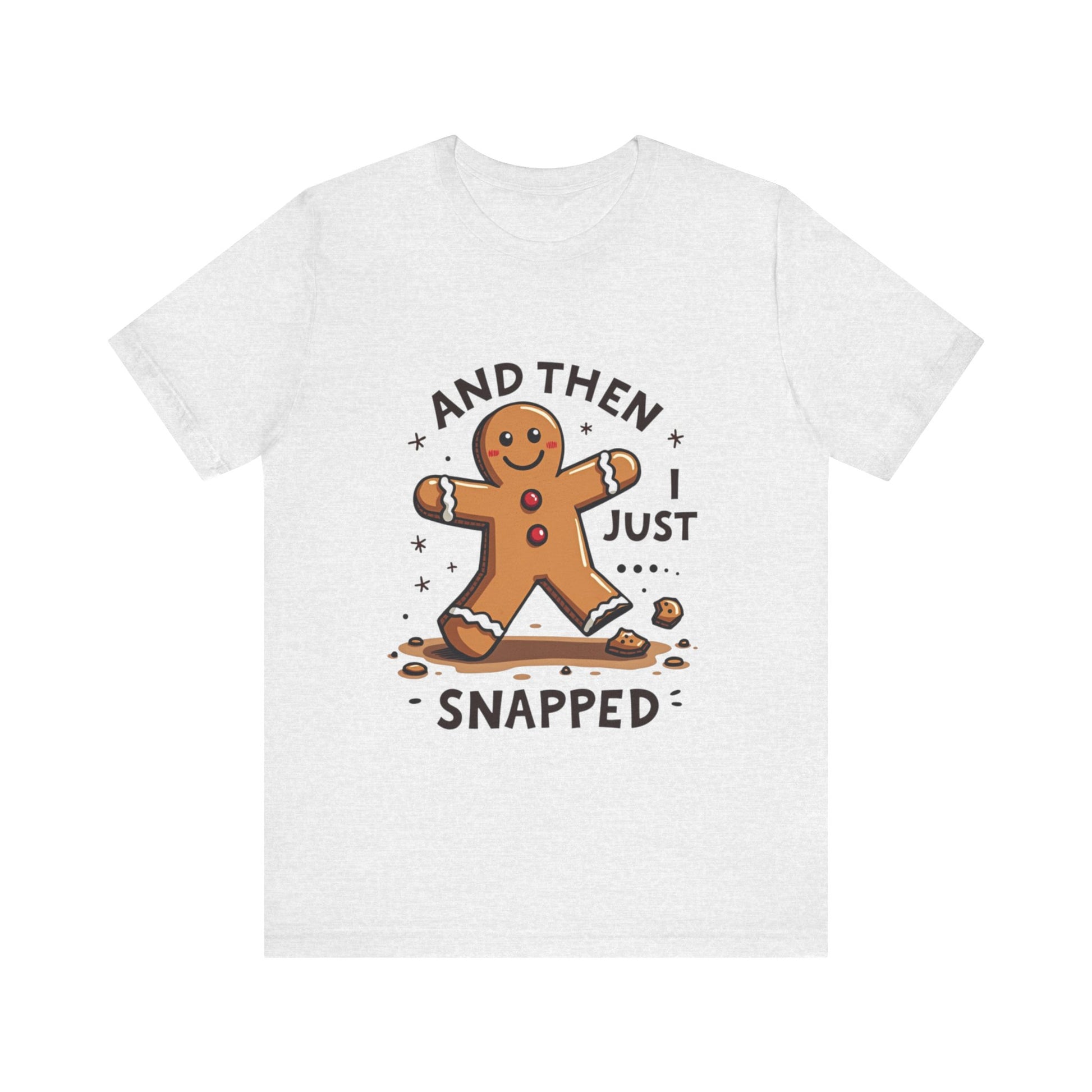 Crack up your holiday wardrobe with this adorably unhinged funny Christmas tee! Featuring a cute, broken gingerbread man with a sassy smirk and the phrase "And Then I Just Snapped", this shirt is your go-to for spreading festive chaos. Perfect for those who love their holiday cheer with a side of sarcasm, this soft, comfy tee is ready to sleigh at every ugly sweater party, cookie-baking brawl, or family dinner where you might just snap too. It’s the gingerbread man’s glow-up from sweet to savage, and it’s calling your name! Expertly baked to serve shade with a smile. Don’t let this crumbly cutie pass you by - grab it now before it snaps out of stock! Wear it, love it, and let the holiday giggles roll. 🎄💥