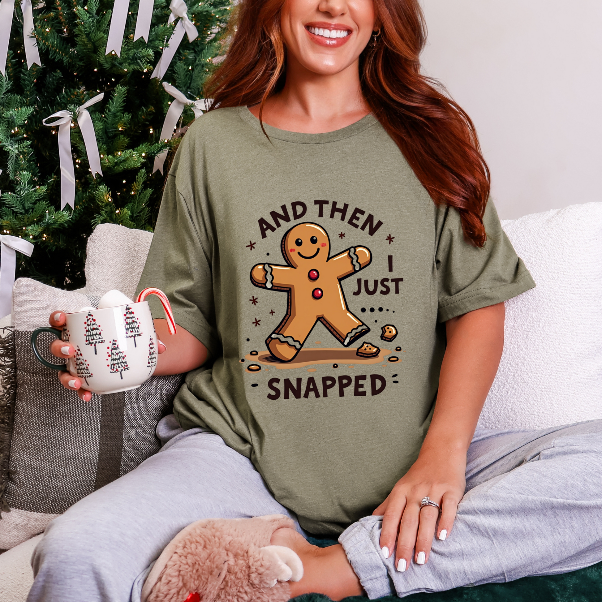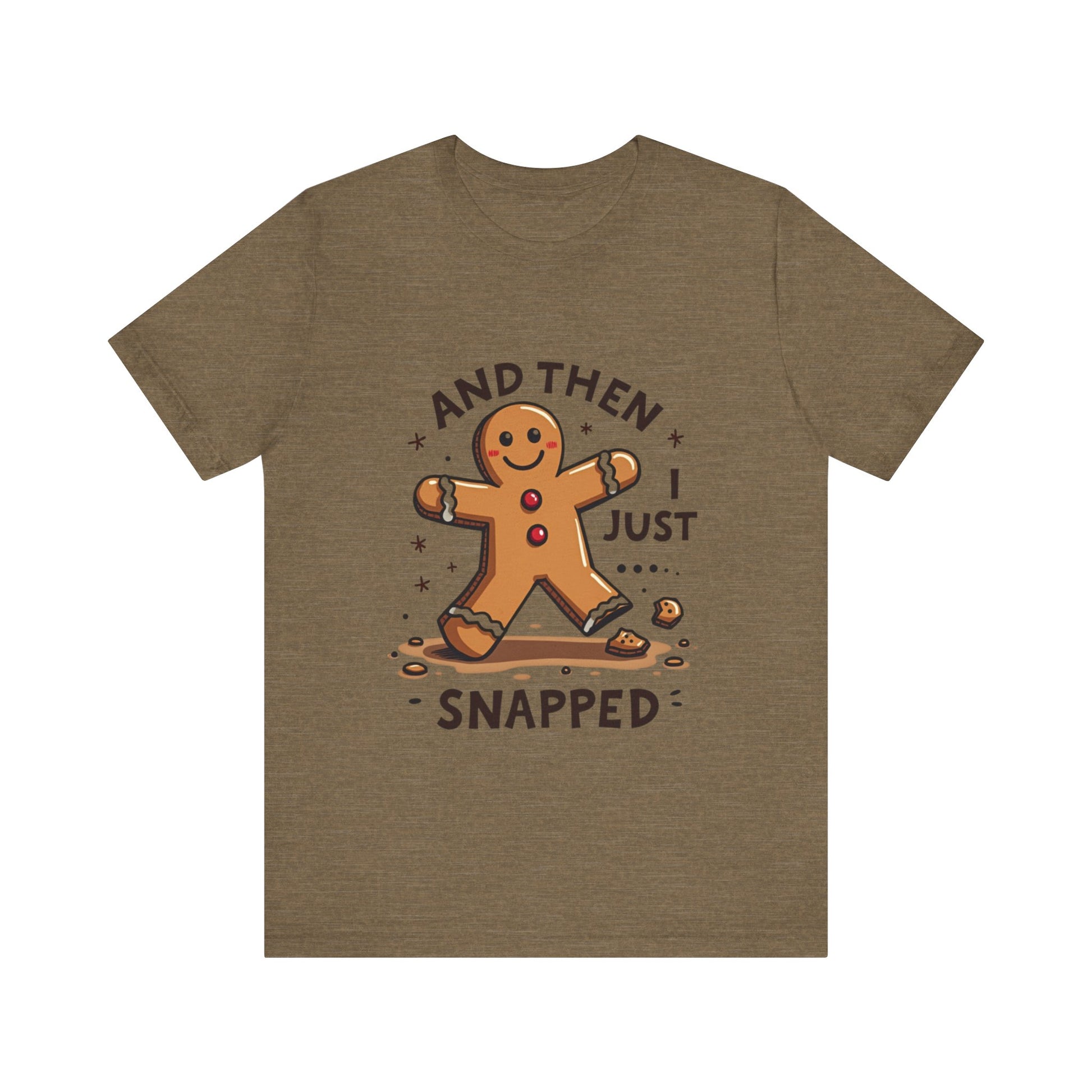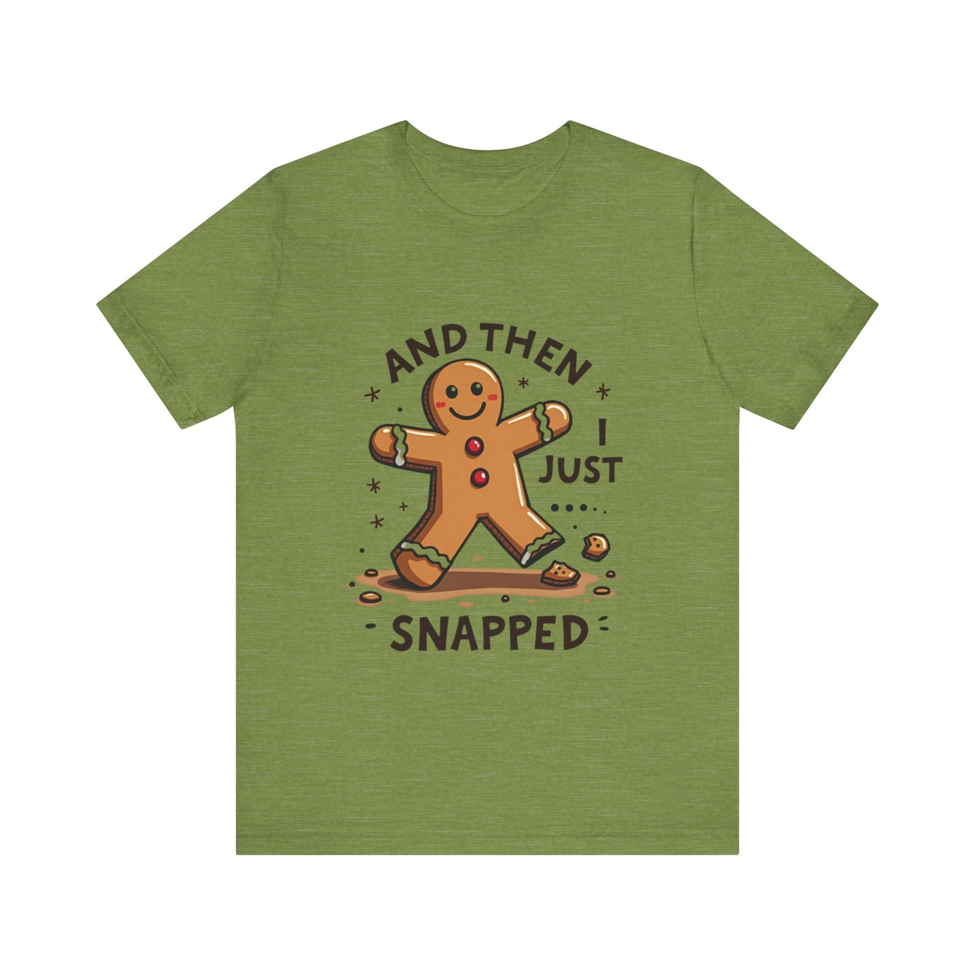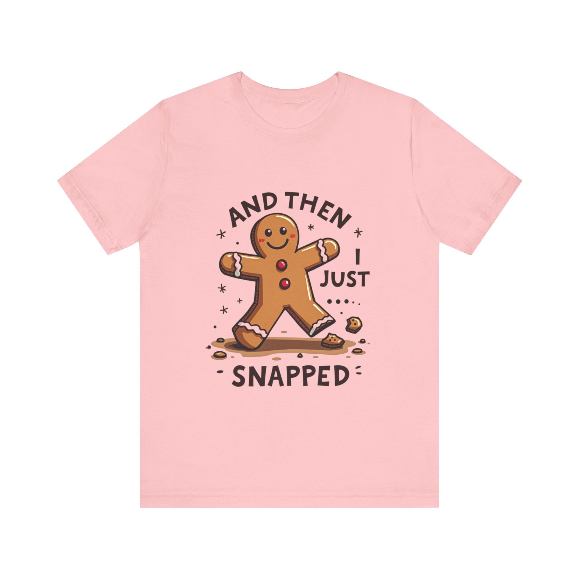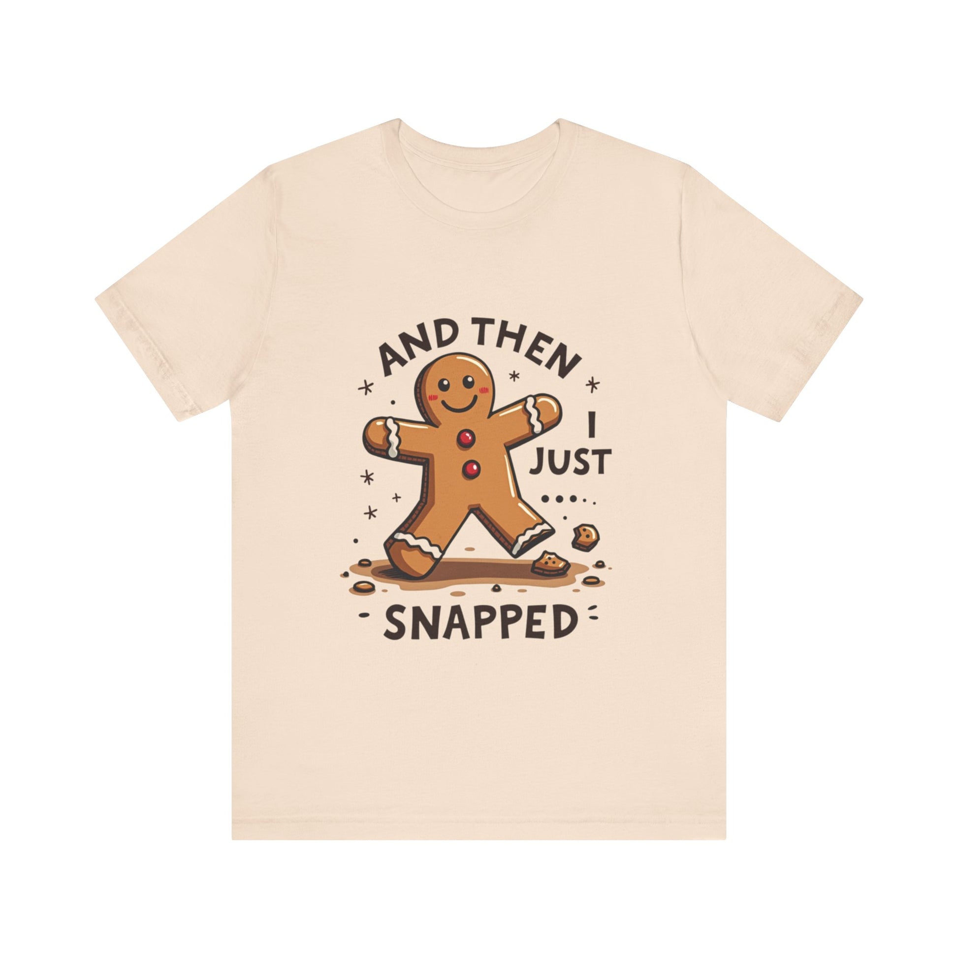 Crack up your holiday wardrobe with this adorably unhinged funny Christmas tee! Featuring a cute, broken gingerbread man with a sassy smirk and the phrase "And Then I Just Snapped", this shirt is your go-to for spreading festive chaos. Perfect for those who love their holiday cheer with a side of sarcasm, this soft, comfy tee is ready to sleigh at every ugly sweater party, cookie-baking brawl, or family dinner where you might just snap too. It’s the gingerbread man’s glow-up from sweet to savage, and it’s calling your name! Expertly baked to serve shade with a smile. Don’t let this crumbly cutie pass you by - grab it now before it snaps out of stock! Wear it, love it, and let the holiday giggles roll. 🎄💥