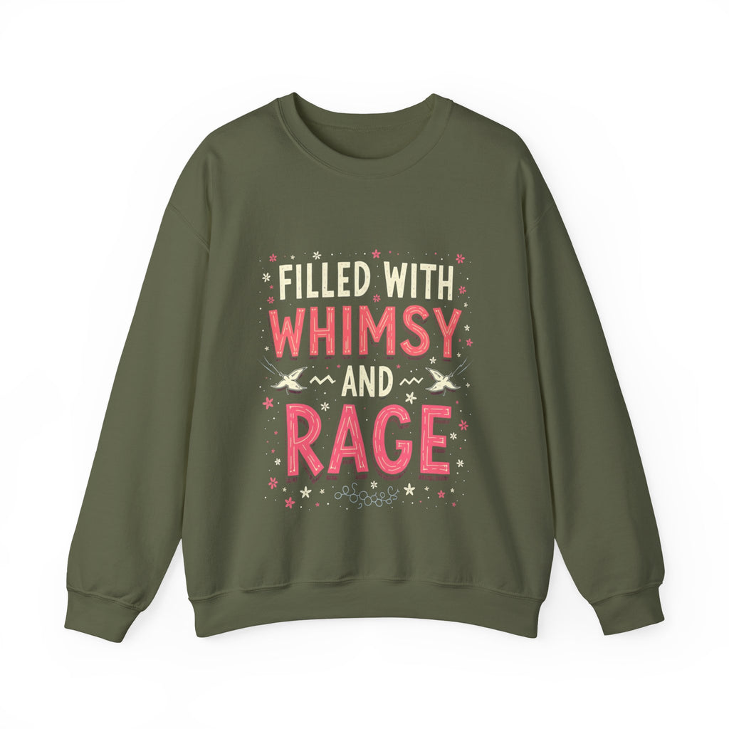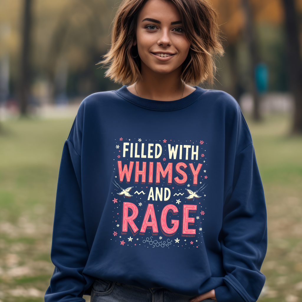 Unleash your inner chaos fairy with this "Filled with Whimsy & Rage" sweatshirt - the perfect blend of sparkle and snarl! Crafted for those days when you're twirling through life with a mischievous grin but also ready to yeet your coffee mug at the next minor inconvenience. This cozy, ultra-soft sweatshirt is your wardrobe's new BFF, ready to hug you through every mood swing and existential crisis. Made from premium, snuggle-worthy cotton blend that’s softer than a kitten’s whisper and tougher than your last breakup. Bold, cheeky lettering screams your vibe without you saying a word. Perfect For: Slaying Zoom meetings, channeling your inner gremlin at the coffee shop, or just vibing on the couch with a pint of ice cream and a grudge. Relaxed unisex fit that flatters every body type - because whimsy and rage don’t discriminate. Available in sizes S-3XL, so everyone can join the chaotic fun. Wear it, love it, live it. This sweatshirt isn’t just clothing- it’s a mood. Grab yours now and let the world know you’re a delightful disaster wrapped in cozy perfection. ✨😈